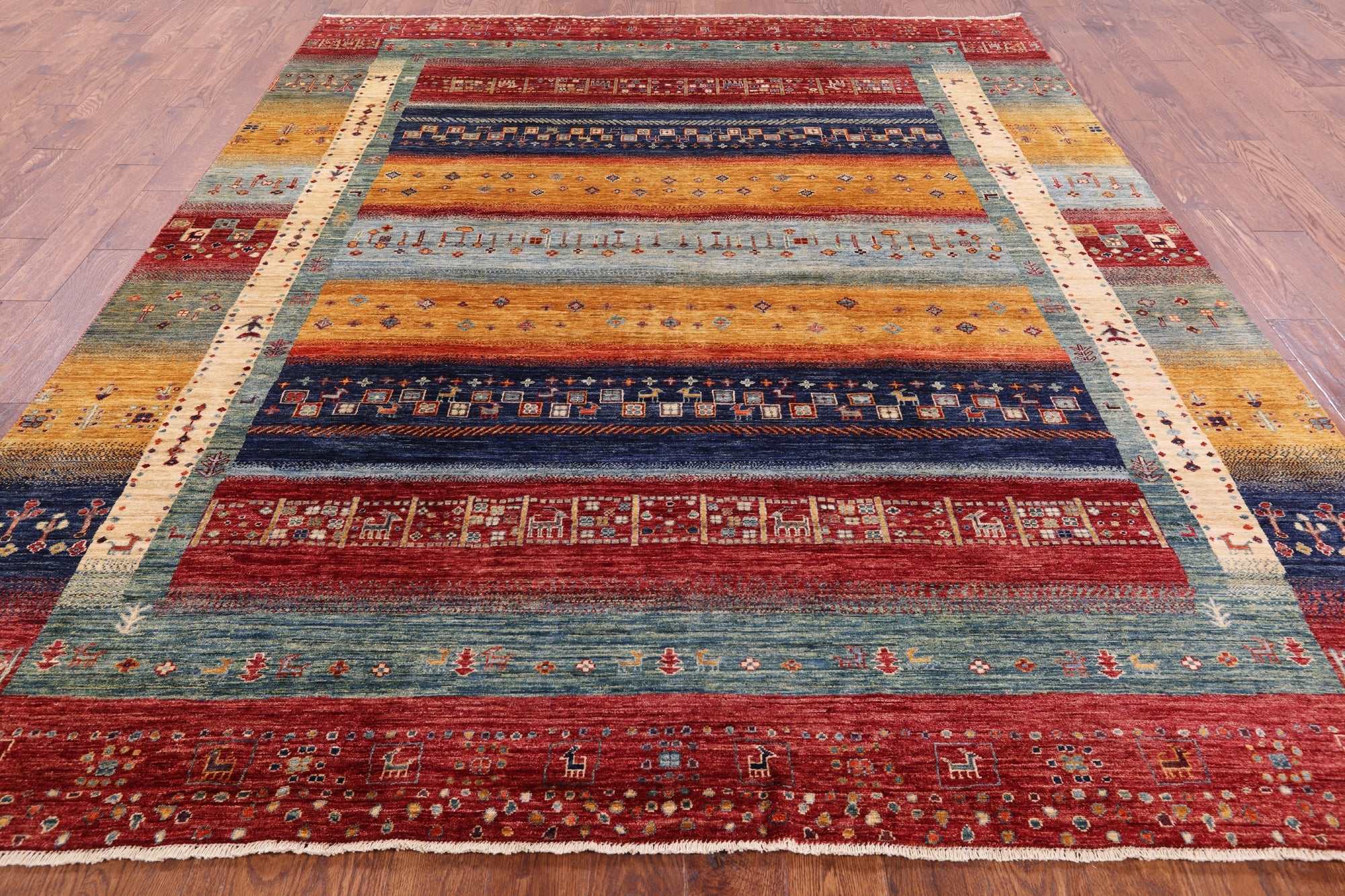 Tribal Persian Gabbeh Handmade Rug 8' 3" X 9' 2" - Q5317 is backordered and will ship as soon as it is back in stock.