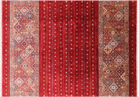 Sale price $1,399.00 Regular price $3,638.00Unit price /UnavailableRed 8' 3" X 9' 8" Handmade Khorjin Super Kazak Area Rug - Q2243