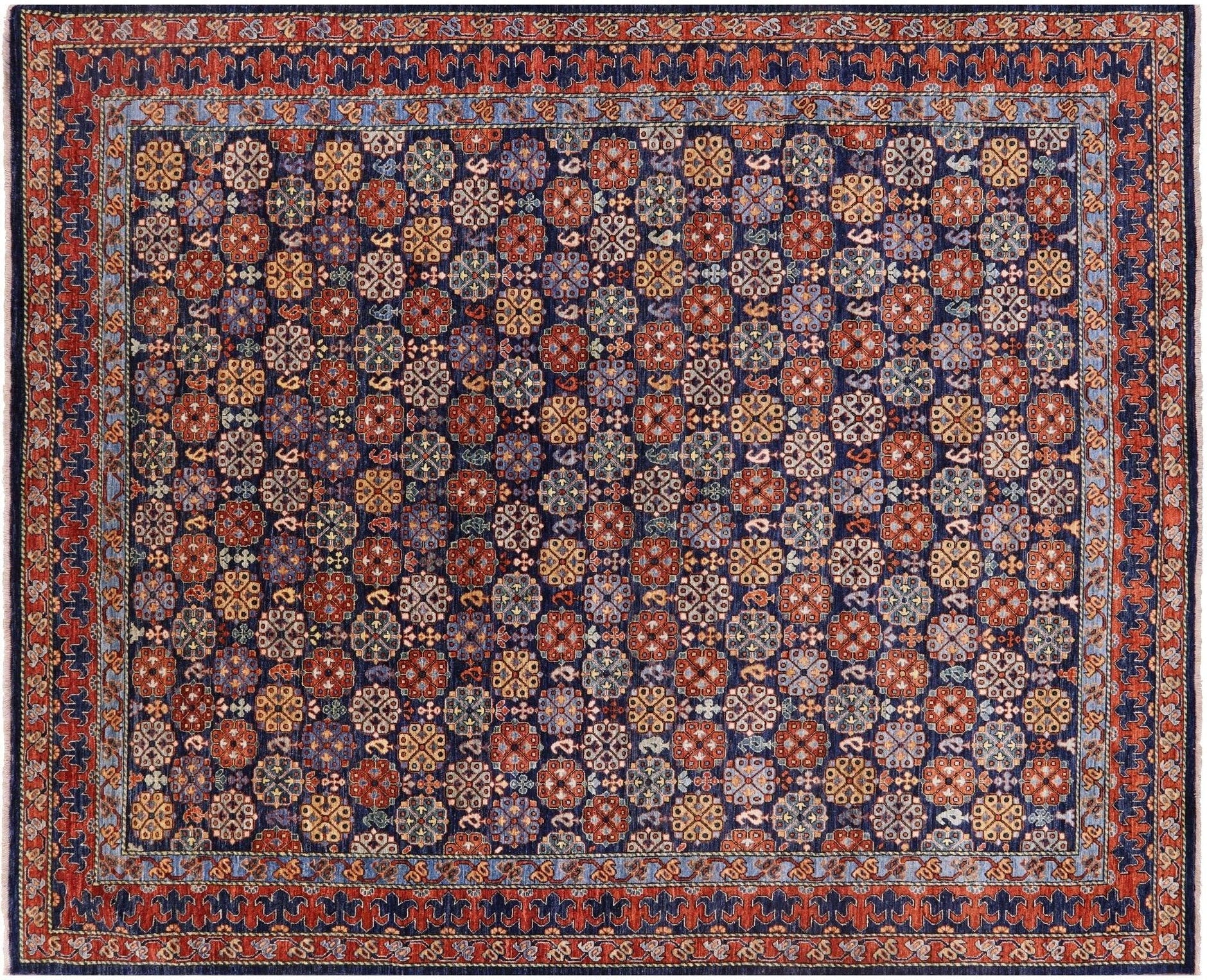 Blue Fine Turkmen Hand Knotted Rug 7' 11" X 9' 9" - Q18666