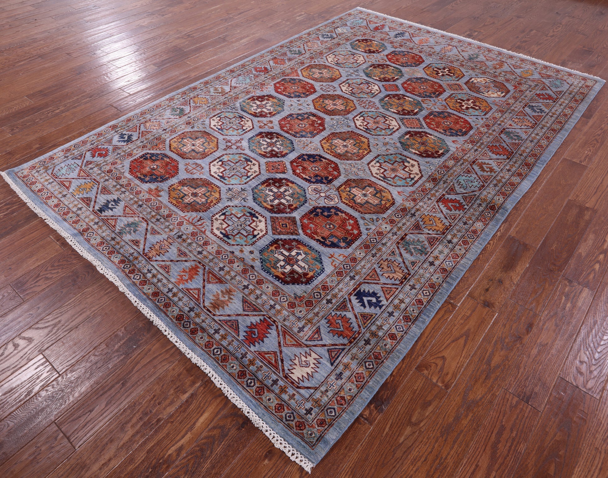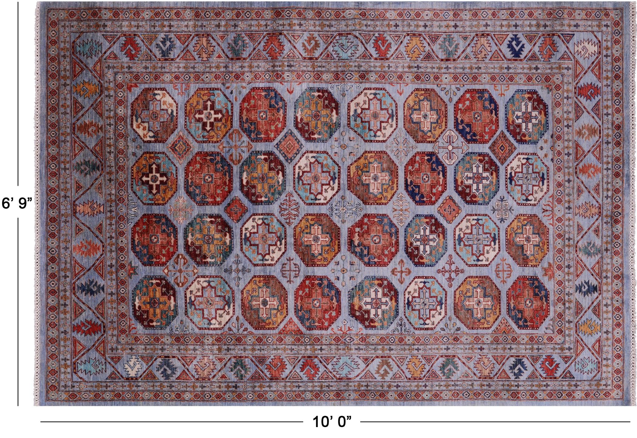 Blue Hand-Knotted Super Turkmen Ersari Rug 6' 9" X 10' 0" - Q18470