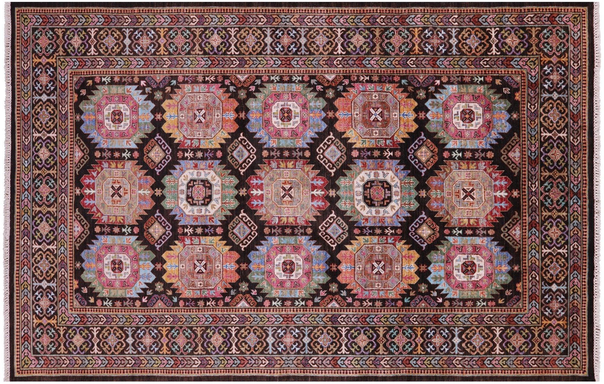 Brown 6' 7" X 10' 1" Fine Turkmen Hand Knotted Wool Rug - Q10238