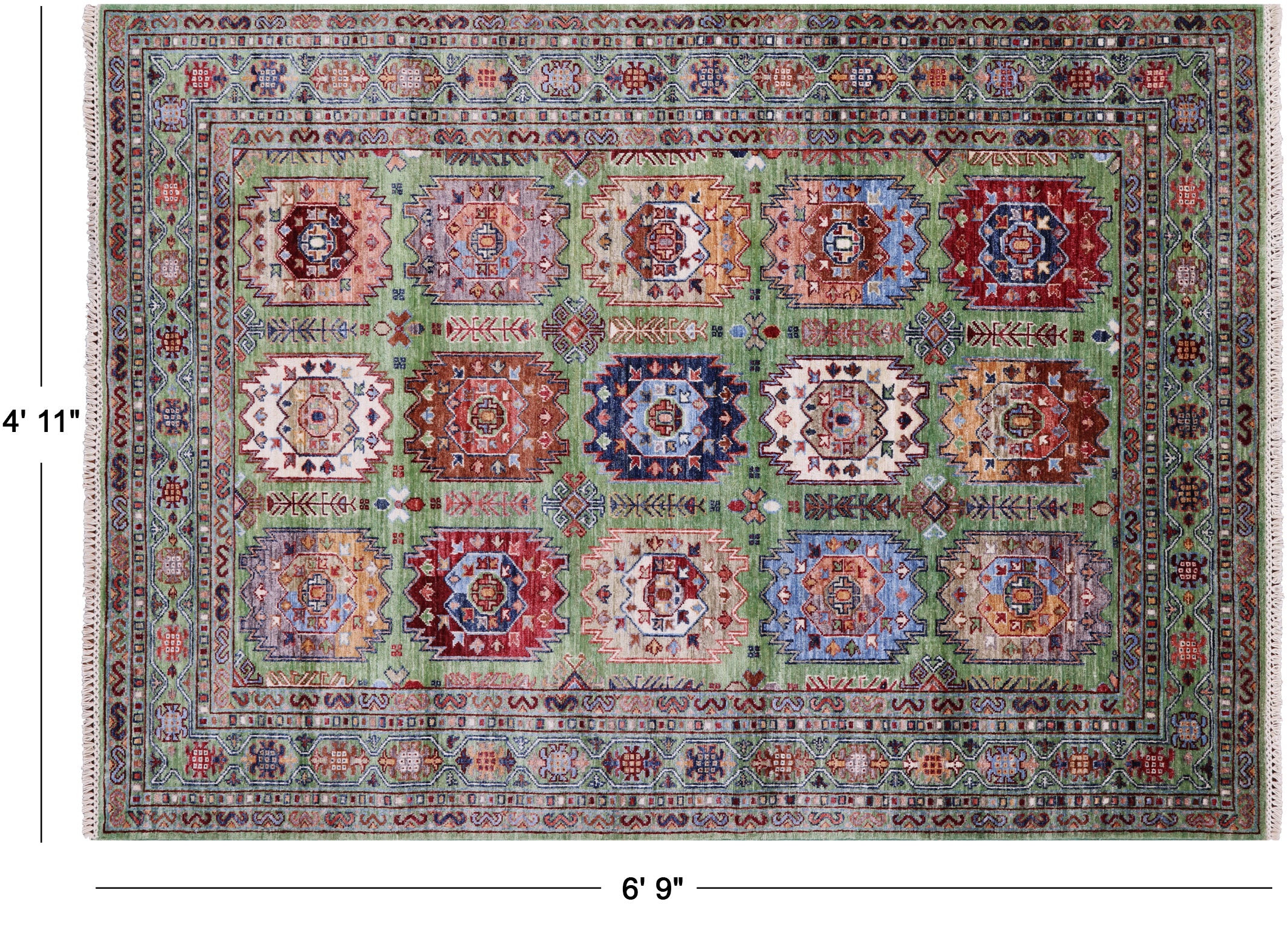 Green Fine Turkmen Ersari Handmade Wool Rug 4' 11" X 6' 9" - Q12762