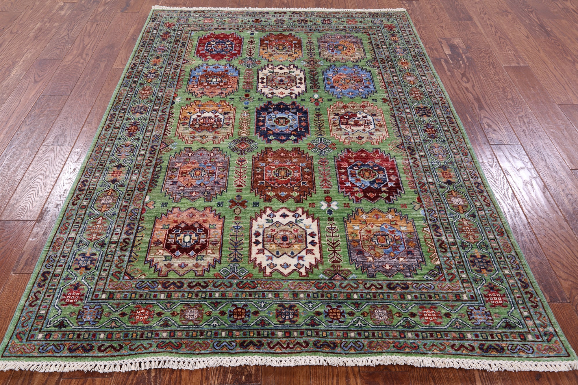 Green Fine Turkmen Ersari Handmade Wool Rug 4' 11" X 6' 9" - Q12762 is backordered and will ship as soon as it is back in stock.