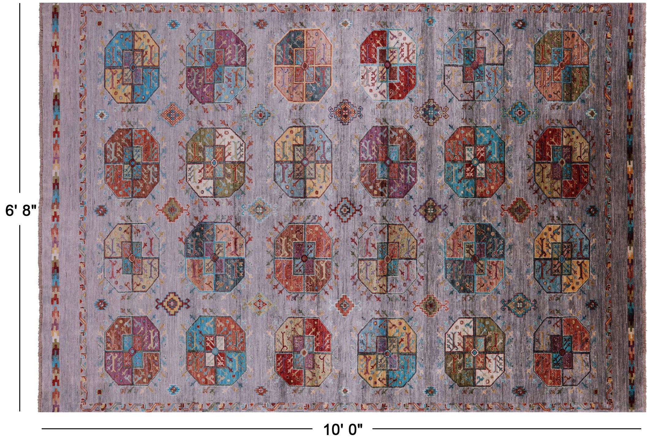 Grey 6' 8" X 10' 0" Fine Turkmen Ersari Hand Knotted Wool Rug - Q17255