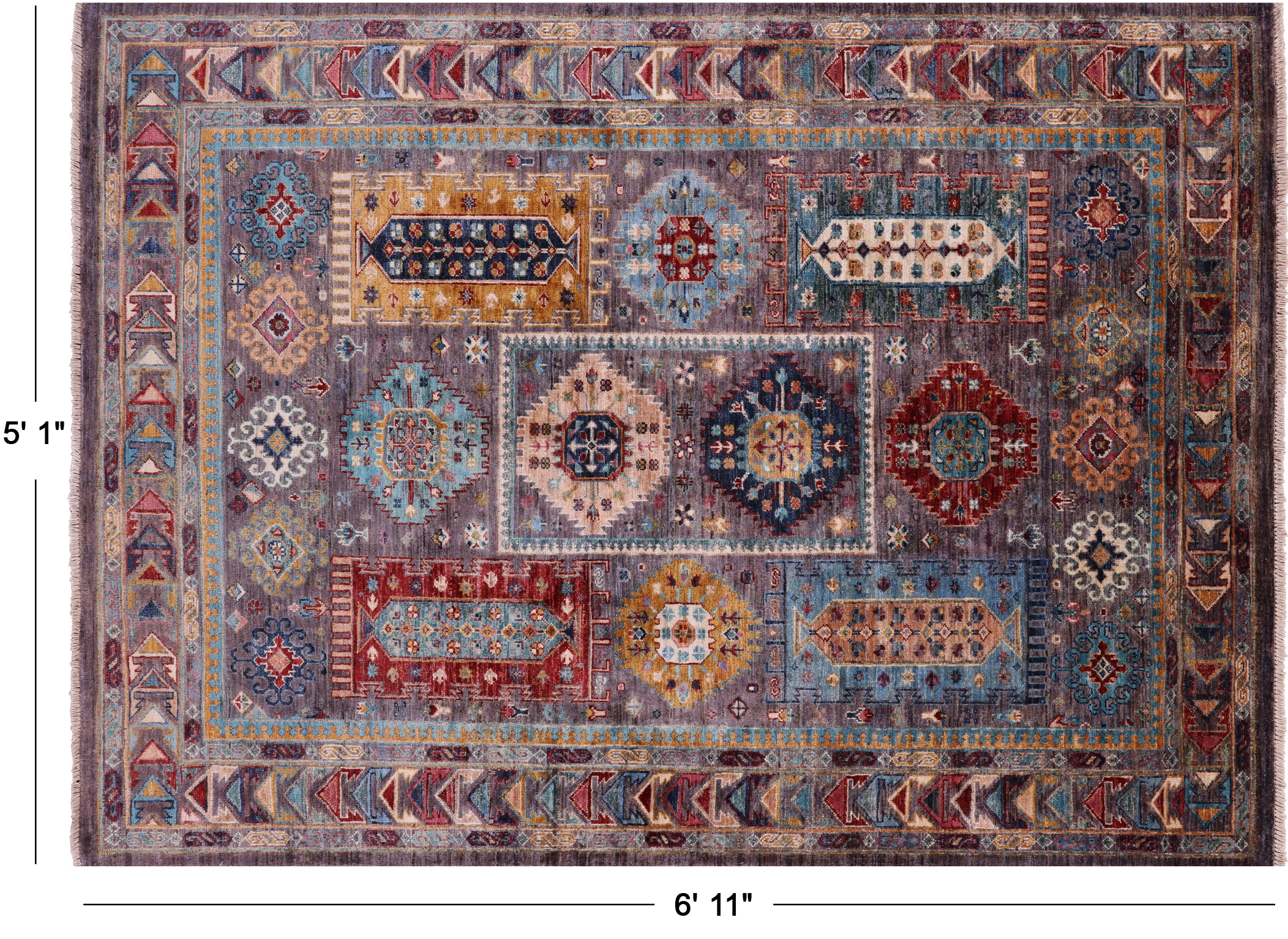 Grey Fine Turkmen Ersari Handmade Wool Rug 5' 1" X 6' 11" - Q13954 is backordered and will ship as soon as it is back in stock.