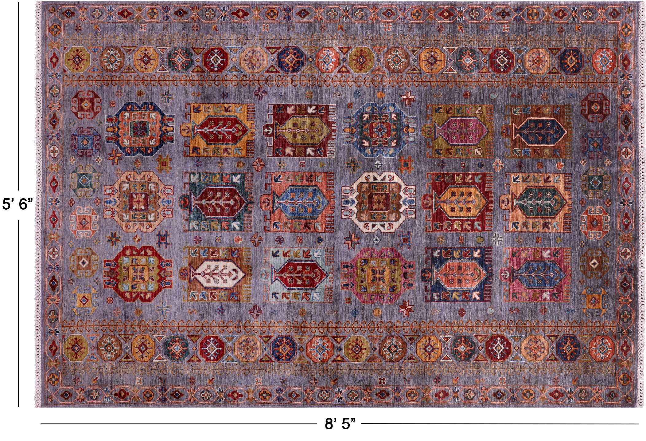 Grey Fine Turkmen Ersari Handmade Wool Rug 5' 6" X 8' 5" - Q18552