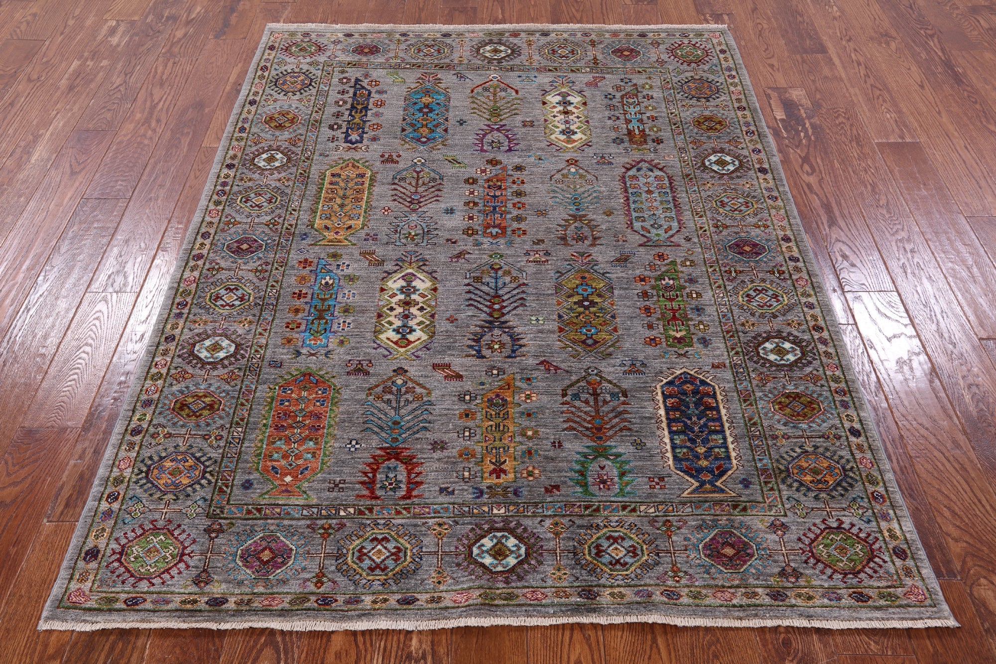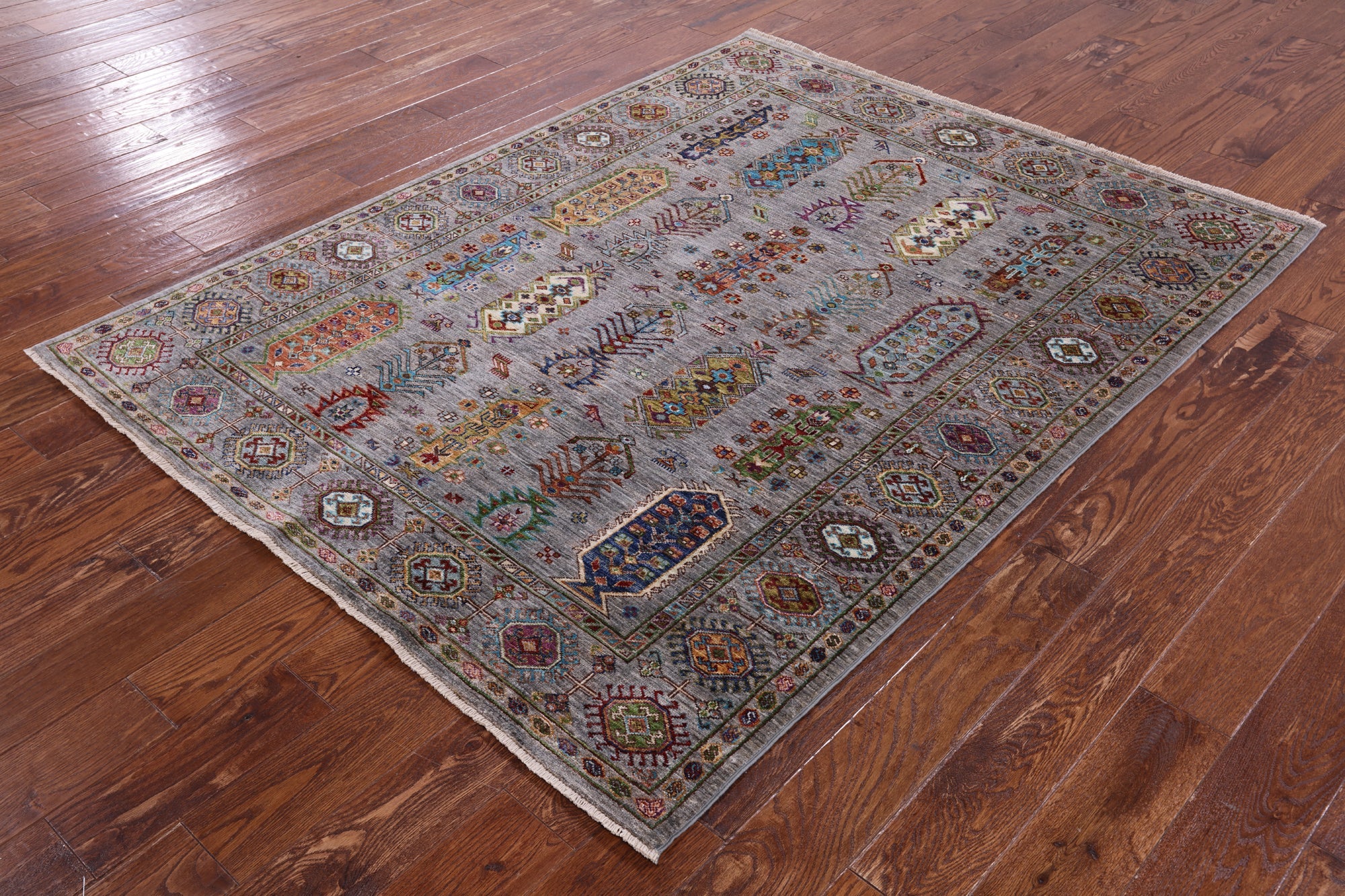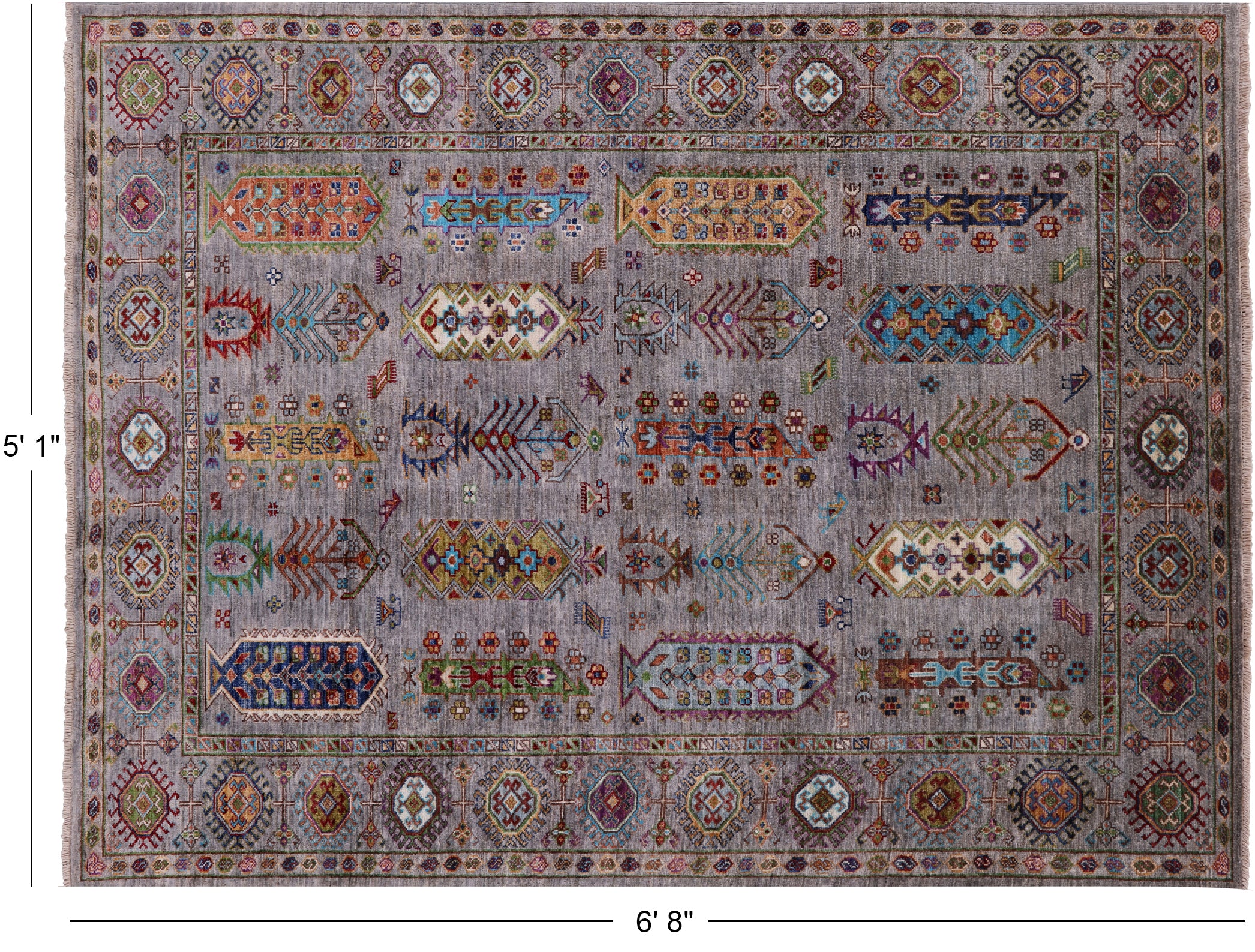 Grey 5' 1" X 6' 8" Fine Turkmen Ersari Handmade Wool Rug - Q9908 is backordered and will ship as soon as it is back in stock.