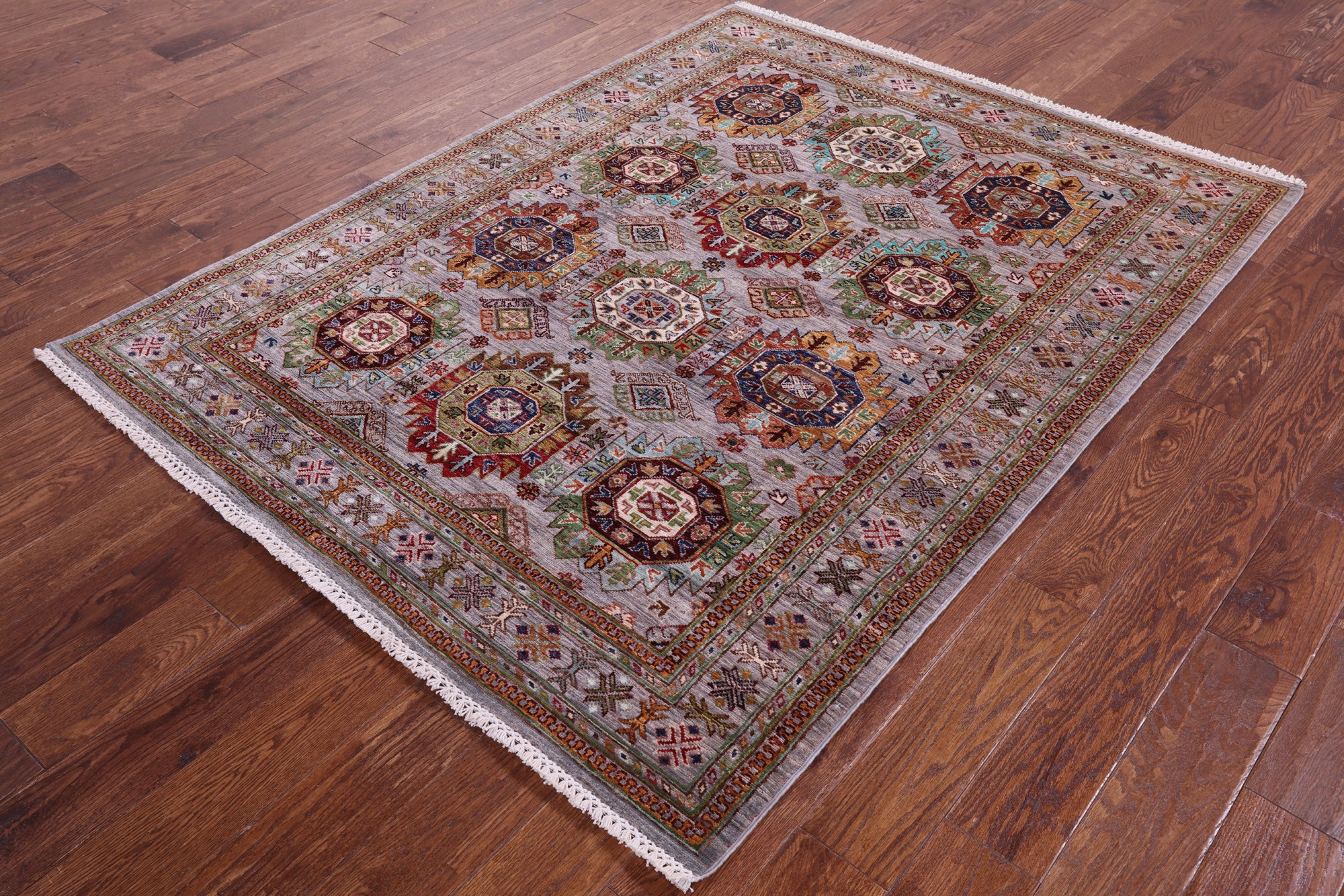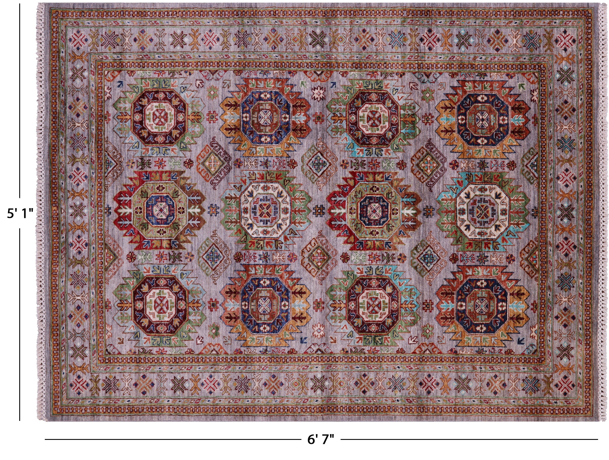 Grey 5' 1" X 6' 7" Fine Turkmen Hand Knotted Wool Rug - Q14231
