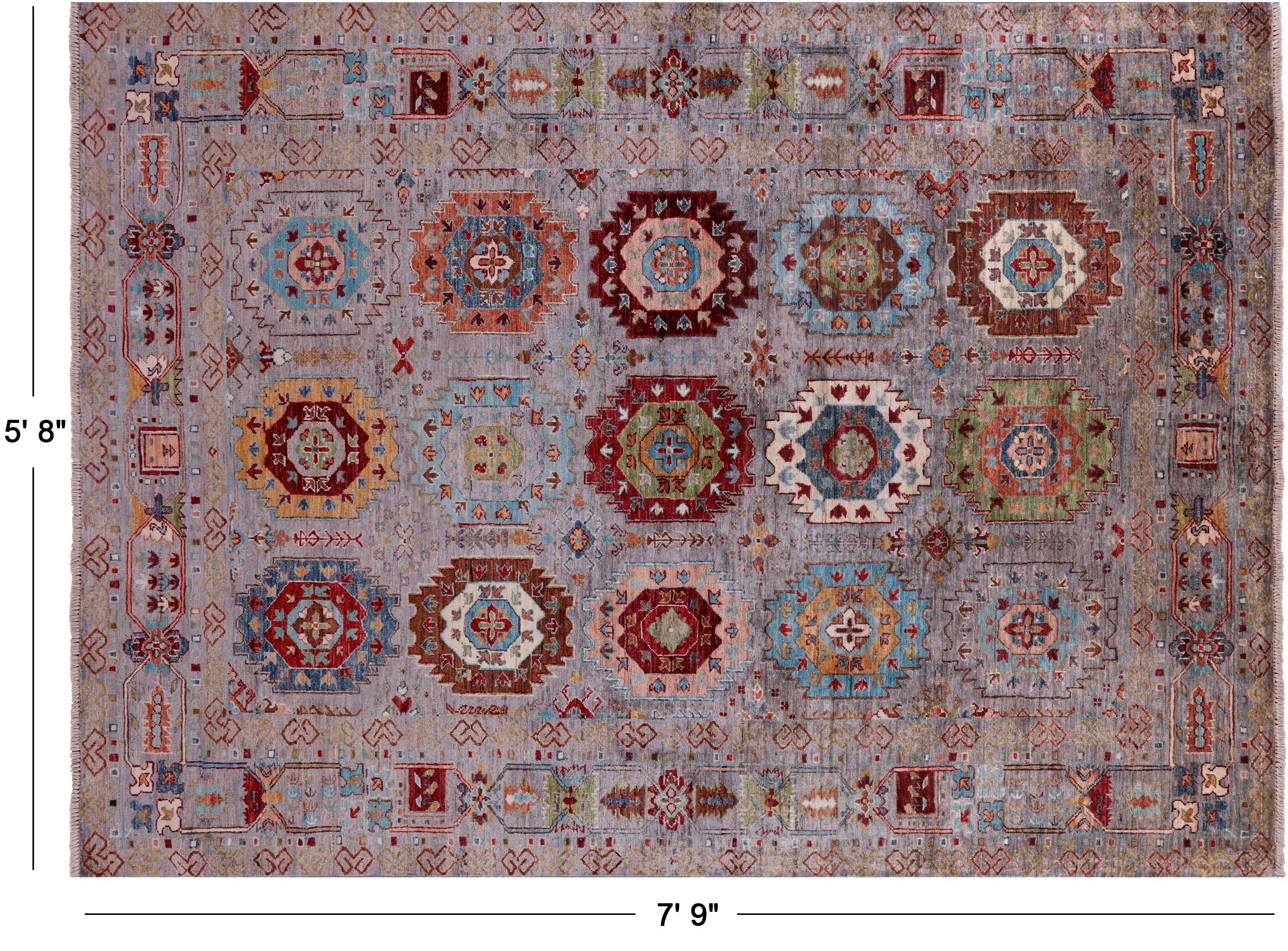 Grey 5' 8" X 7' 9" Fine Turkmen Handmade Wool Rug - Q14192
