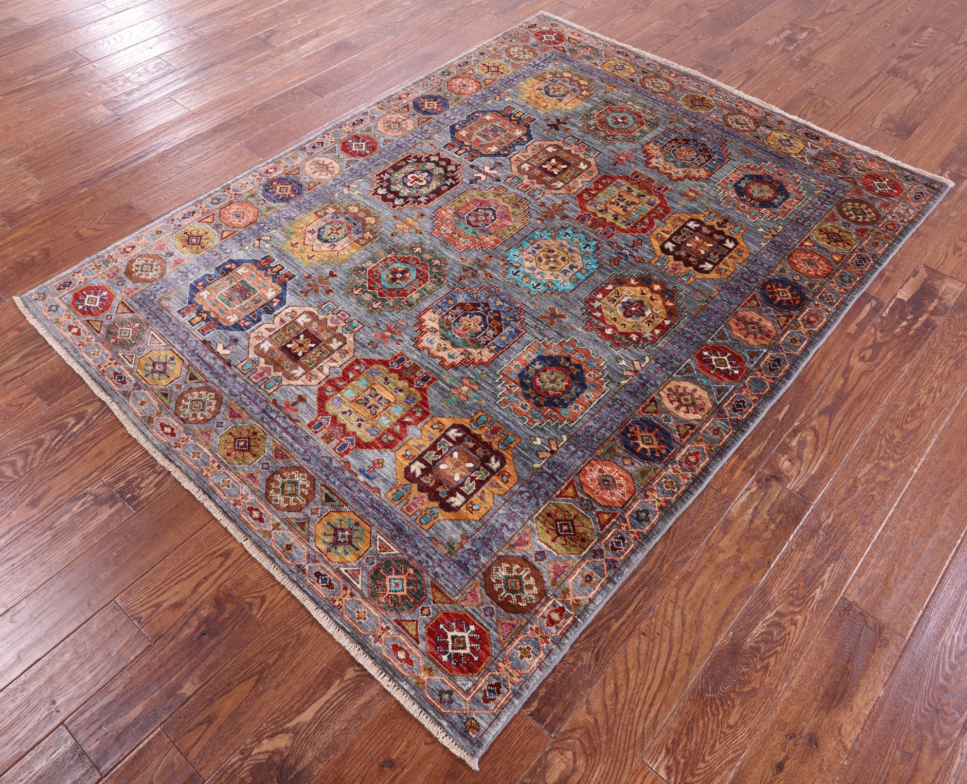 Grey Hand-Knotted Fine Turkmen Ersari Wool Rug 5' 2" X 6' 10" - Q17263 is backordered and will ship as soon as it is back in stock.