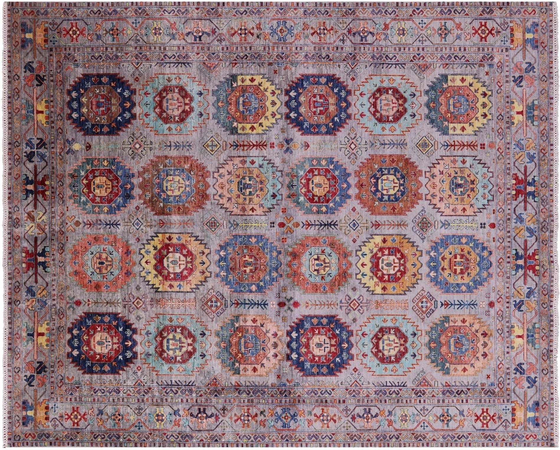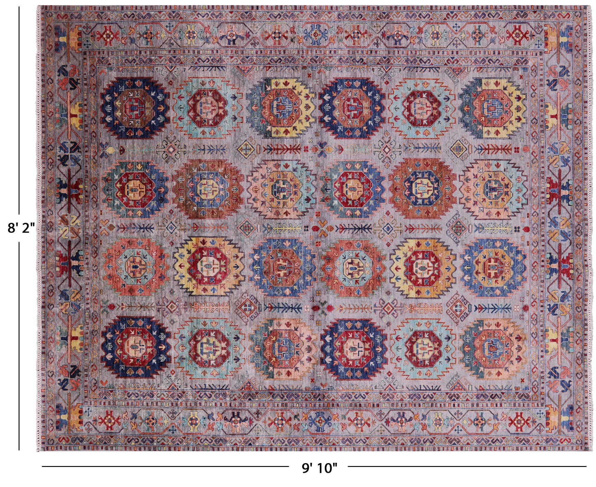 Grey 8' 2" X 9' 10" Hand Knotted Fine Turkmen Wool Rug - Q18721