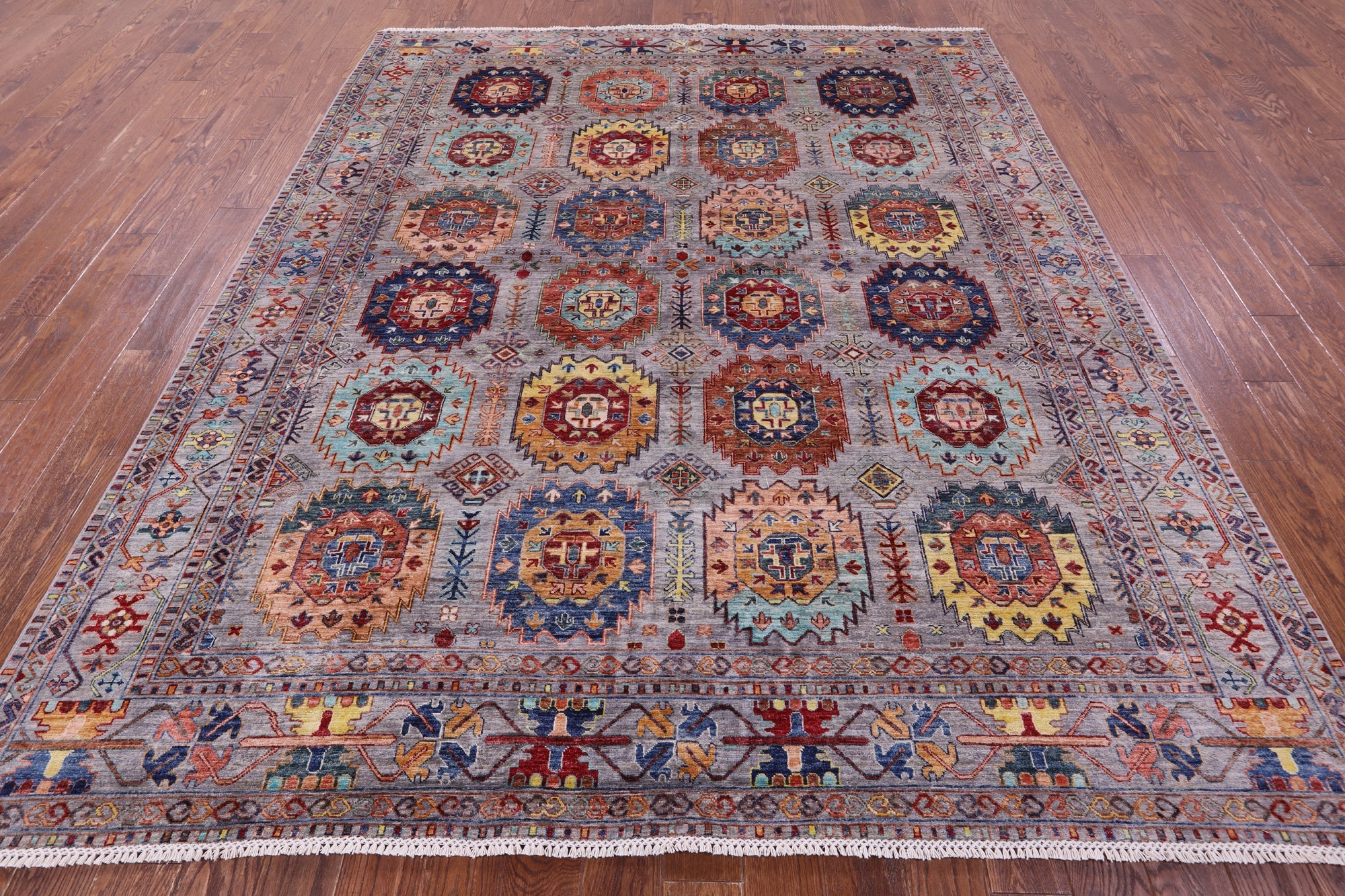 Grey 8' 2" X 9' 10" Hand Knotted Fine Turkmen Wool Rug - Q18721 is backordered and will ship as soon as it is back in stock.
