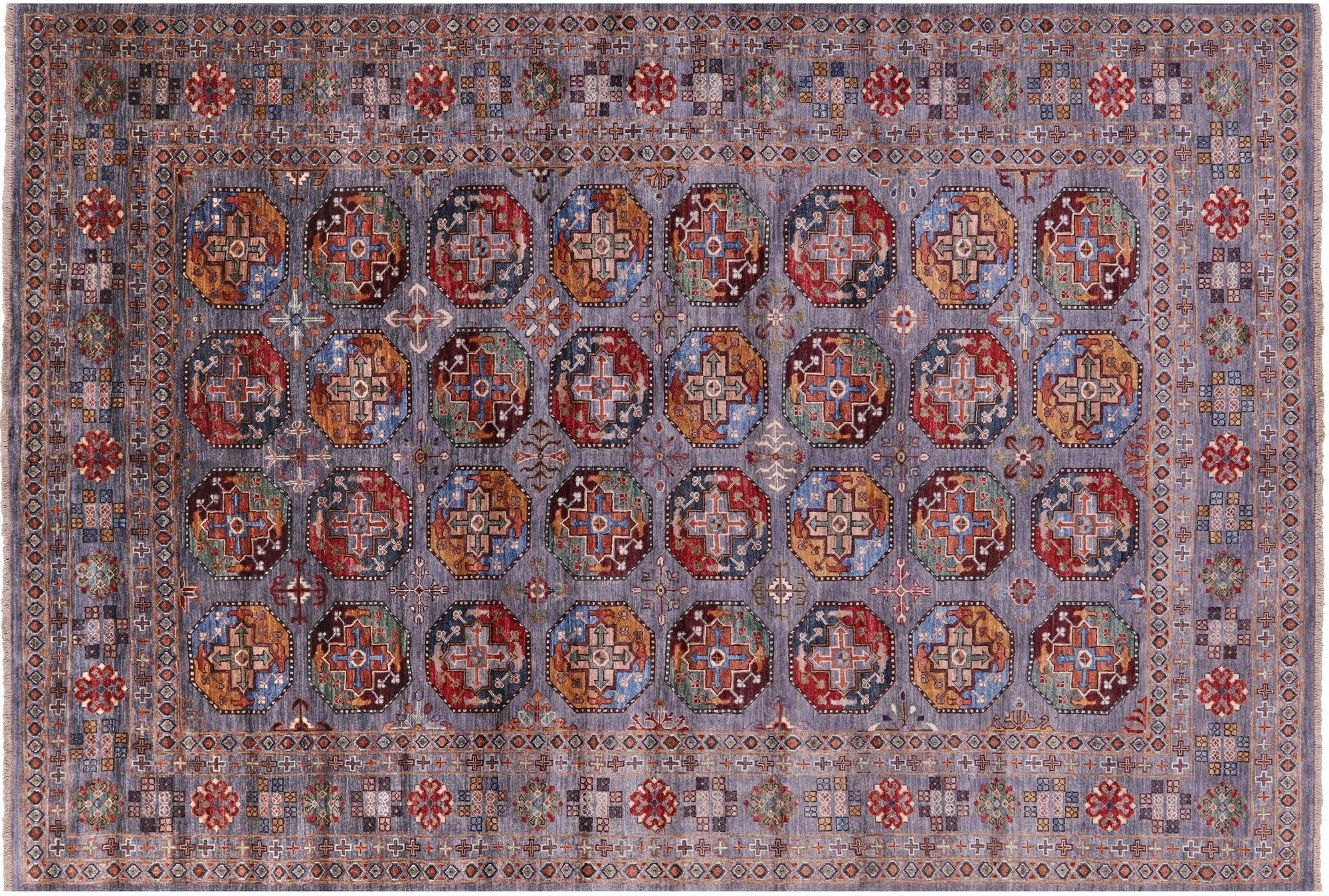 Grey Hand Knotted Super Turkmen Ersari Wool Rug 6' 10" X 9' 11" - Q16939