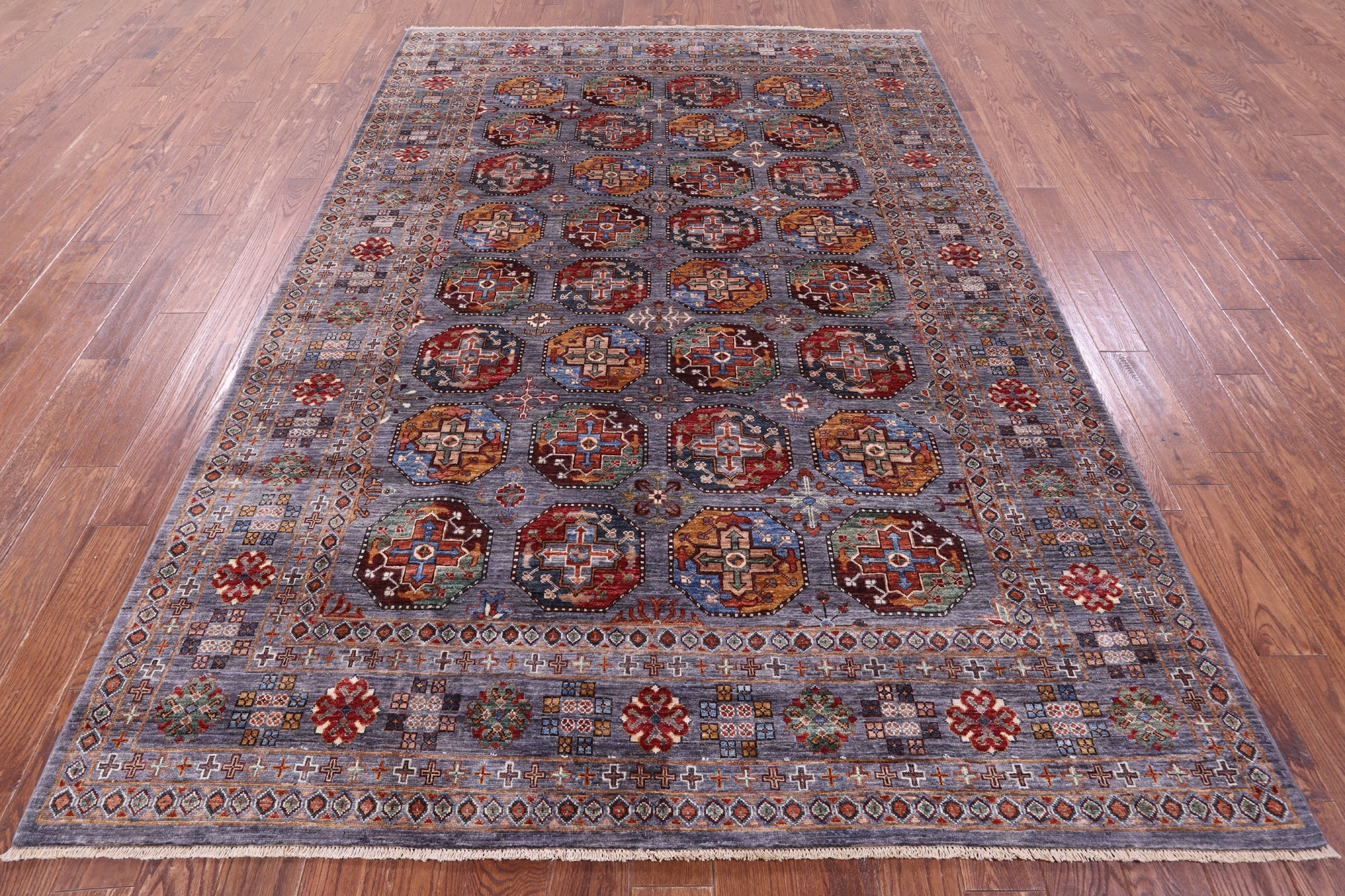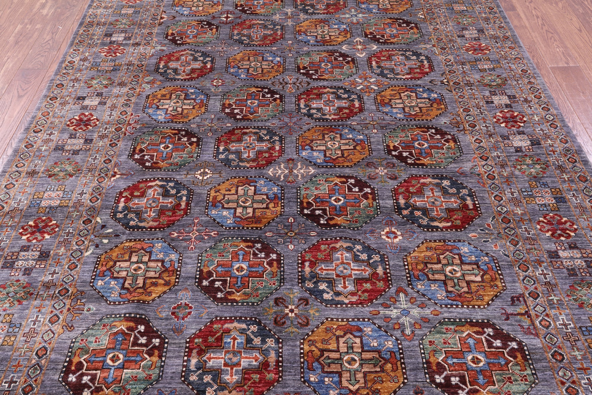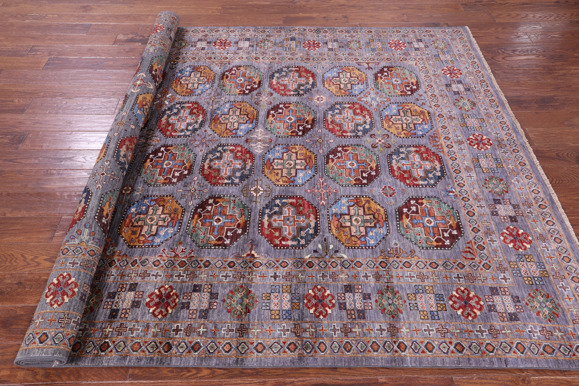 Grey Hand Knotted Super Turkmen Ersari Wool Rug 6' 10" X 9' 11" - Q16939 is backordered and will ship as soon as it is back in stock.
