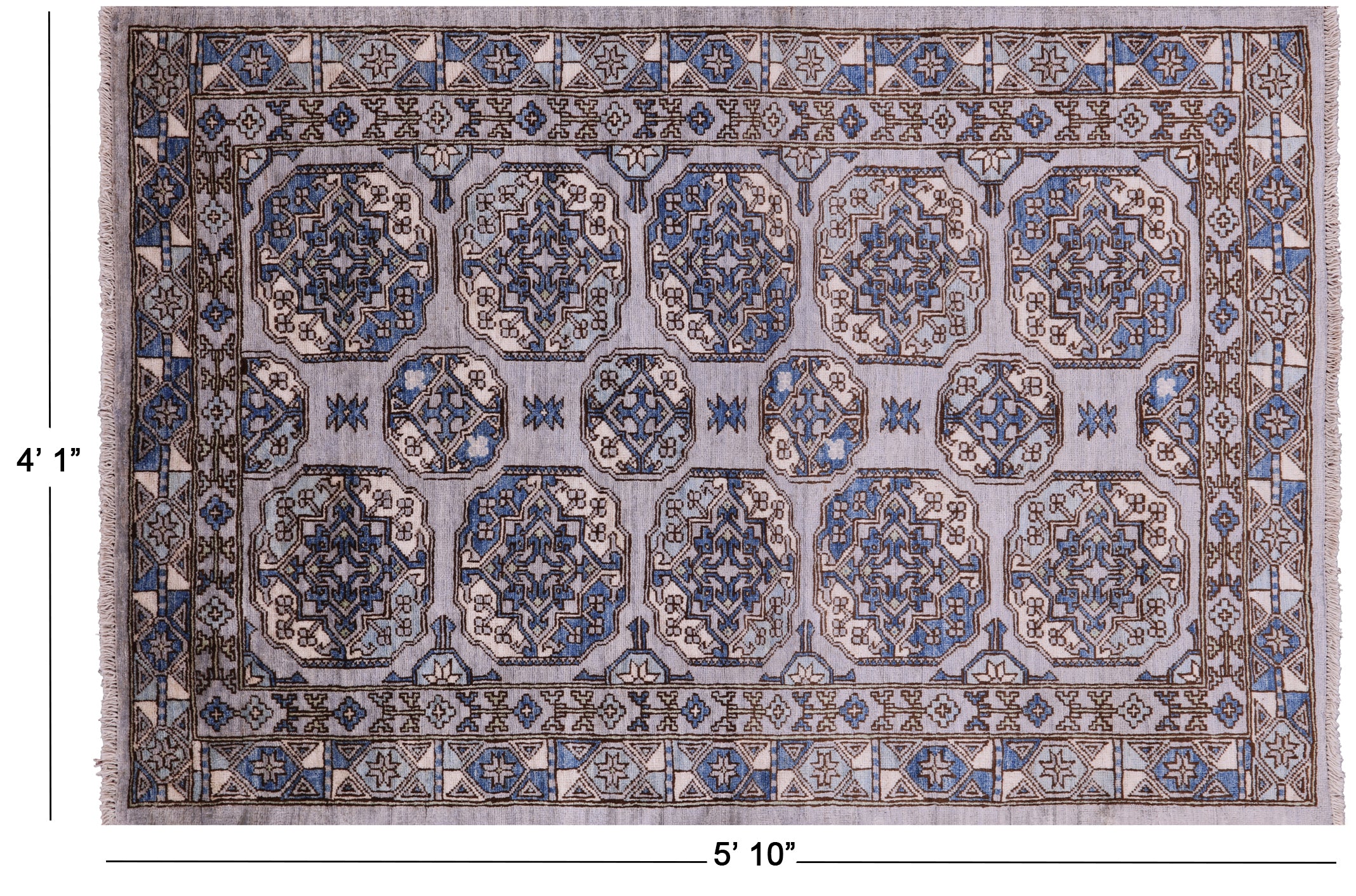 Grey Hand-Knotted Super Turkmen Ersari Wool Rug 4' 1" X 5' 10" - Q22072 is backordered and will ship as soon as it is back in stock.