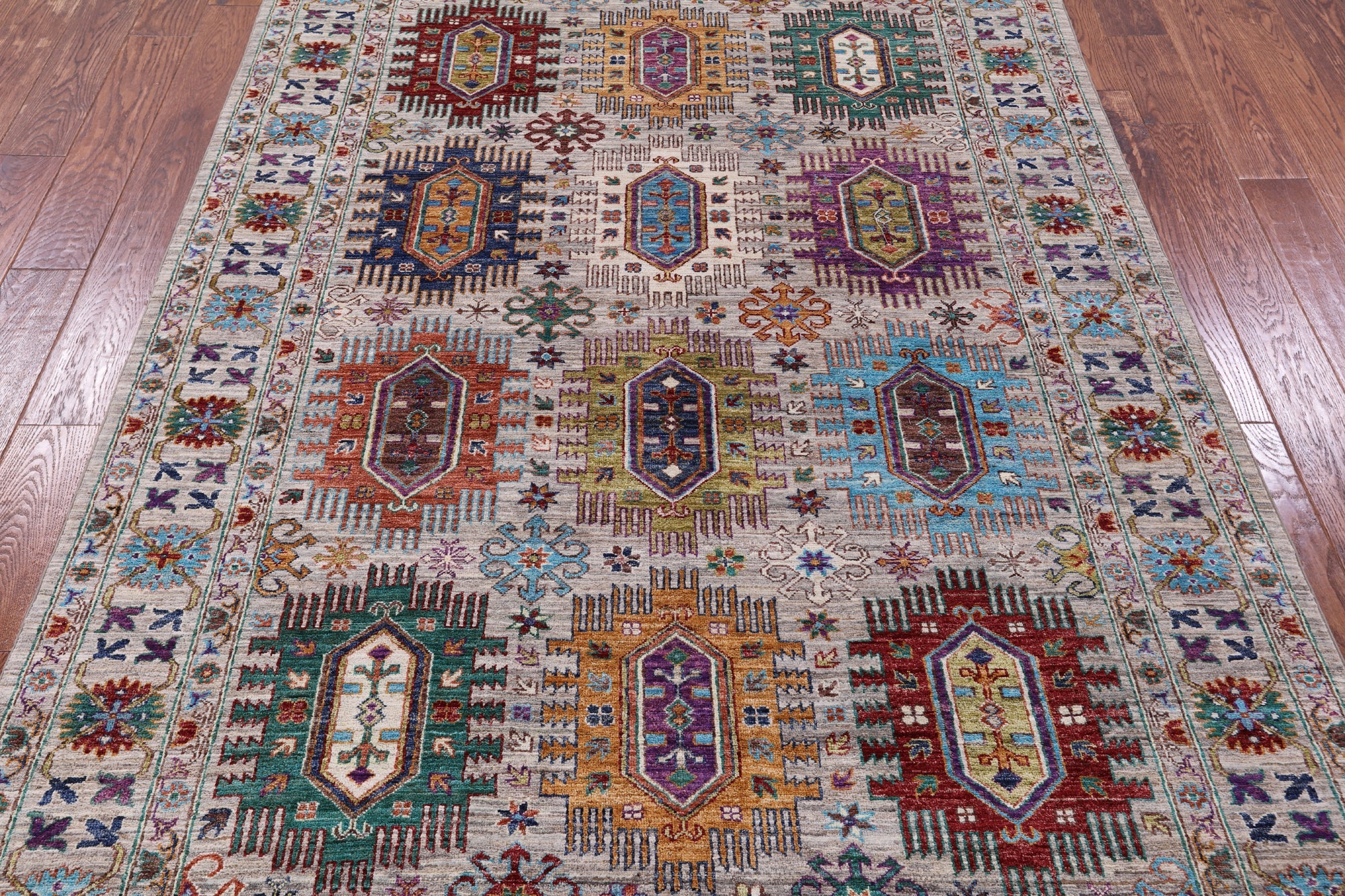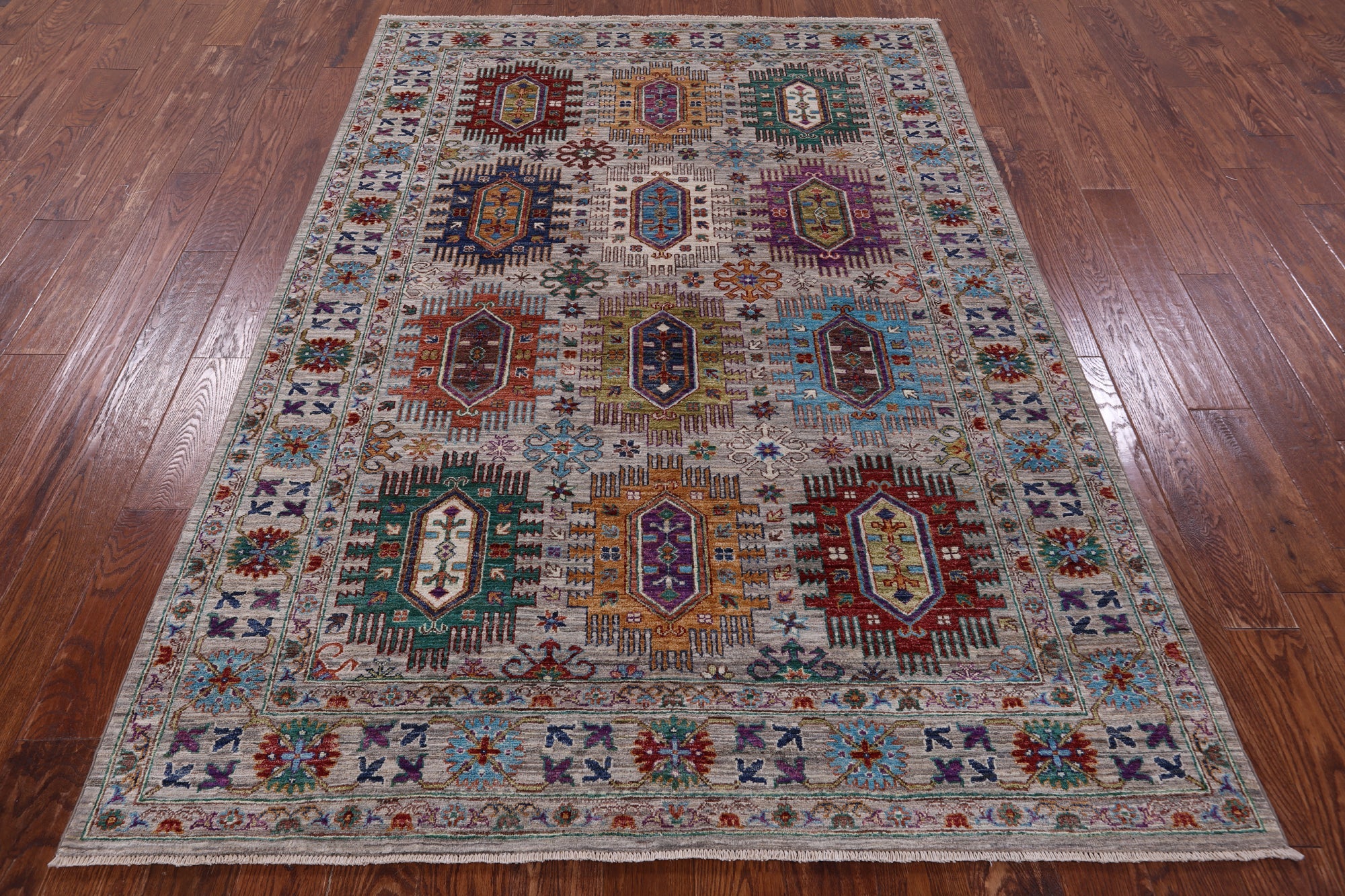 Grey 5' 8" X 8' 0" Handmade Fine Turkmen Ersari Rug - Q9651