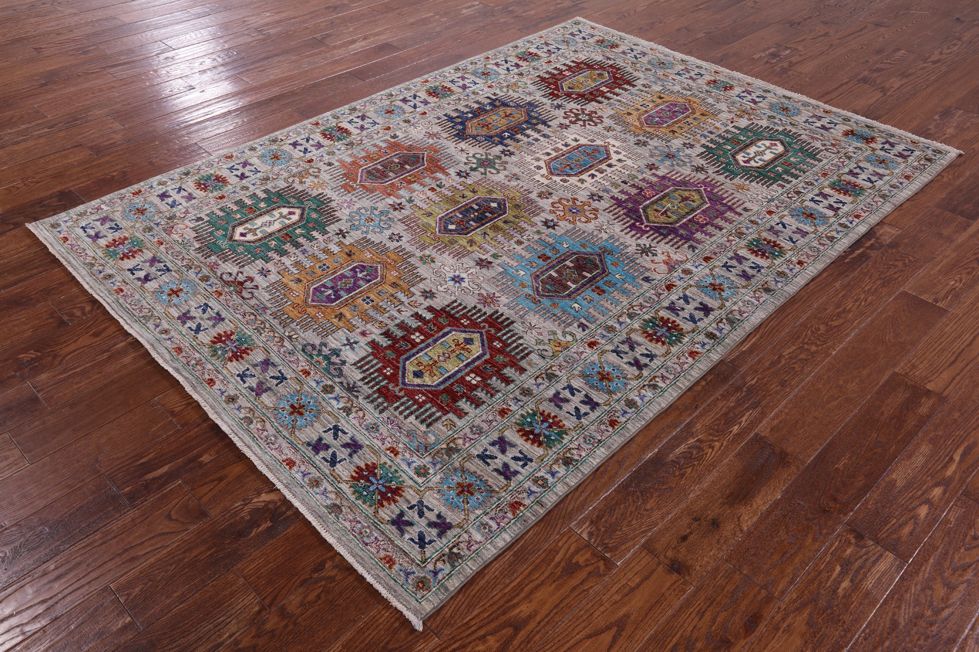 Grey 5' 8" X 8' 0" Handmade Fine Turkmen Ersari Rug - Q9651 is backordered and will ship as soon as it is back in stock.