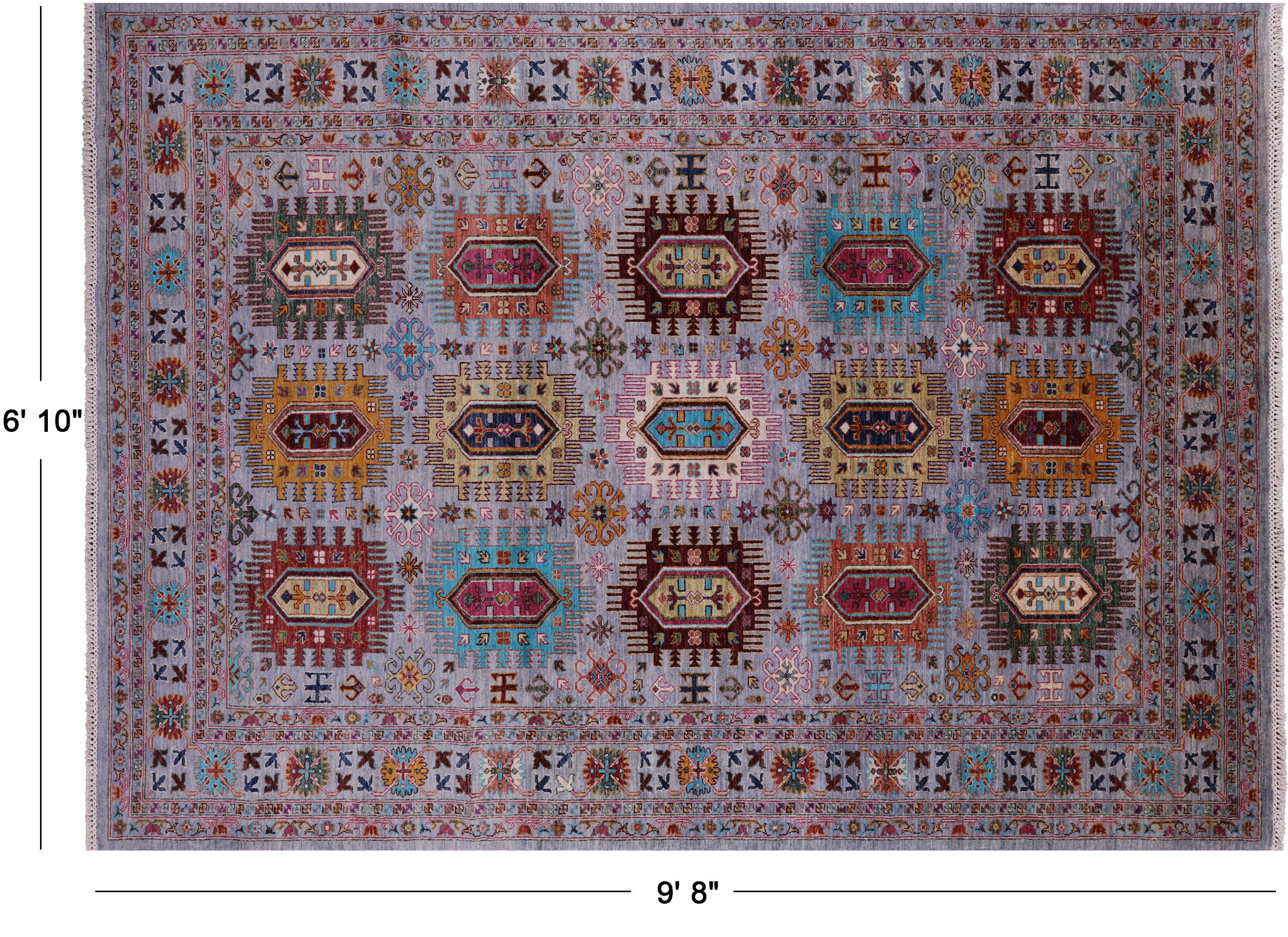 Grey Handmade Fine Turkmen Ersari Wool Rug 6' 10" X 9' 8" - Q11308