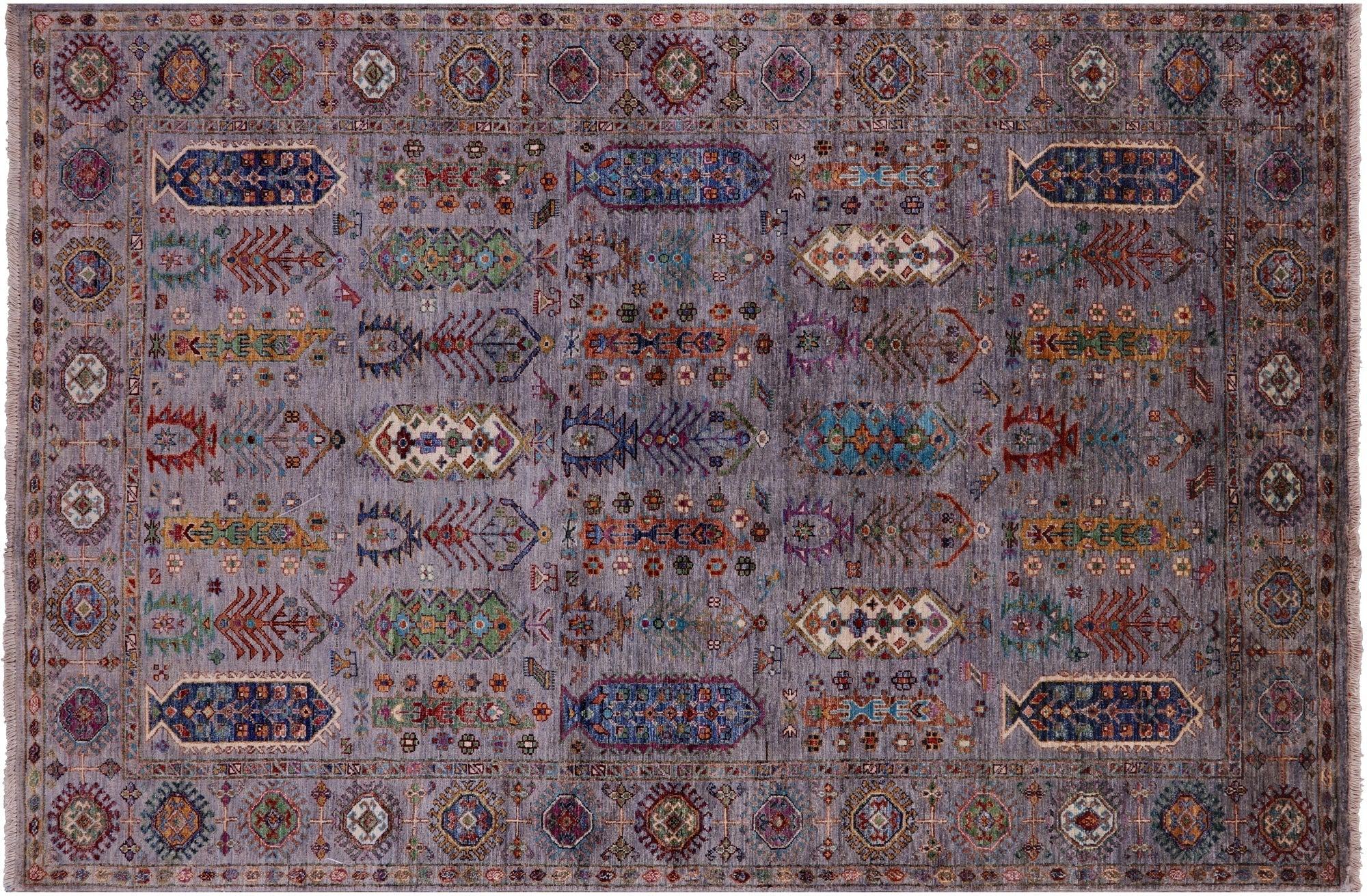 Grey 5' 7" X 8' 9" Handmade Fine Turkmen Ersari Wool Rug - Q14089