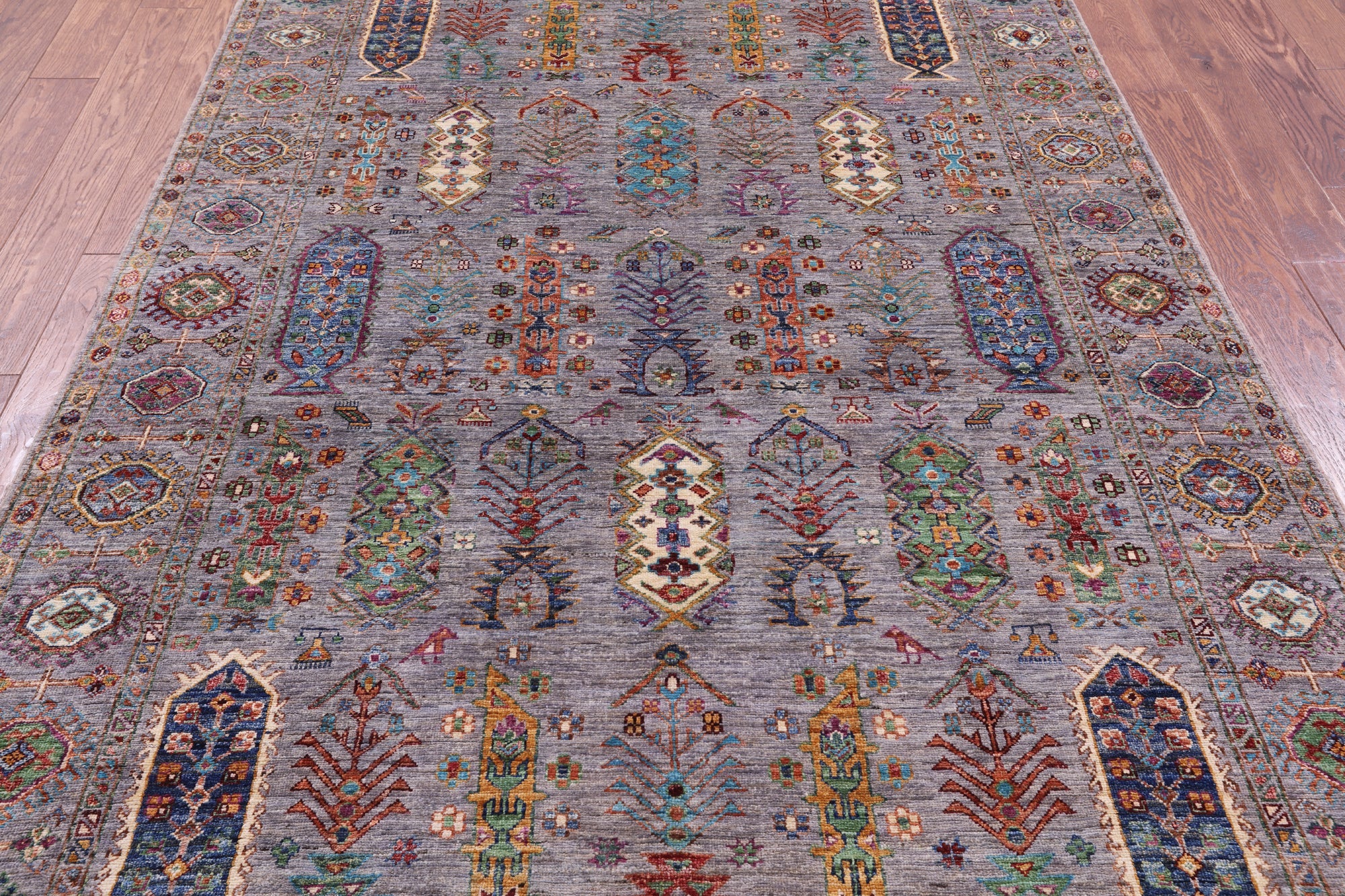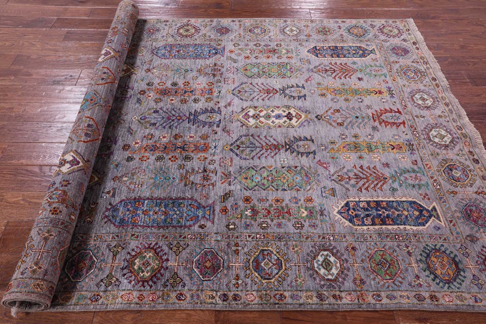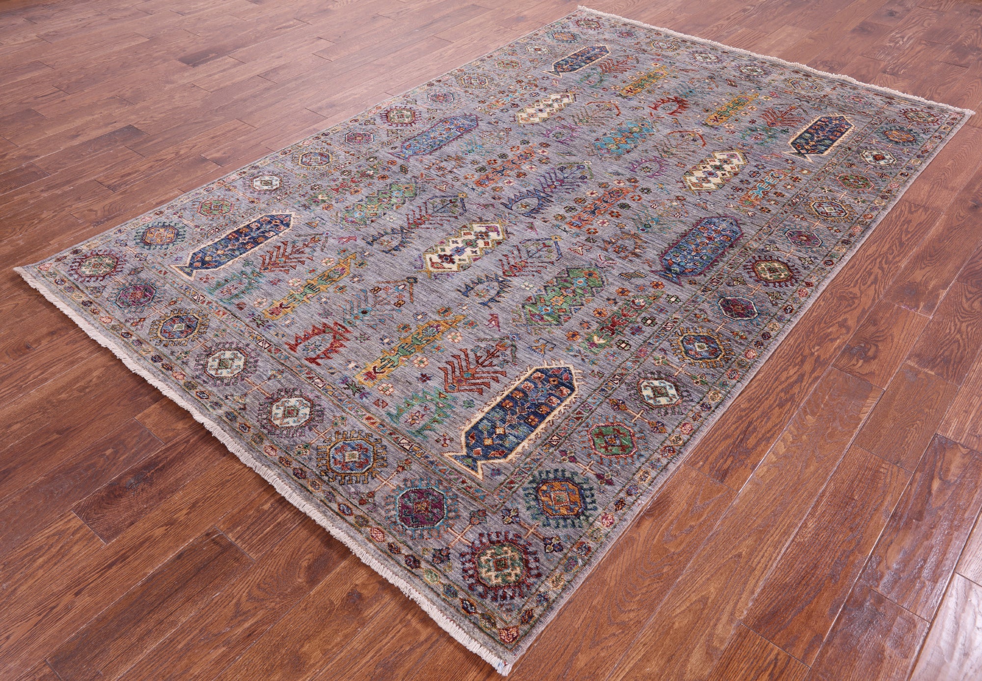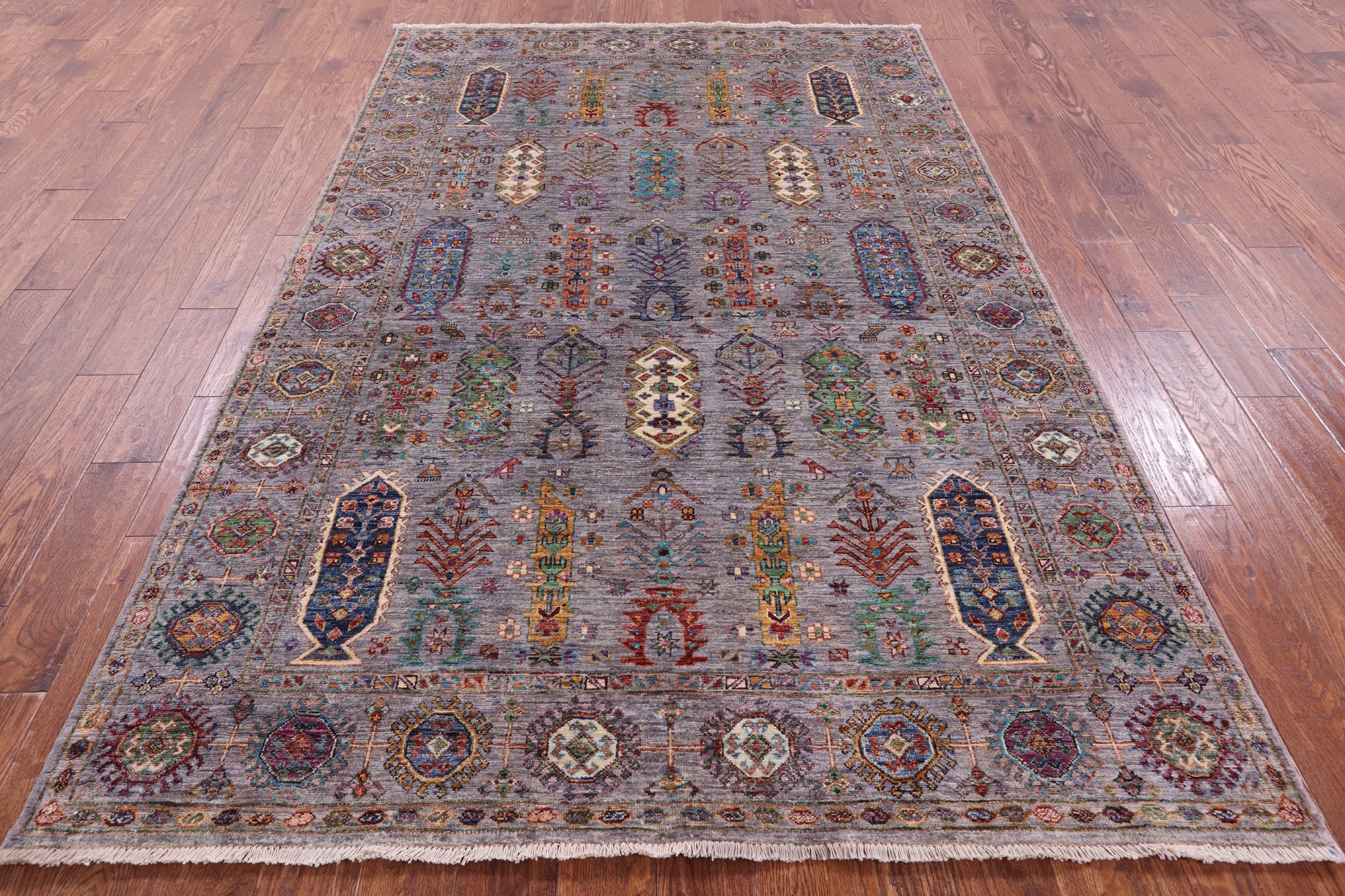 Grey 5' 7" X 8' 9" Handmade Fine Turkmen Ersari Wool Rug - Q14089 is backordered and will ship as soon as it is back in stock.