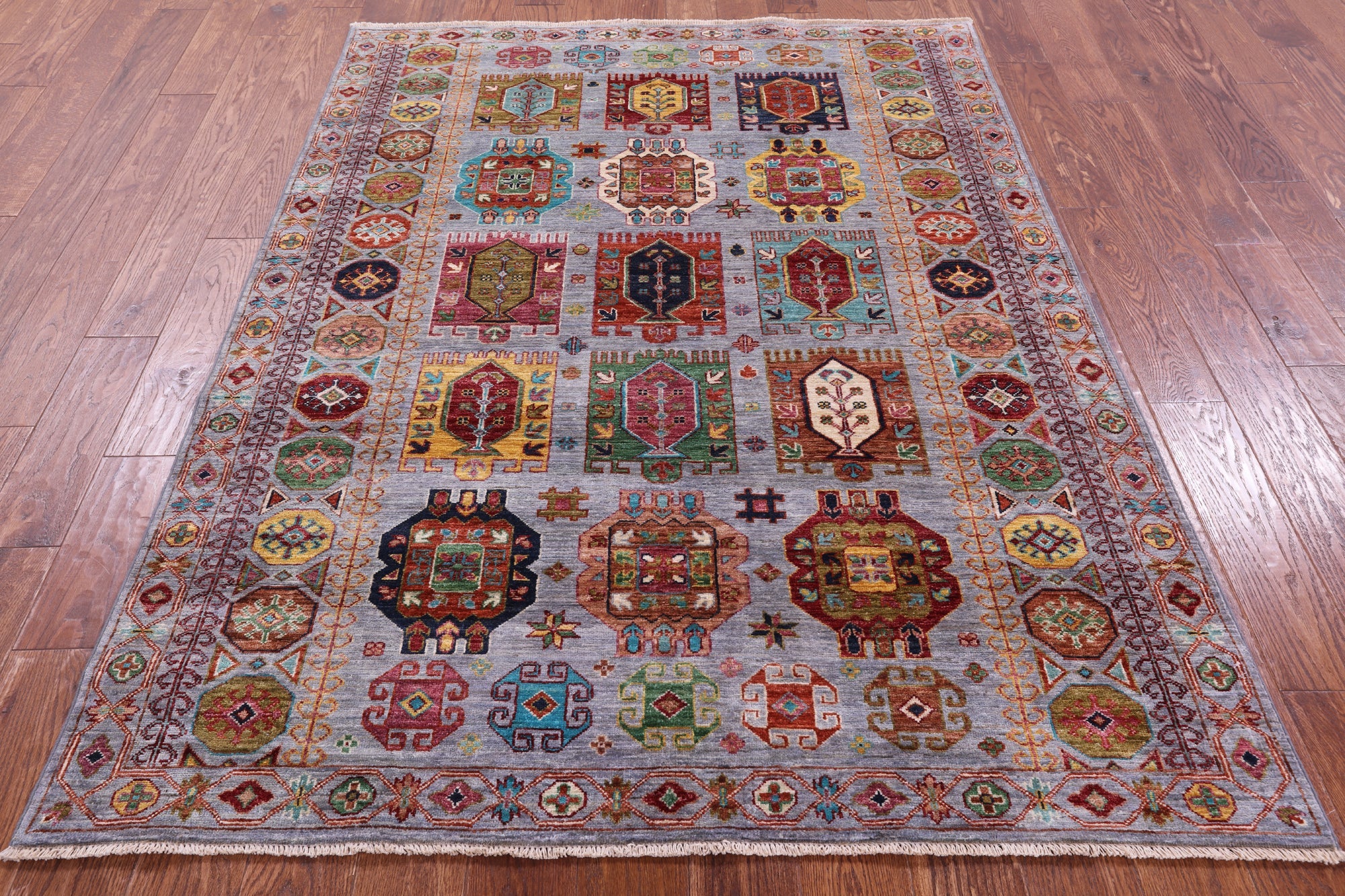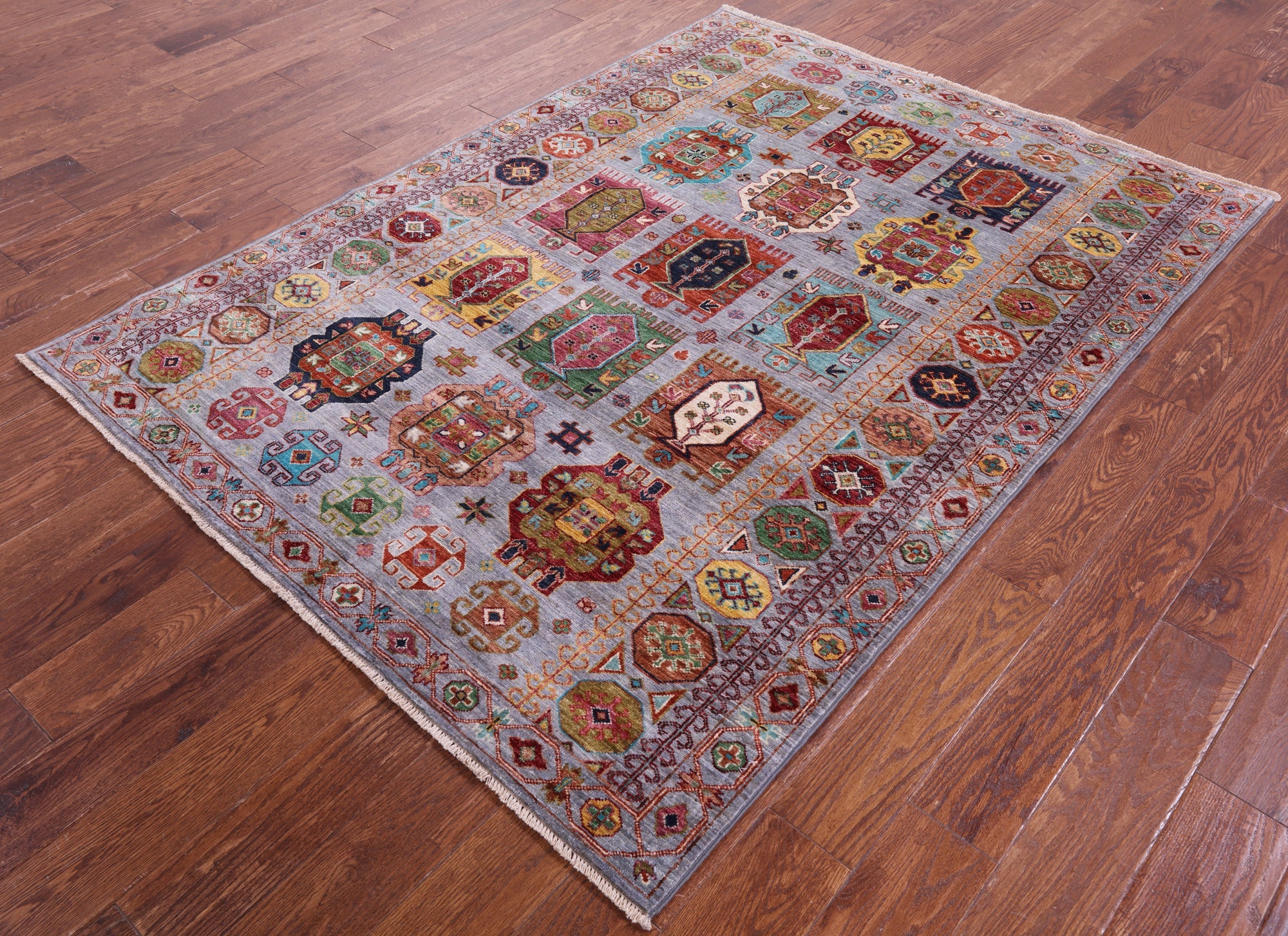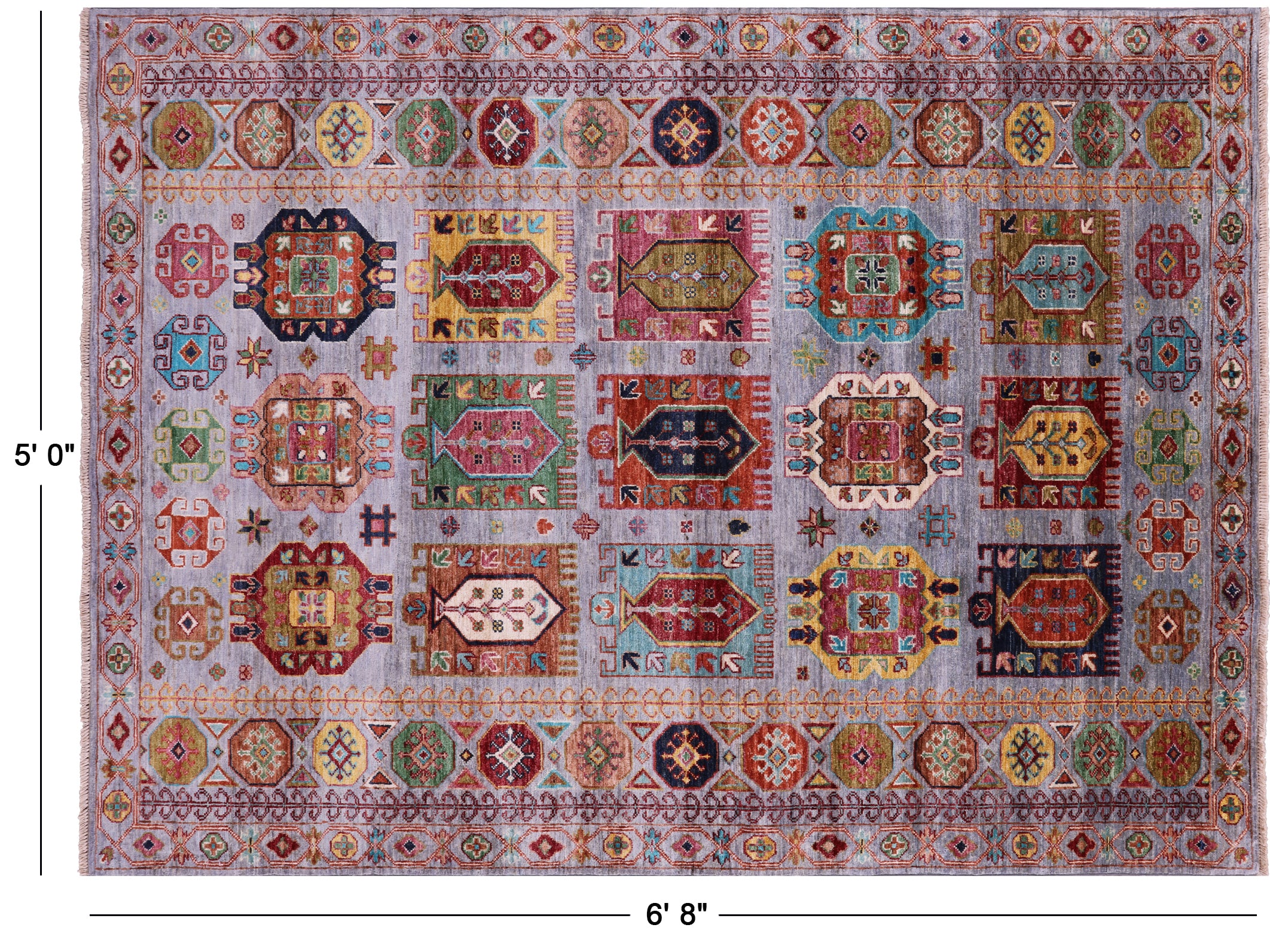 Grey 5' 0" X 6' 8" Handmade Fine Turkmen Ersari Wool Rug - Q16393 is backordered and will ship as soon as it is back in stock.