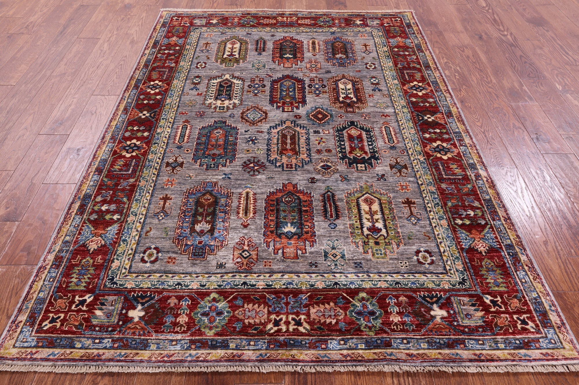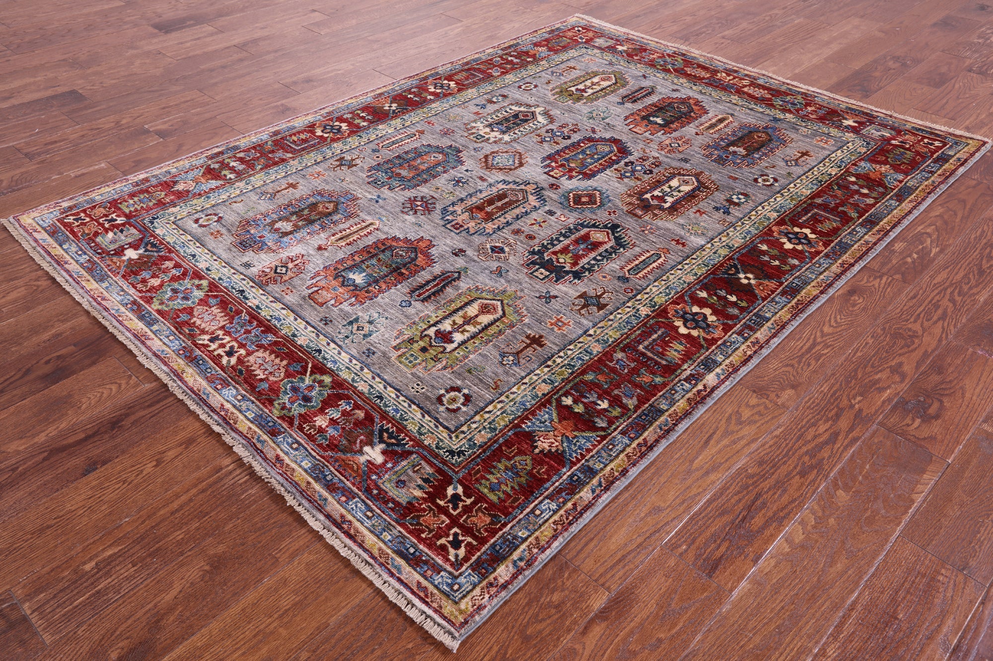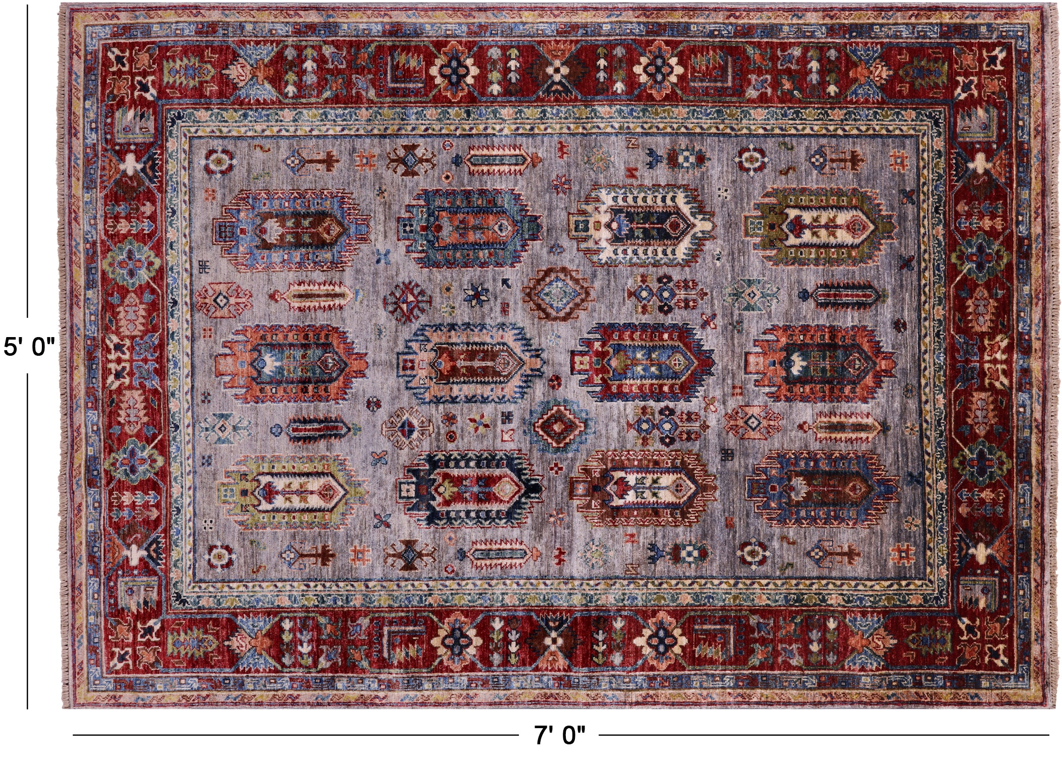 Grey 5' 0" X 7' 0" Handmade Fine Turkmen Ersari Wool Rug - Q16458 is backordered and will ship as soon as it is back in stock.