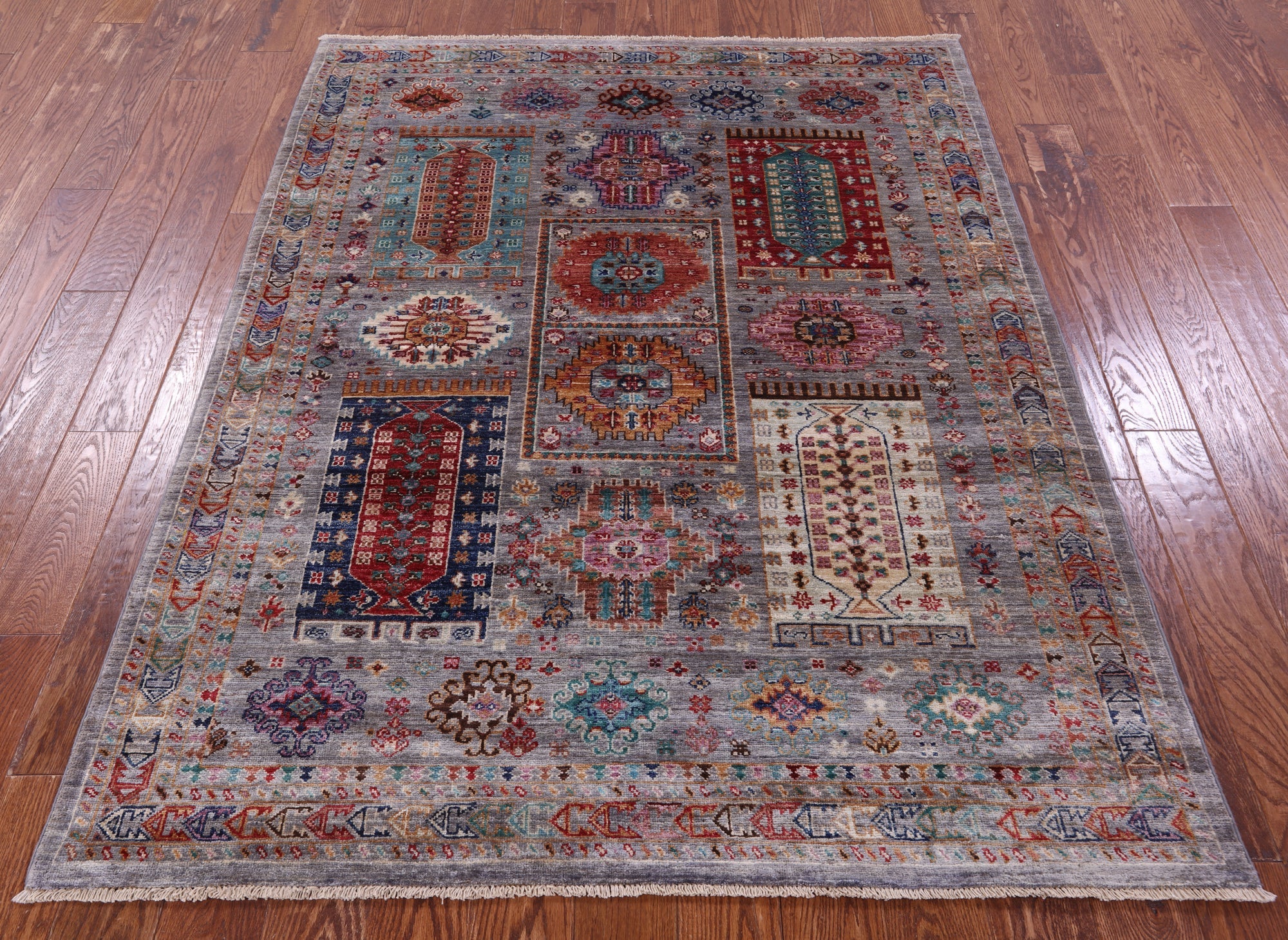 Grey 5' 1" X 6' 5" Handmade Fine Turkmen Ersari Wool Rug - Q16719 is backordered and will ship as soon as it is back in stock.