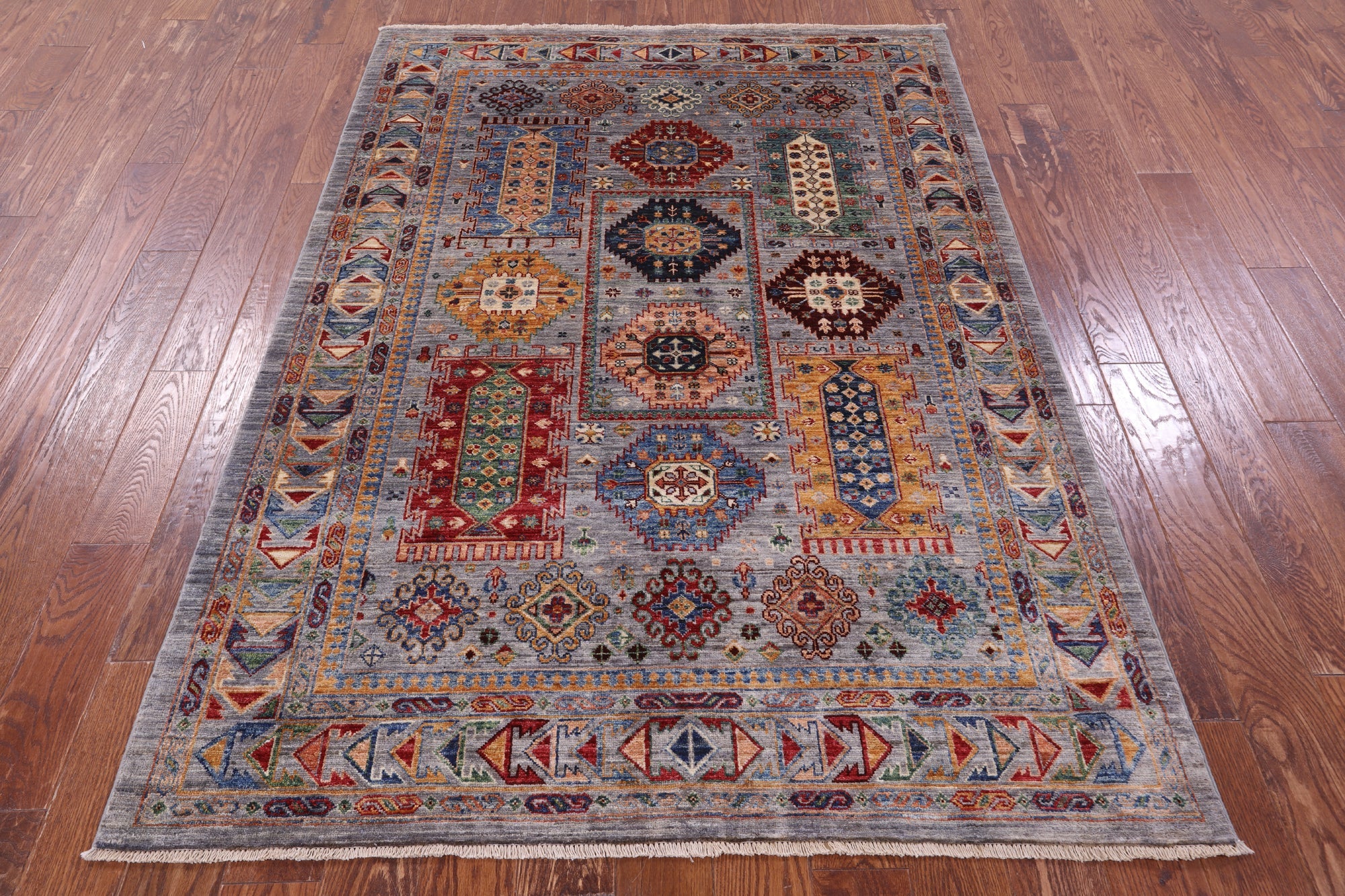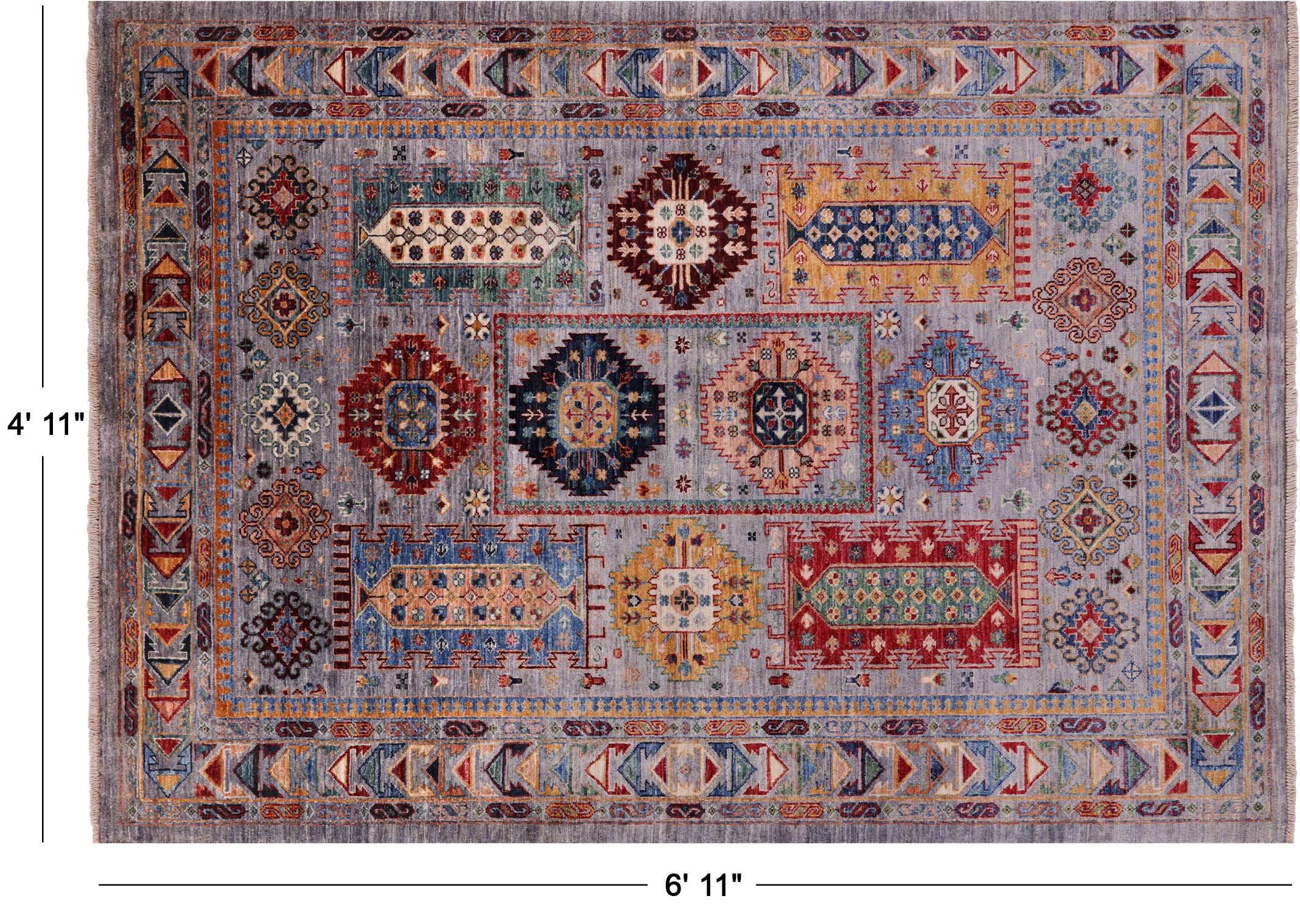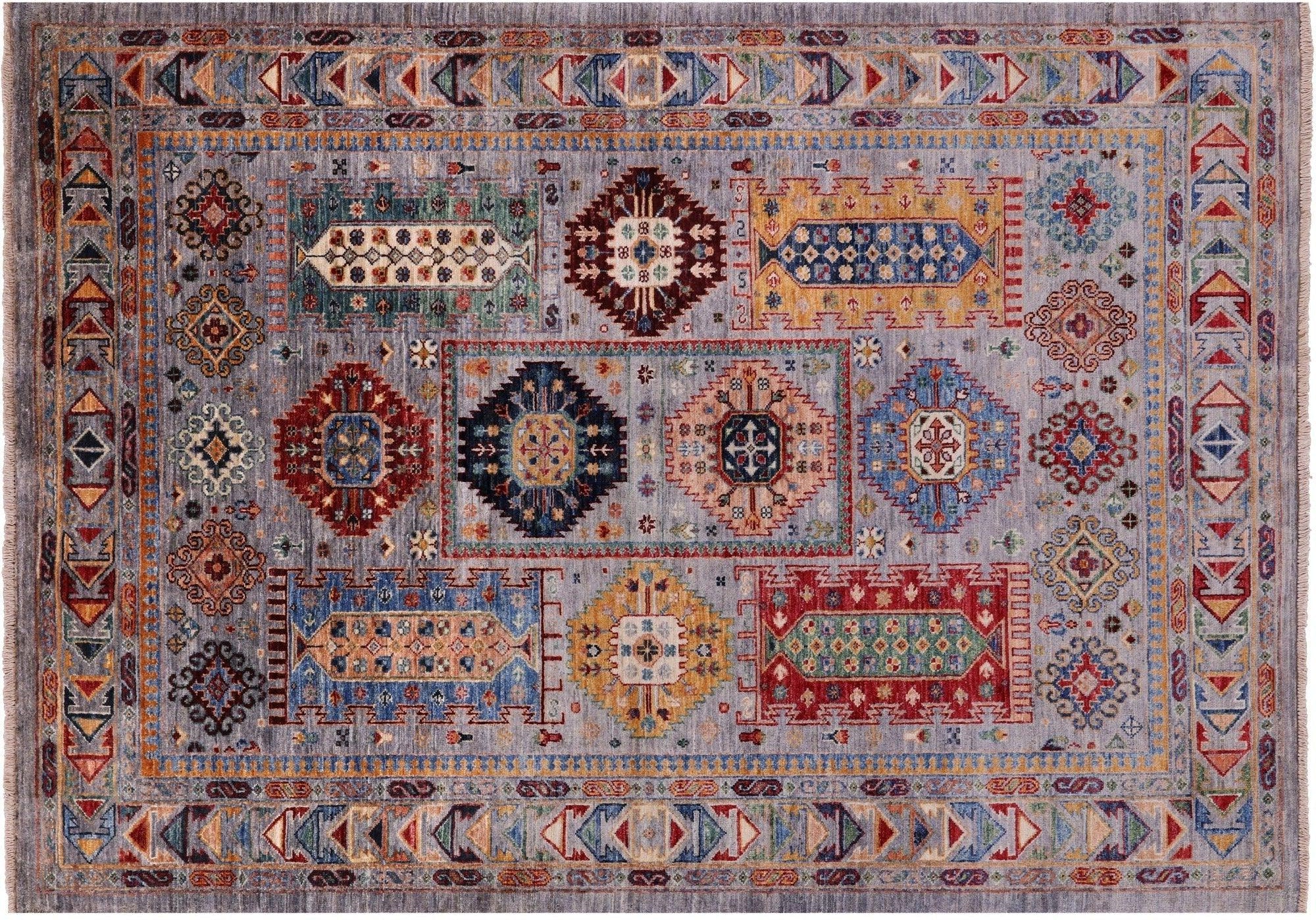 Grey Handmade Fine Turkmen Ersari Wool Rug 4' 11" X 6' 11" - Q17018 is backordered and will ship as soon as it is back in stock.