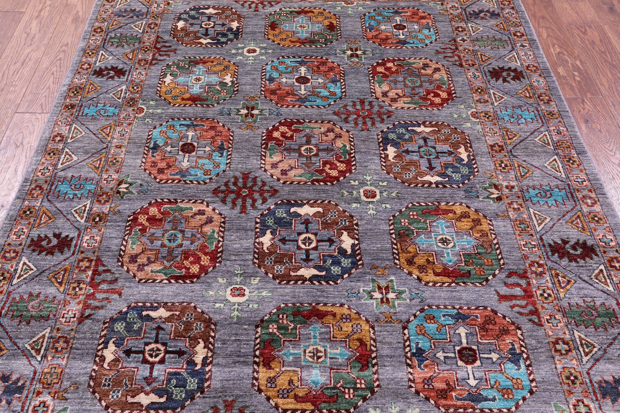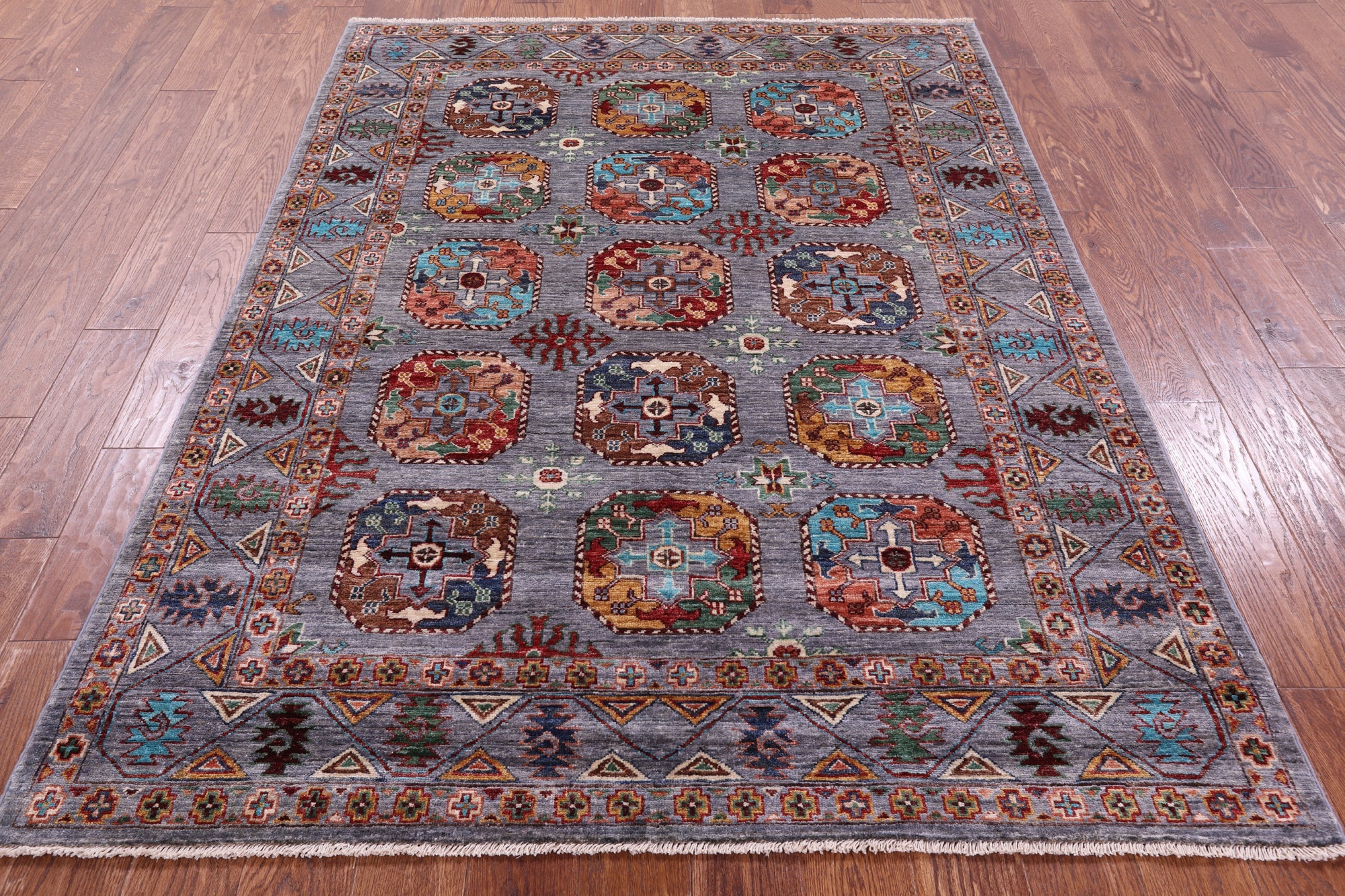 Grey 5' 1" X 6' 9" Handmade Super Turkmen Ersari Wool Rug - Q16469 is backordered and will ship as soon as it is back in stock.