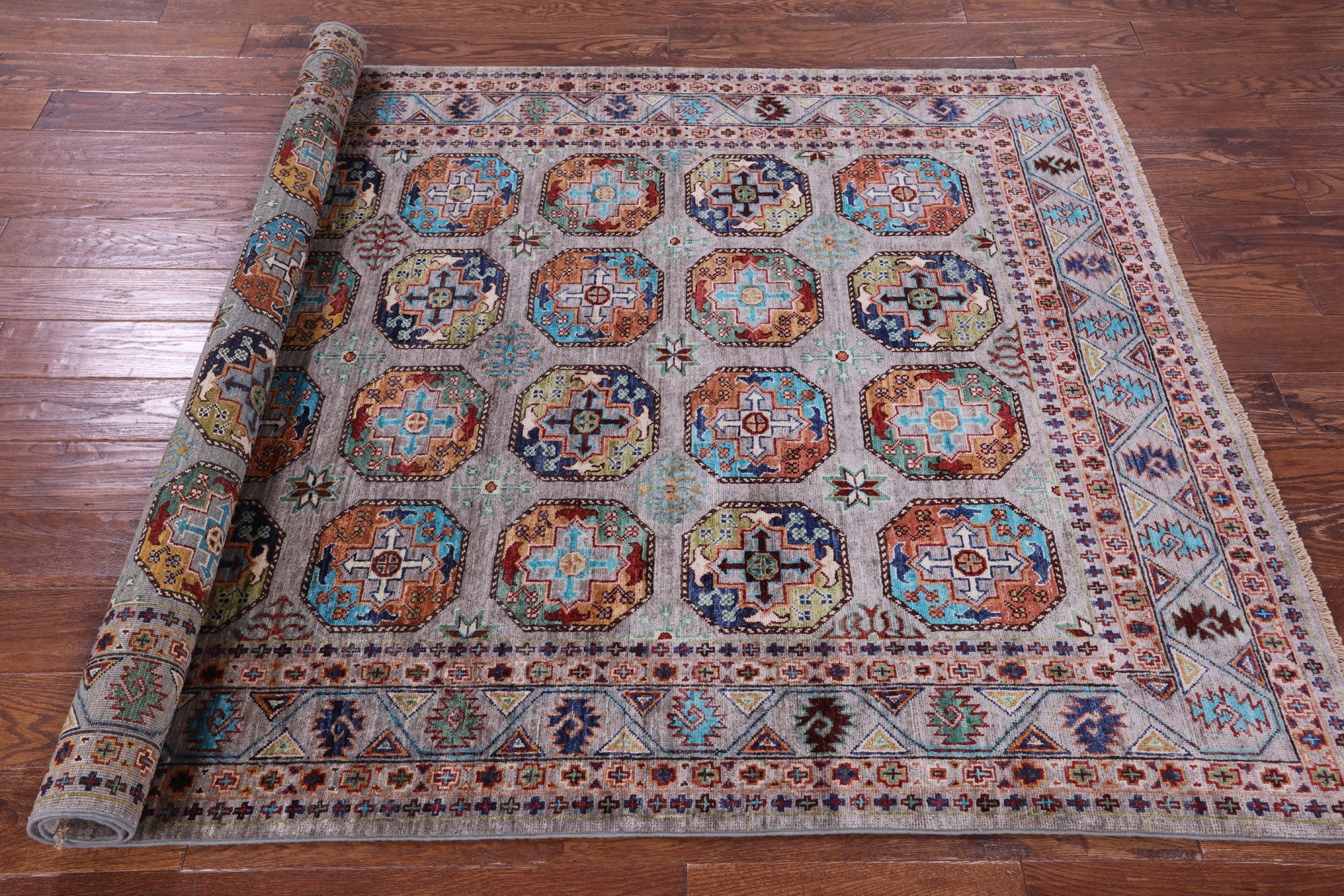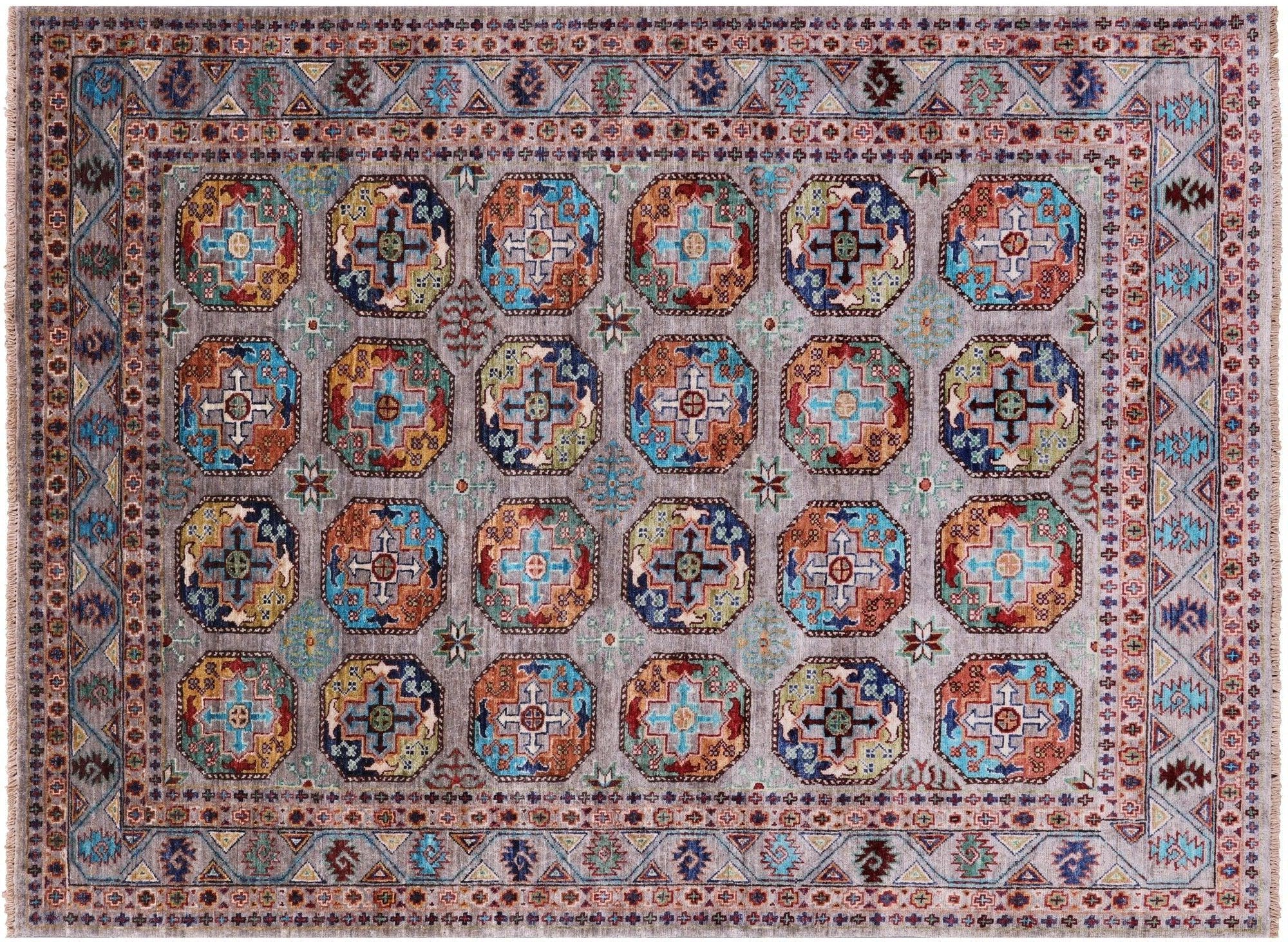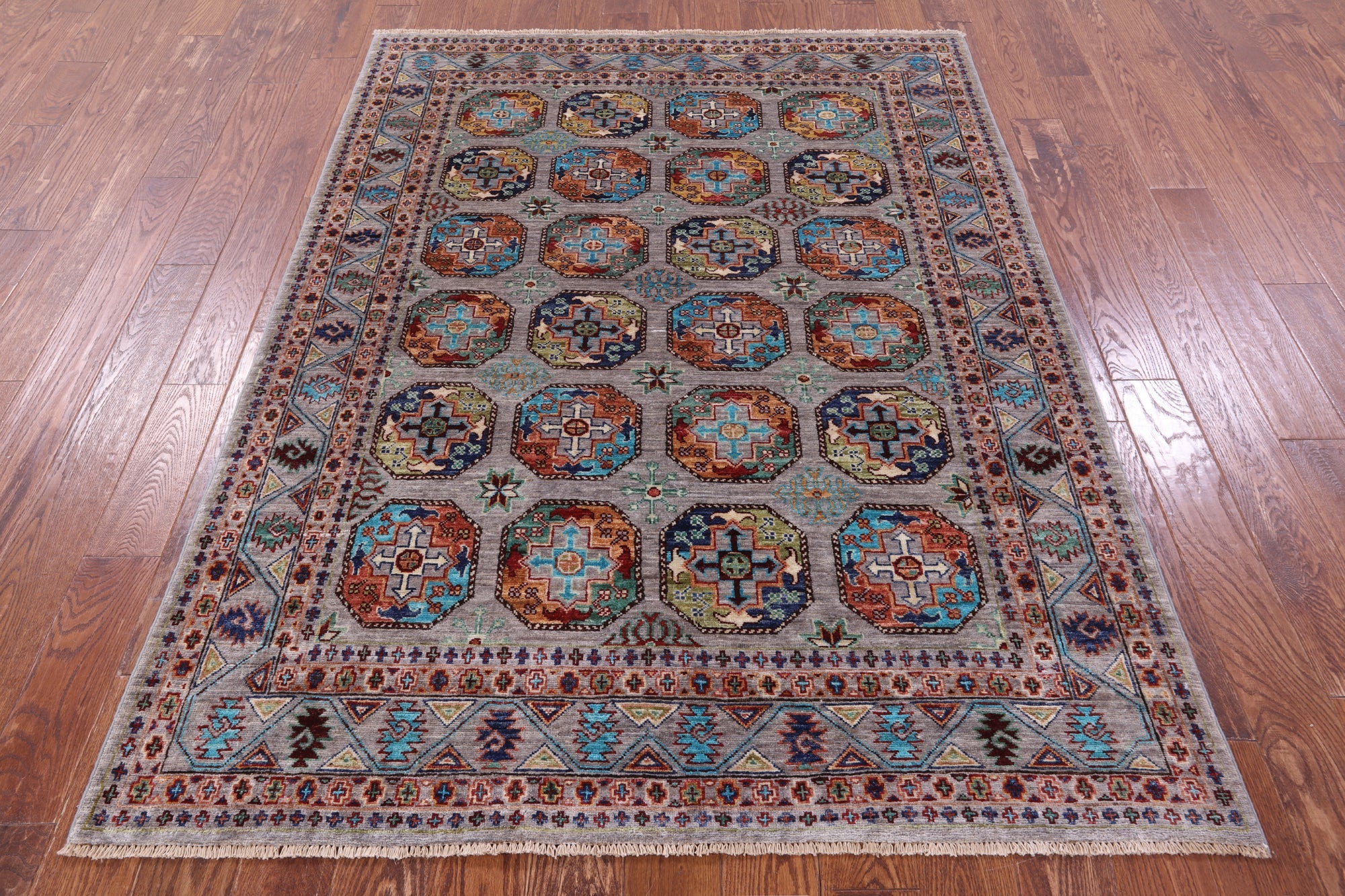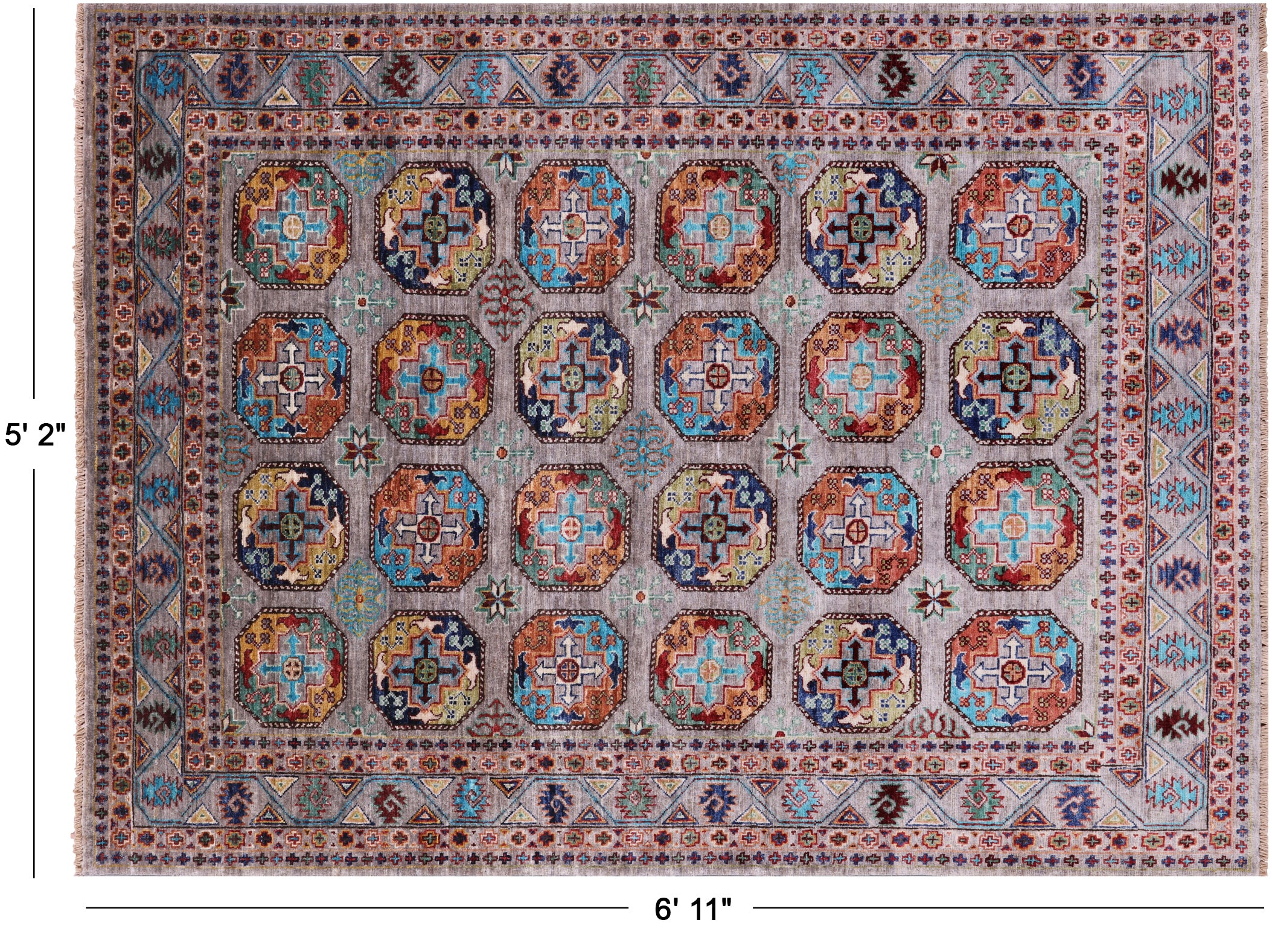 Grey 5' 2" X 6' 11" Handmade Super Turkmen Ersari Wool Rug - Q16654