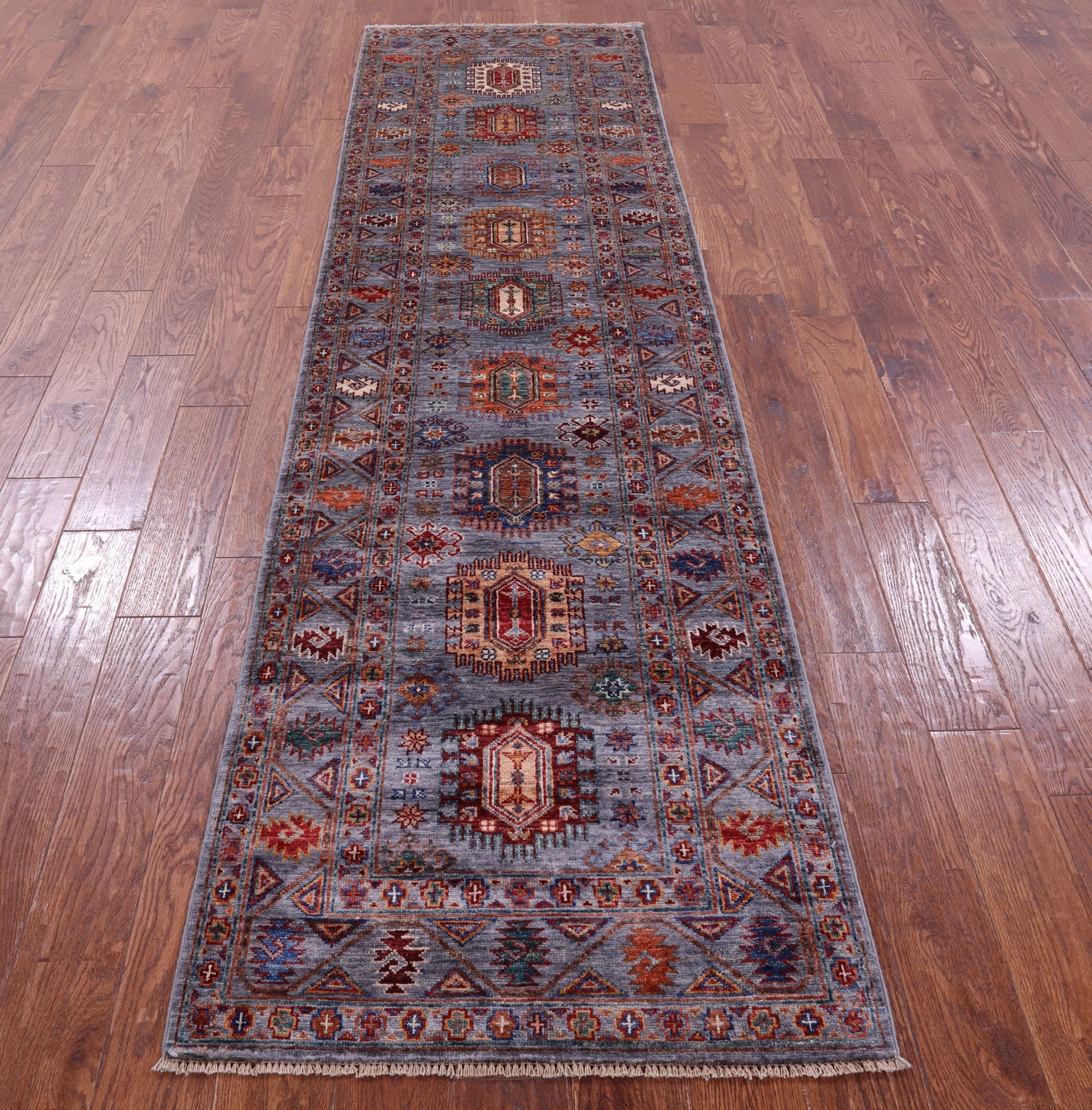 Grey 2' 7" X 9' 6" Runner Fine Turkmen Ersari Handmade Wool Rug - Q16639 is backordered and will ship as soon as it is back in stock.