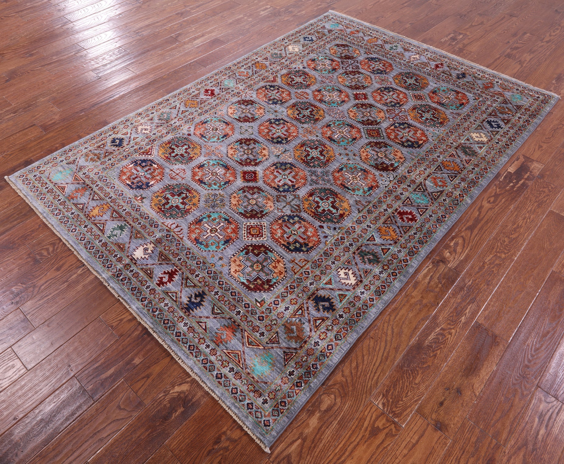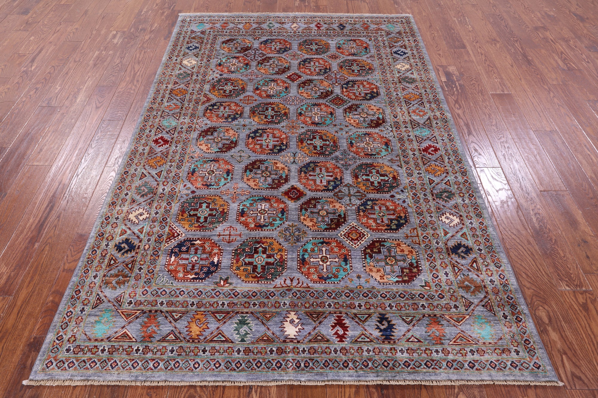Grey 5' 6" X 8' 2" Super Turkmen Ersari Hand Knotted Wool Rug - Q16445