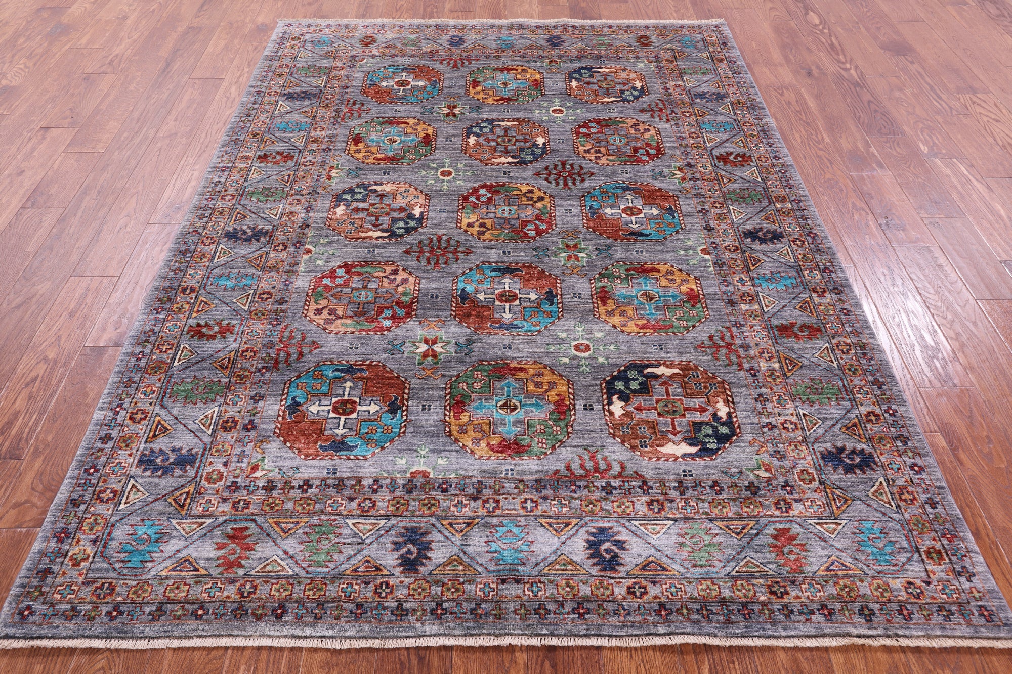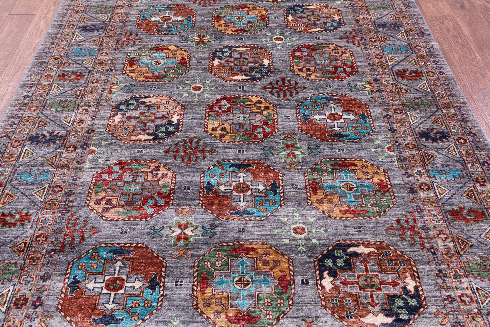 Grey Super Turkmen Ersari Hand Knotted Wool Rug 5' 10" X 7' 11" - Q17234 is backordered and will ship as soon as it is back in stock.