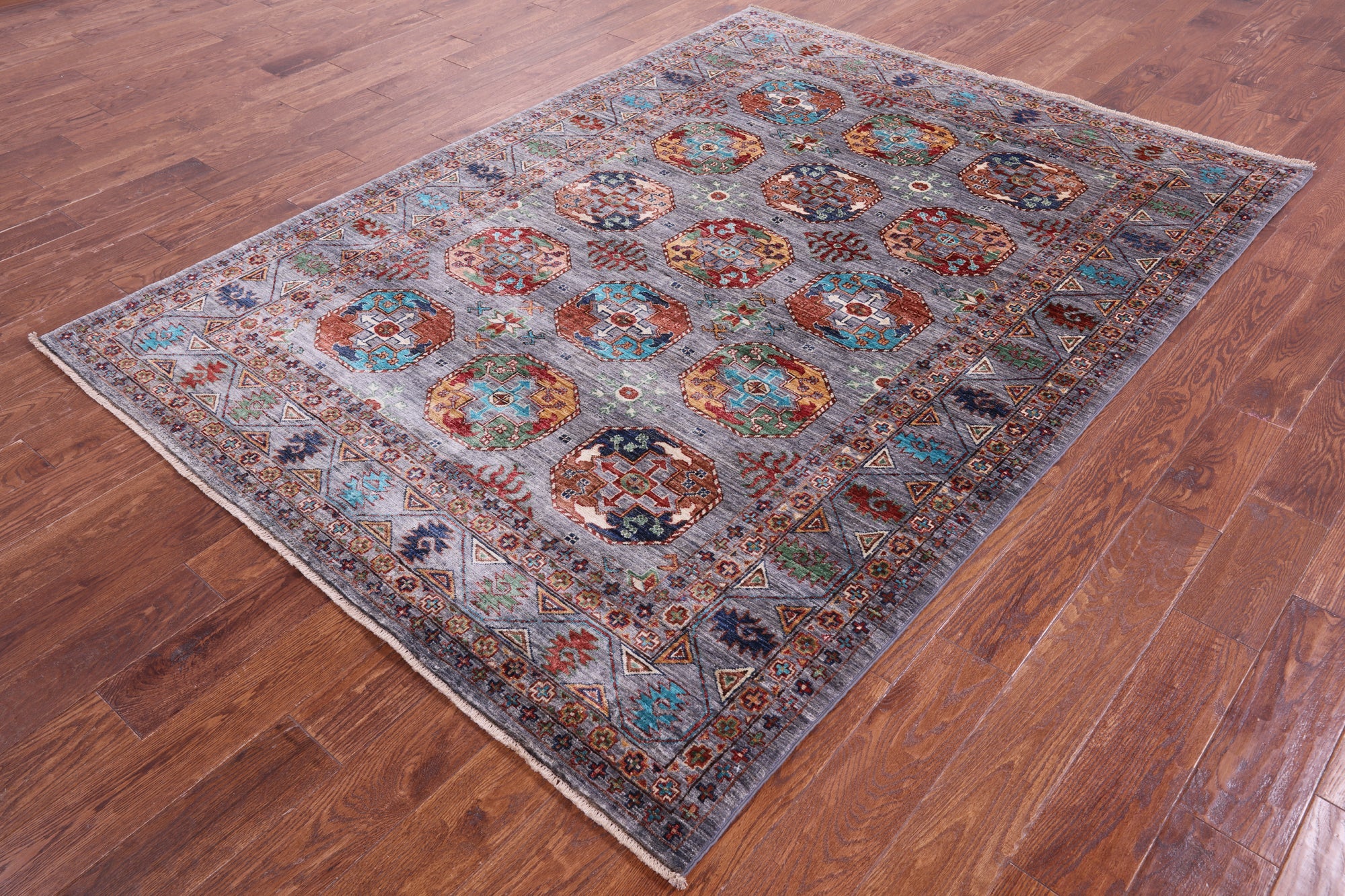 Grey Super Turkmen Ersari Hand Knotted Wool Rug 5' 10" X 7' 11" - Q17234