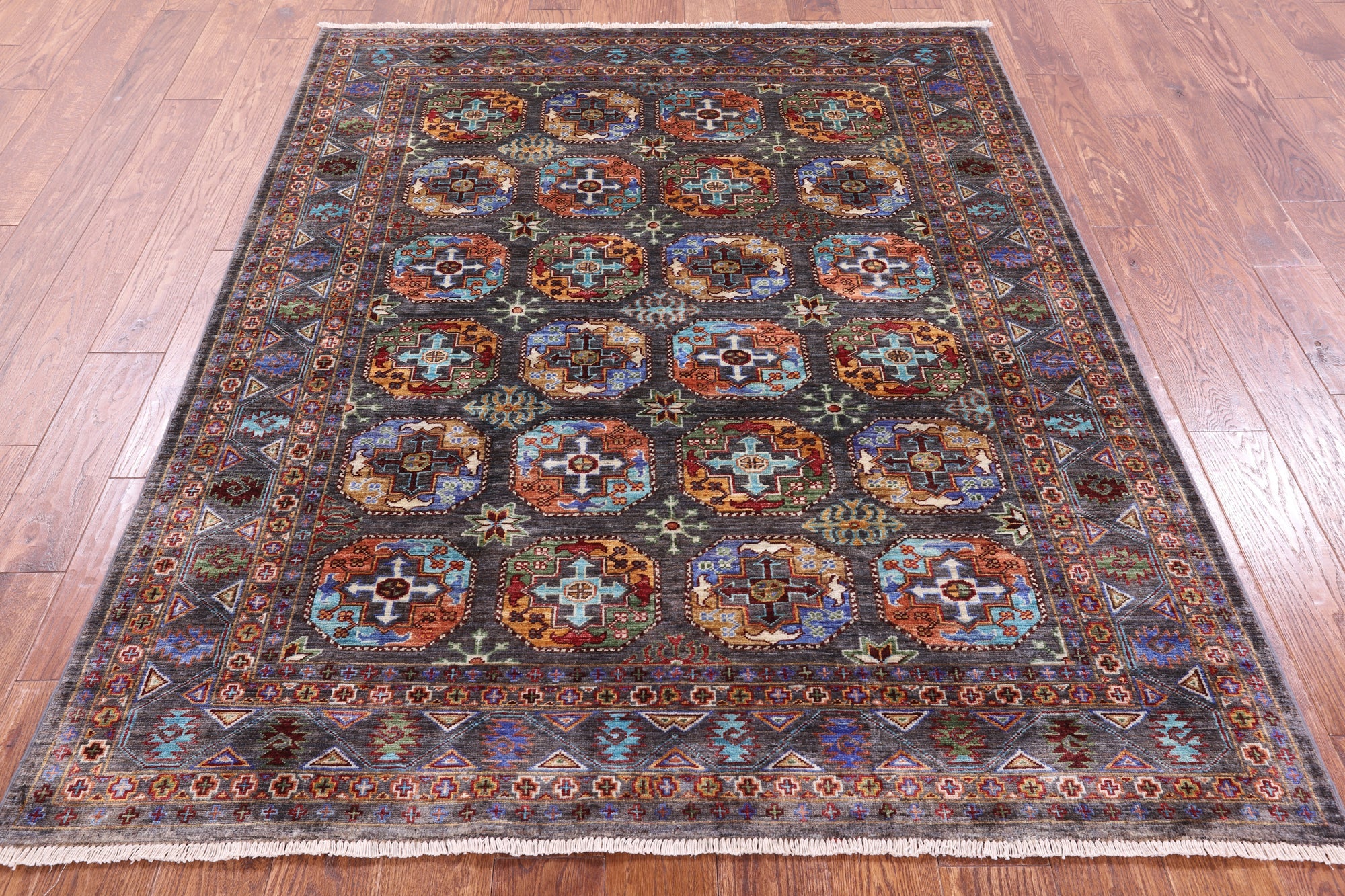 Grey 5' 2" X 6' 7" Super Turkmen Ersari Handmade Rug - Q13950 is backordered and will ship as soon as it is back in stock.