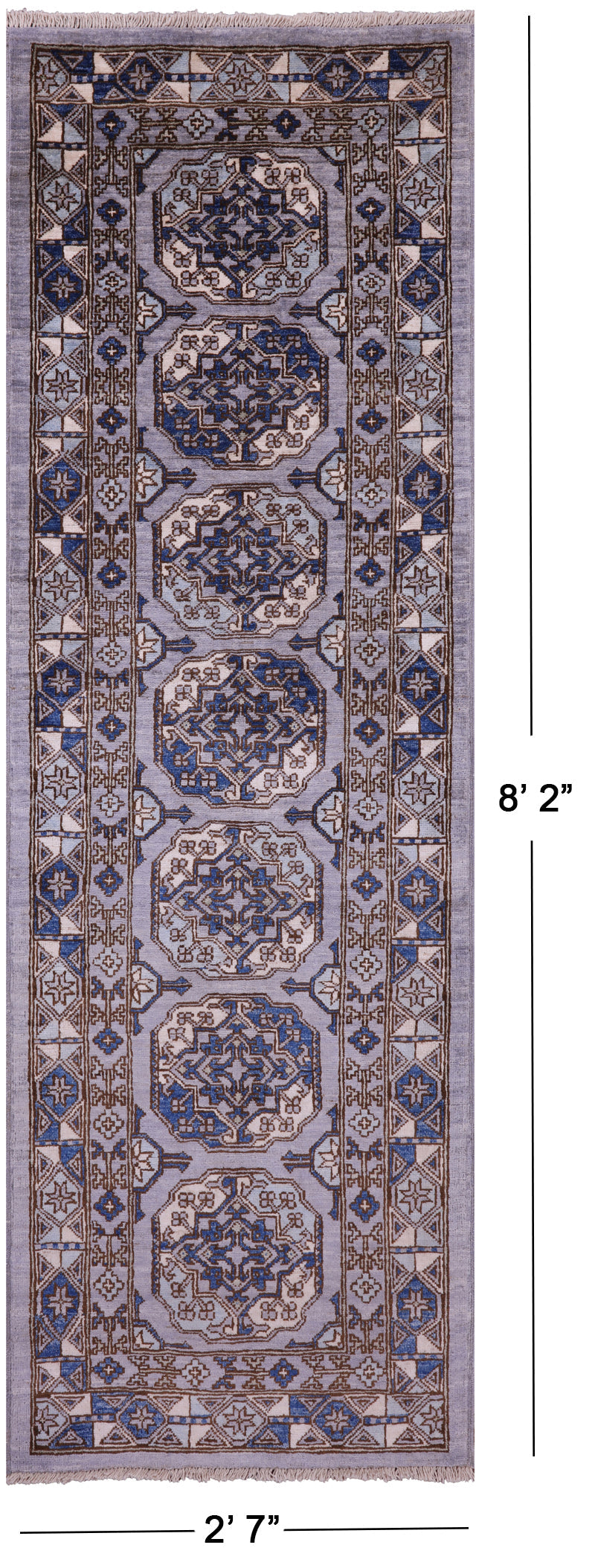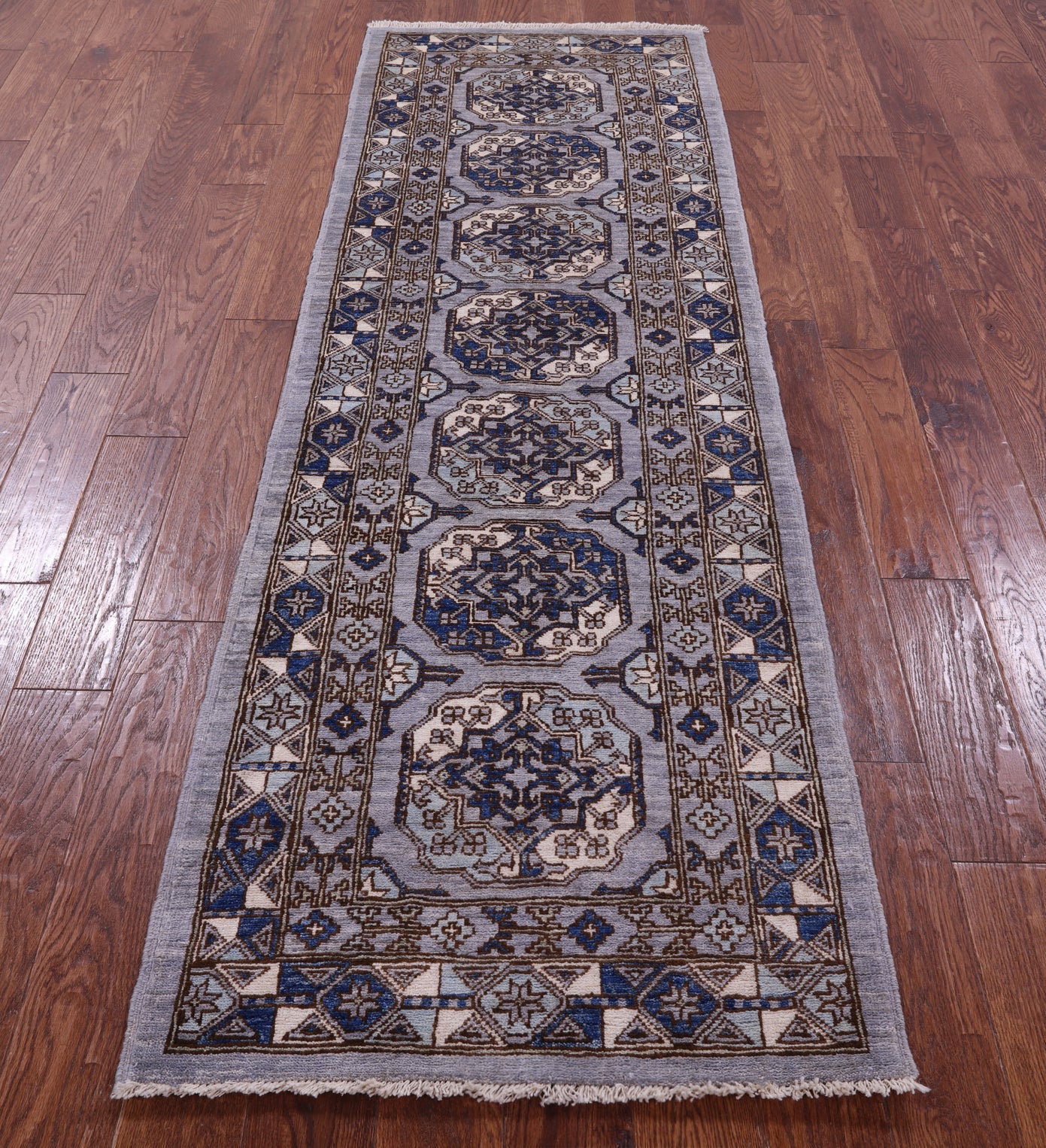 Grey 2' 7" X 8' 2" Super Turkmen Ersari Handmade Runner Rug - Q22038