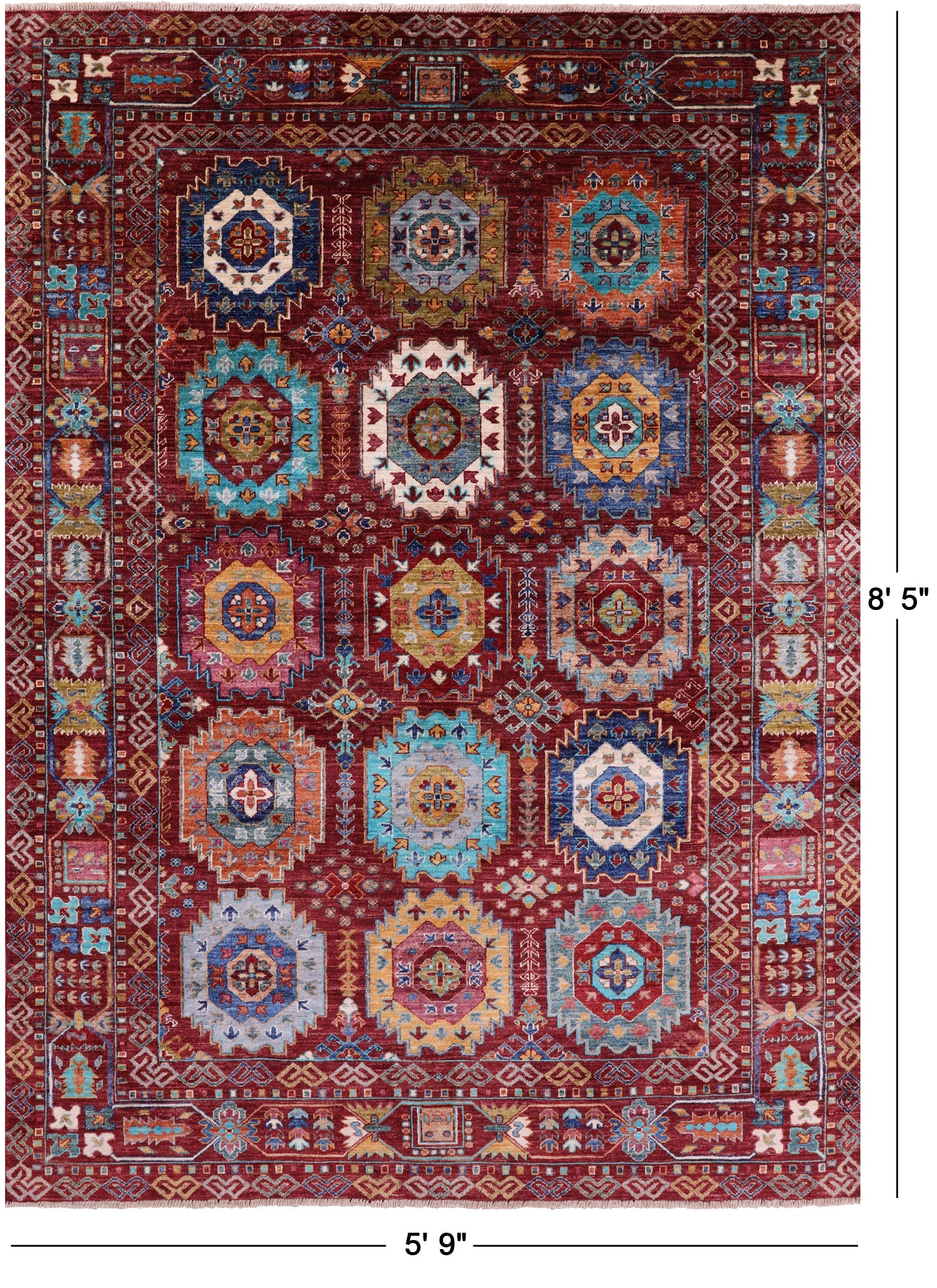 Hand-Knotted Fine Turkmen Ersari Wool Rug 5' 9" X 8' 5" - Q16299