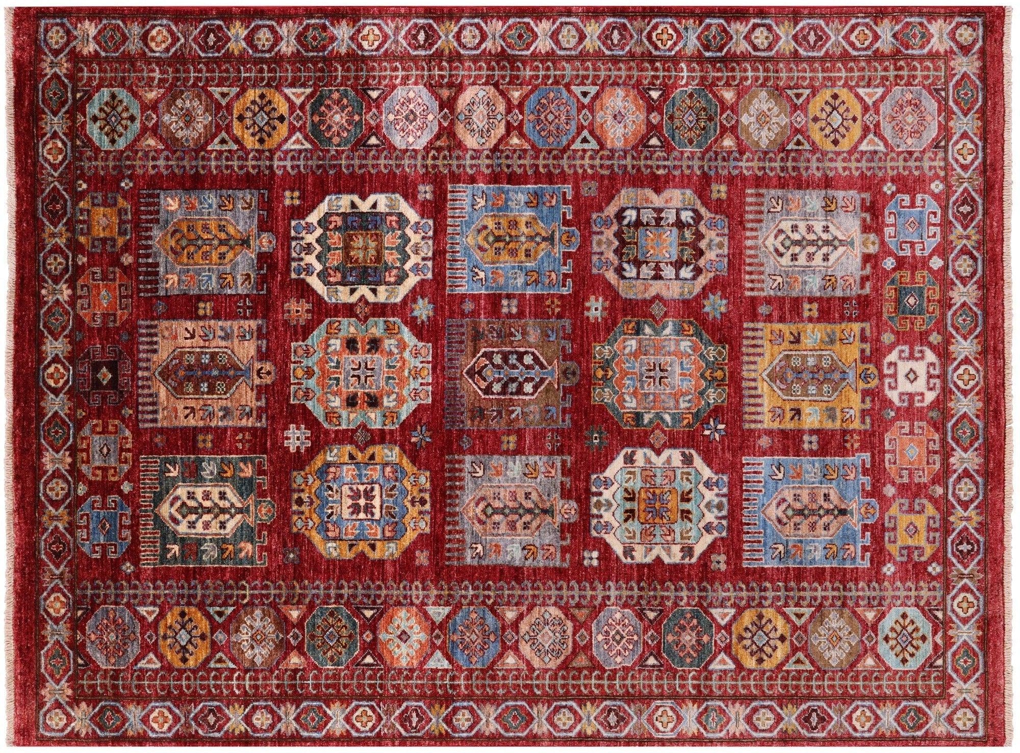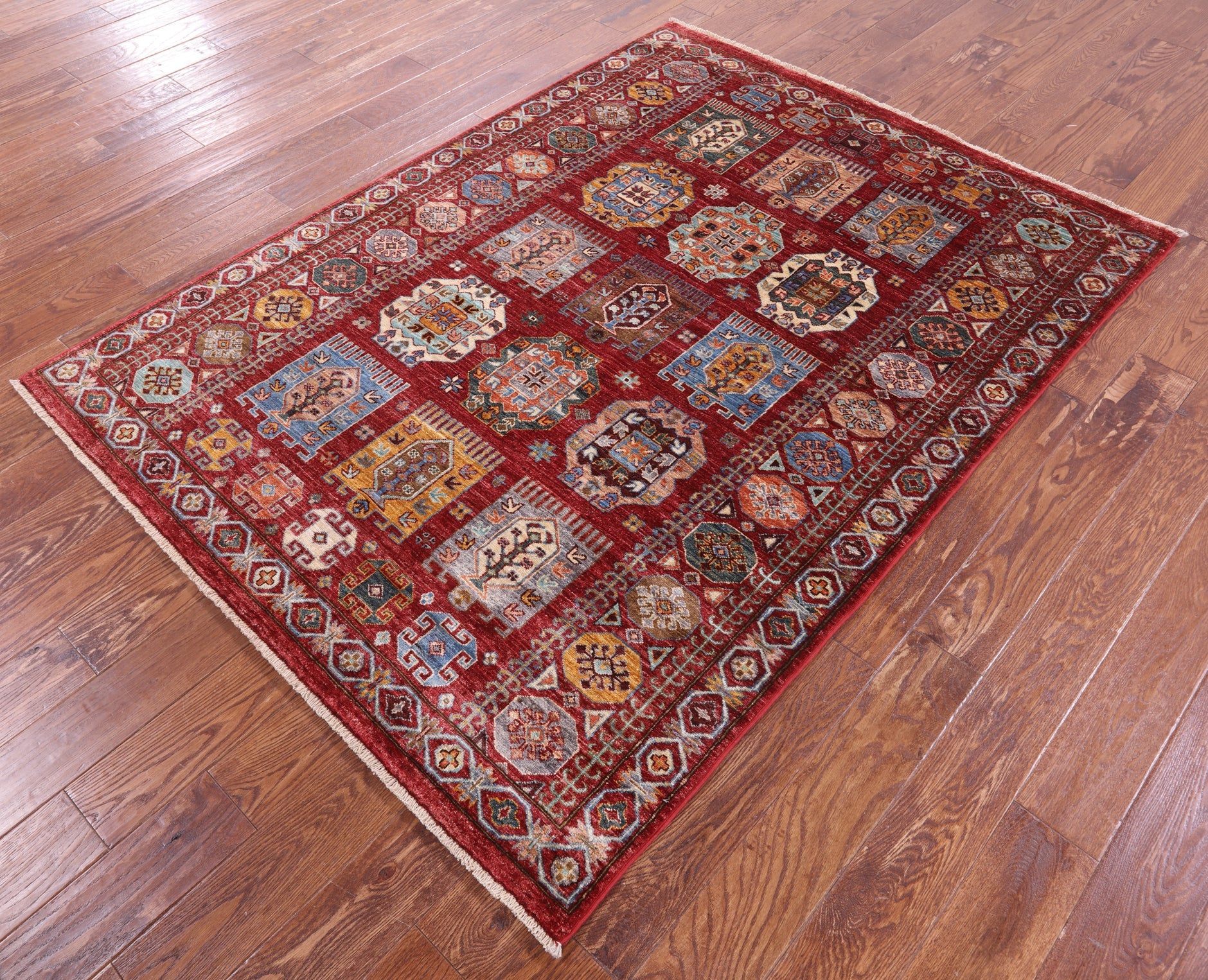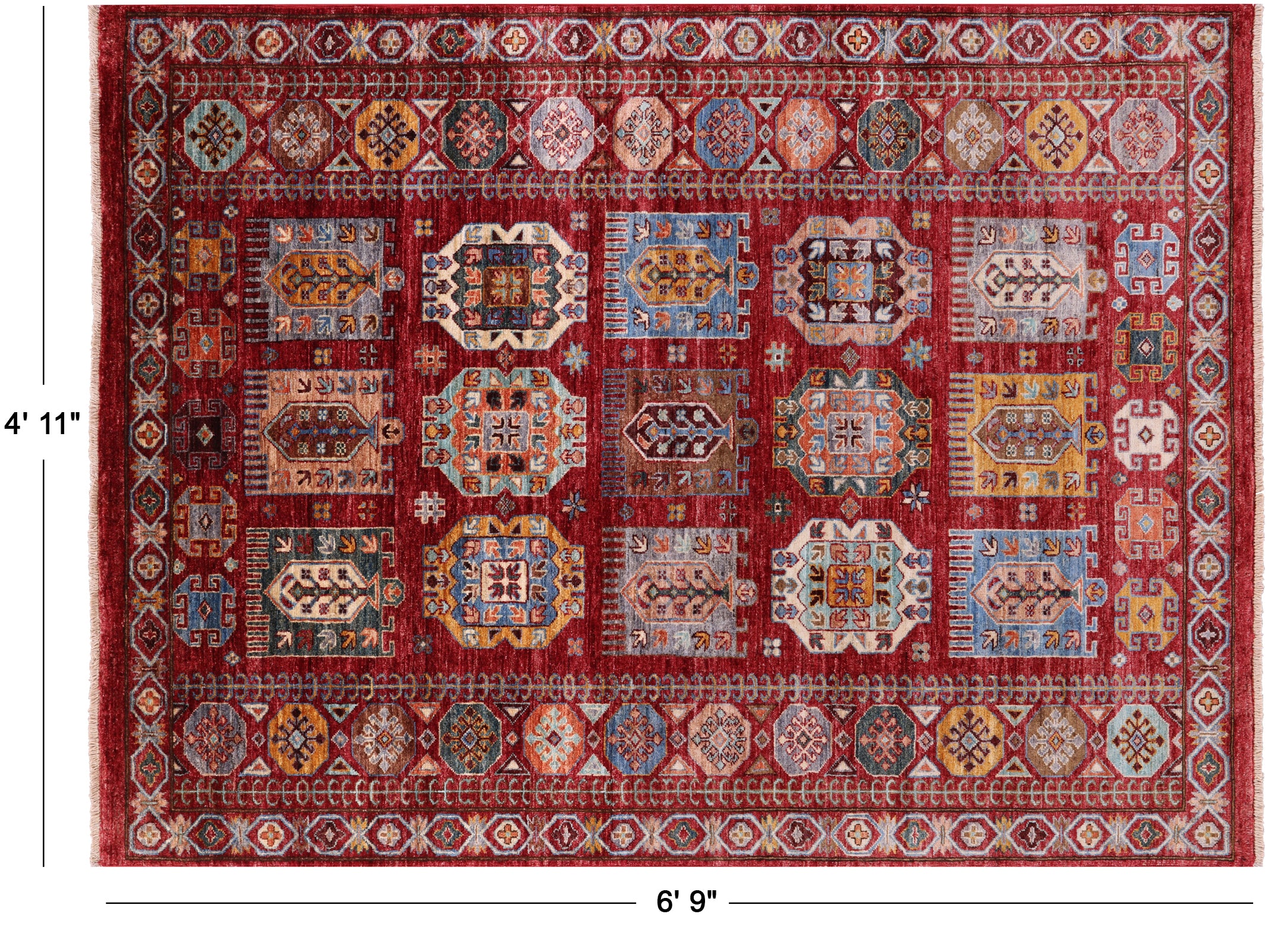 Red Handmade Fine Turkmen Ersari Wool Rug 4' 11" X 6' 9" - Q16468 is backordered and will ship as soon as it is back in stock.