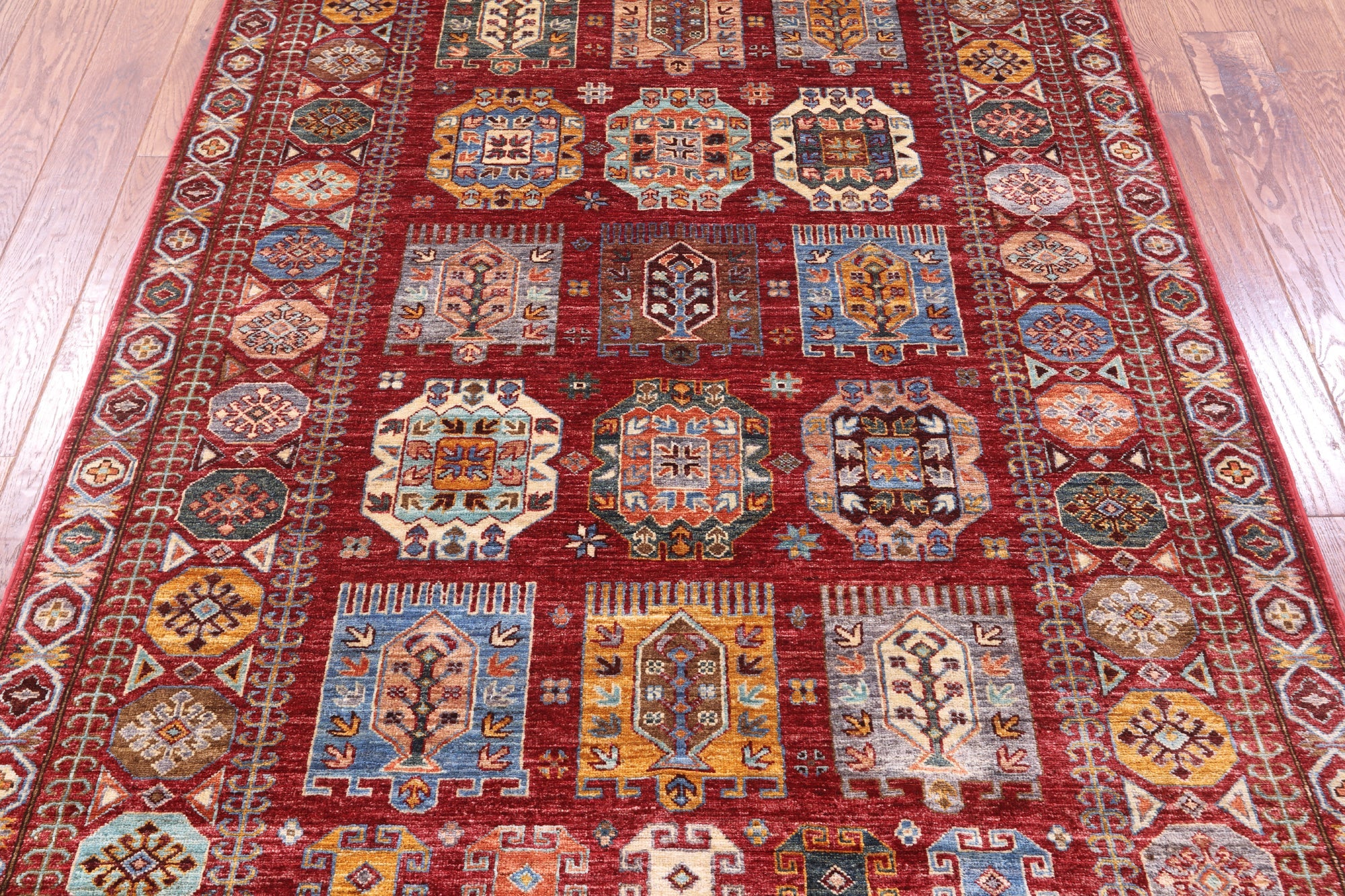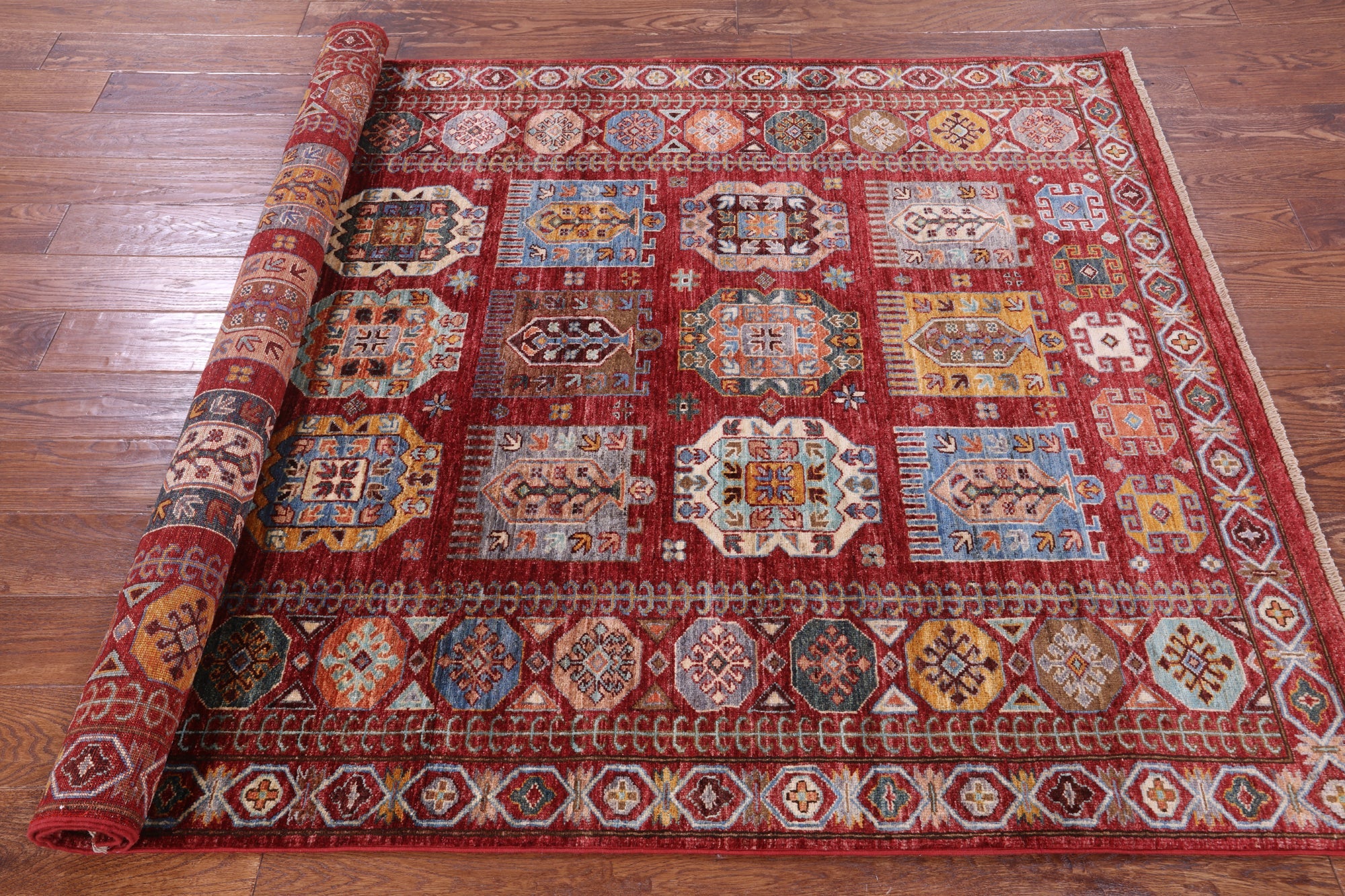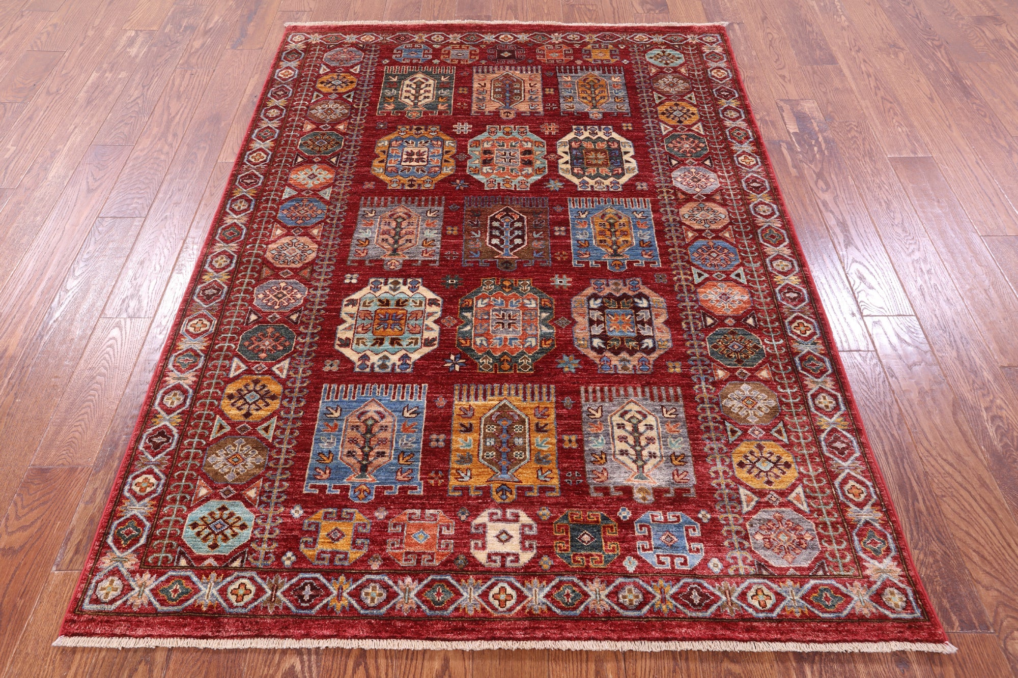 Red Handmade Fine Turkmen Ersari Wool Rug 4' 11" X 6' 9" - Q16468 is backordered and will ship as soon as it is back in stock.