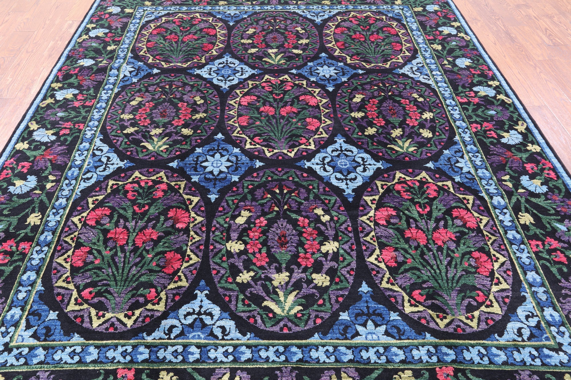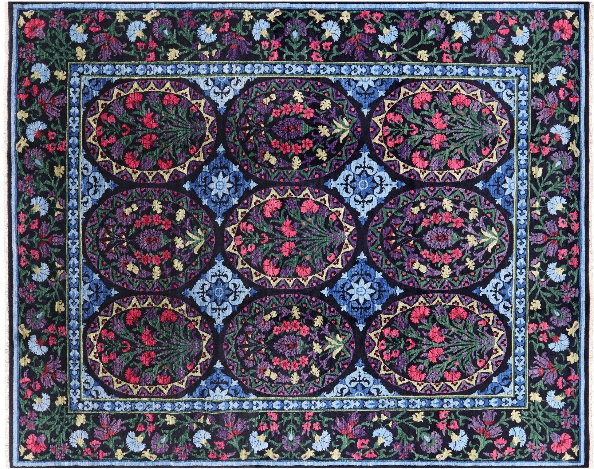 Black 8' 2" X 10' 0" Hand Knotted William Morris Rug - P6944