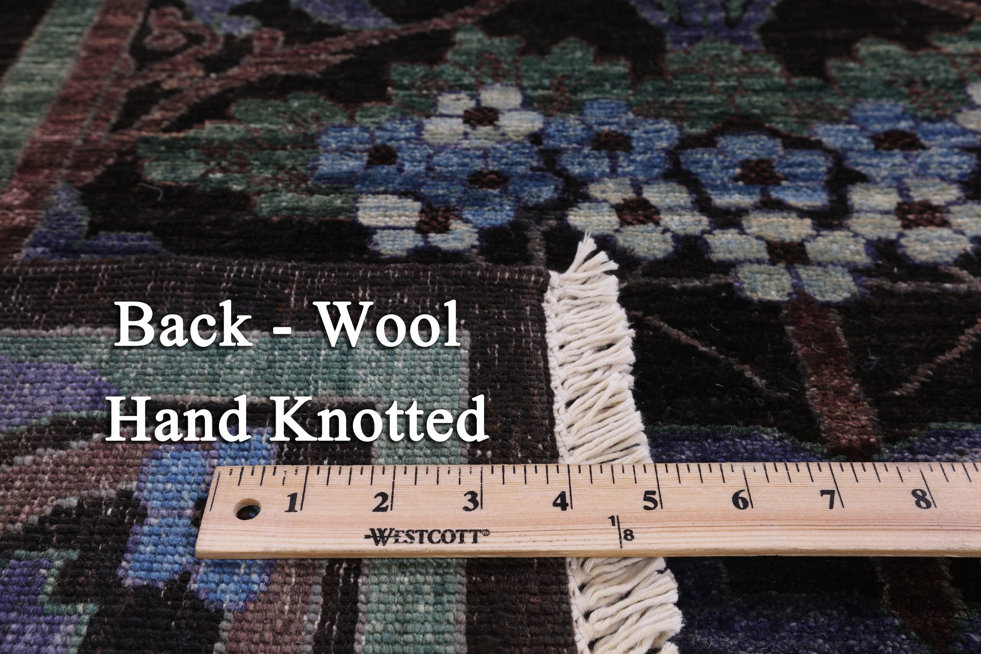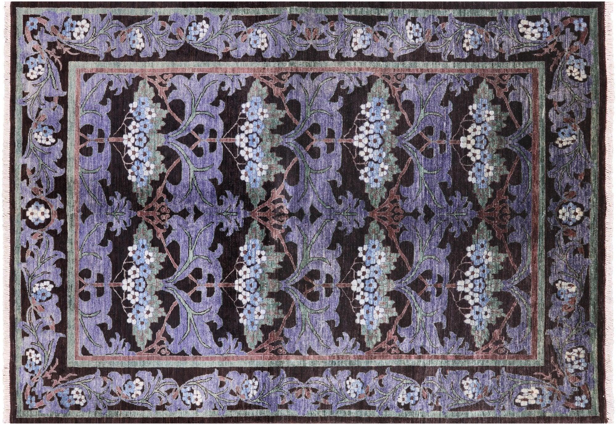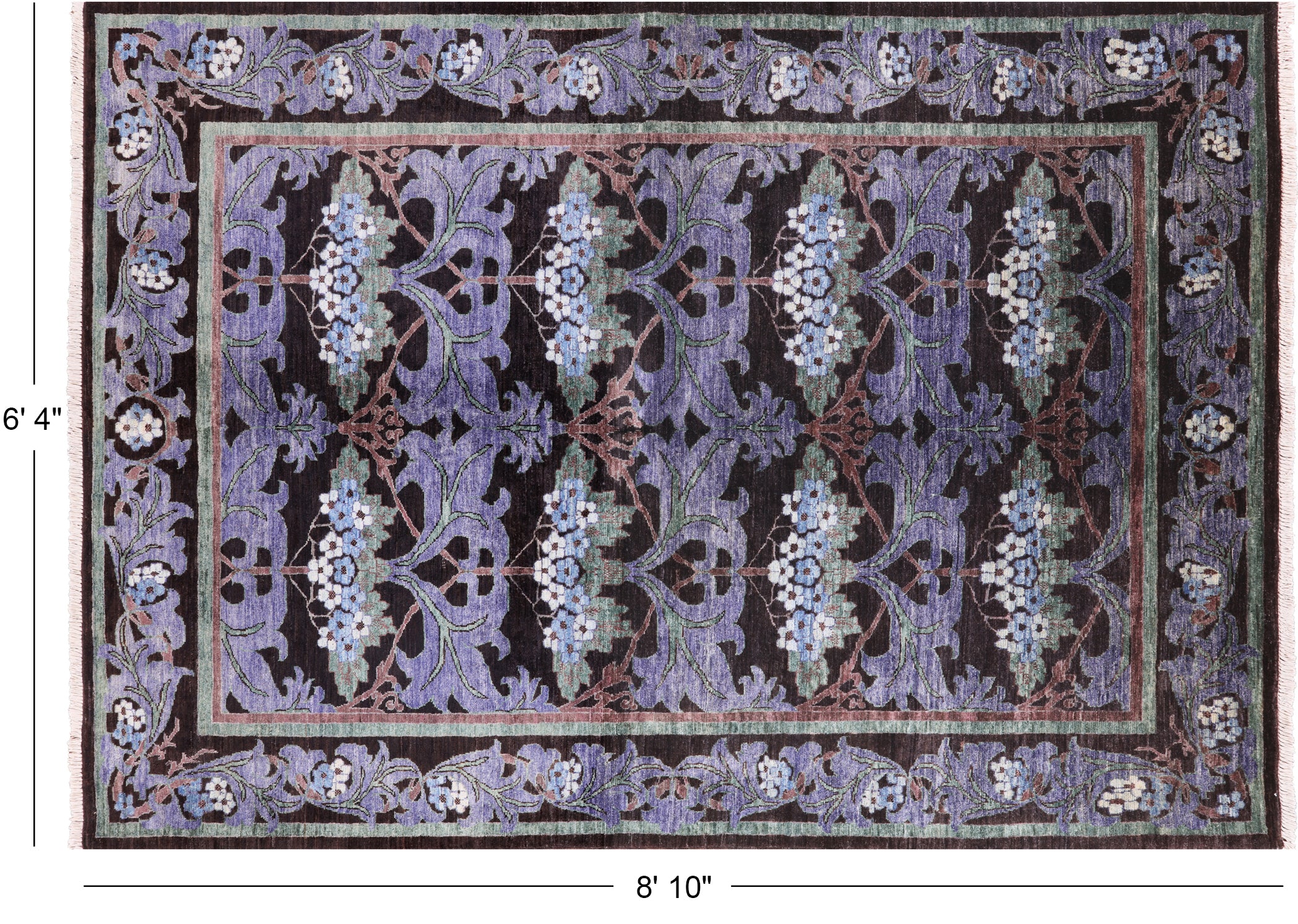 Black William Morris Handmade Rug 6' 4" X 8' 10" - P4993