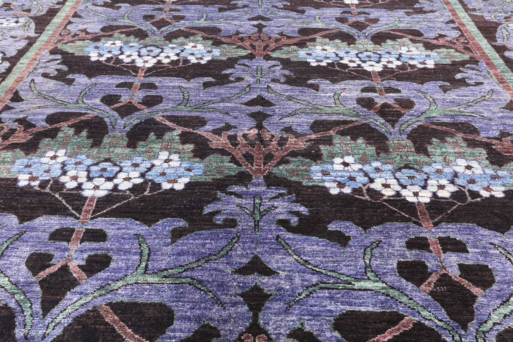 William Morris design are part of arts and crafts movement often including natural forms. These 19th and early 20th century designs are distinctive for their stylized natural forms, their symmetry and their vibrant colors. William Morris patterns are based on nature such thistles, ginkgo leaves, willow trees and flowers. These modern hand knotted rugs are woven with high quality wool, silk or both.