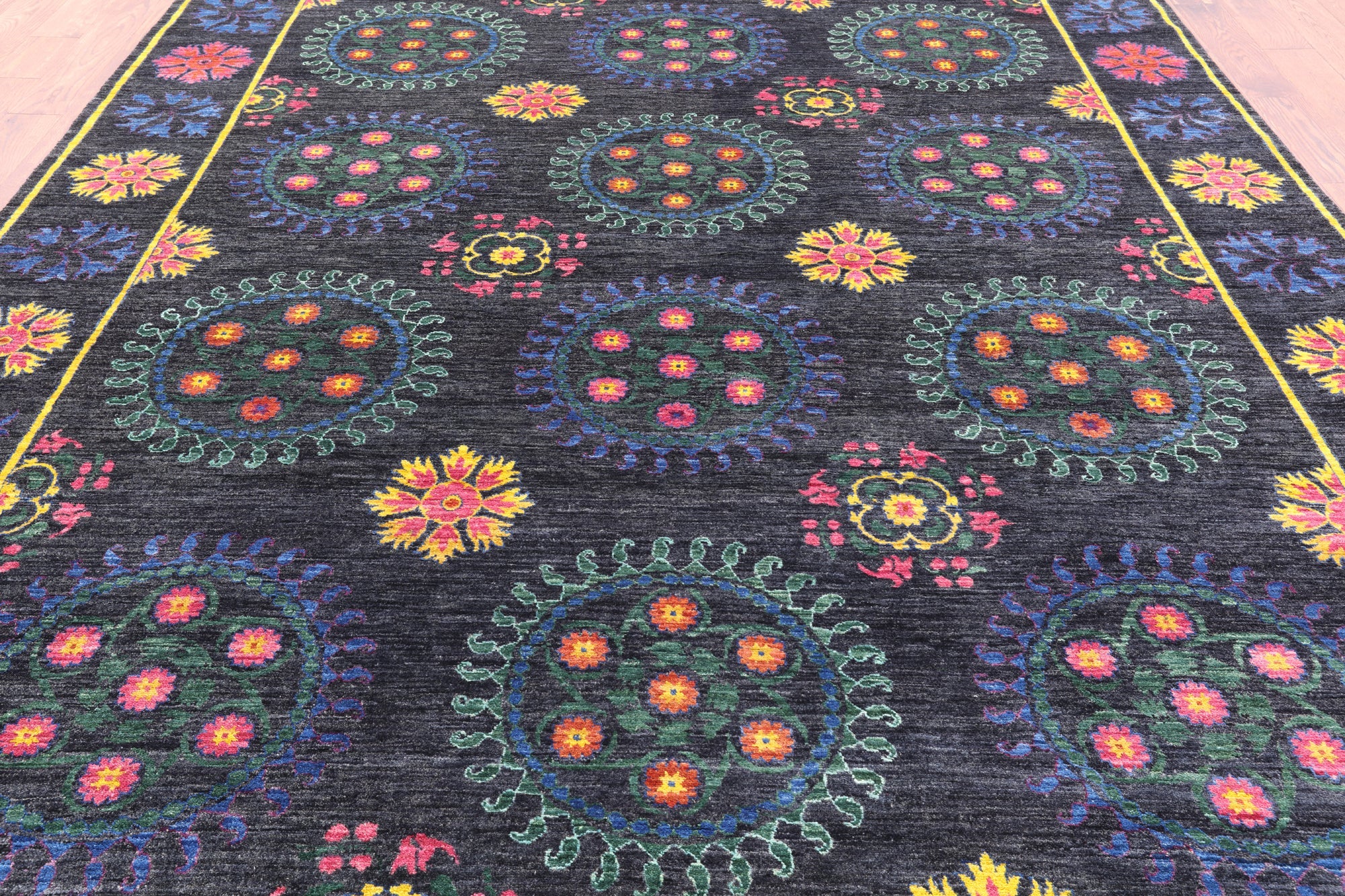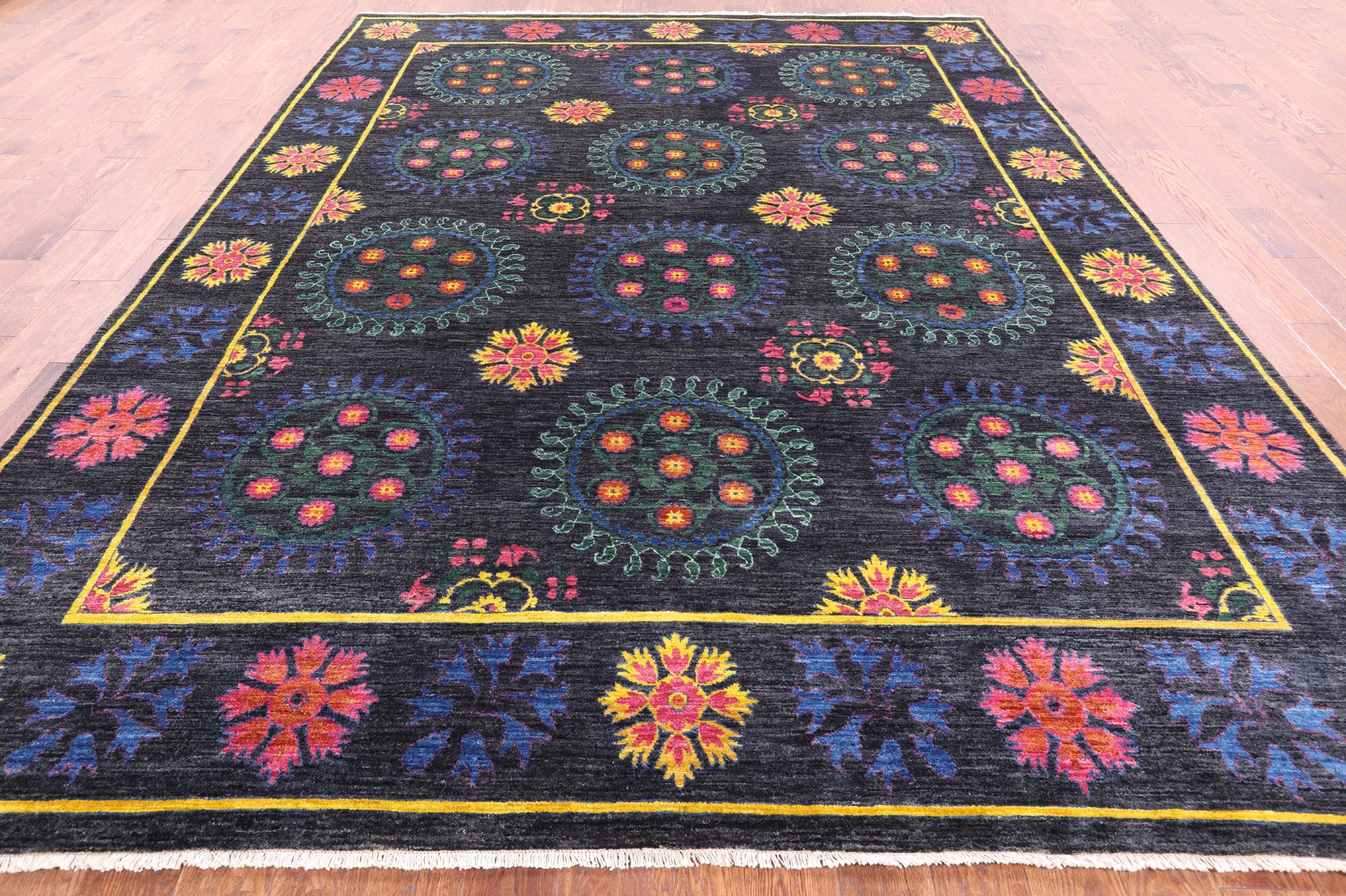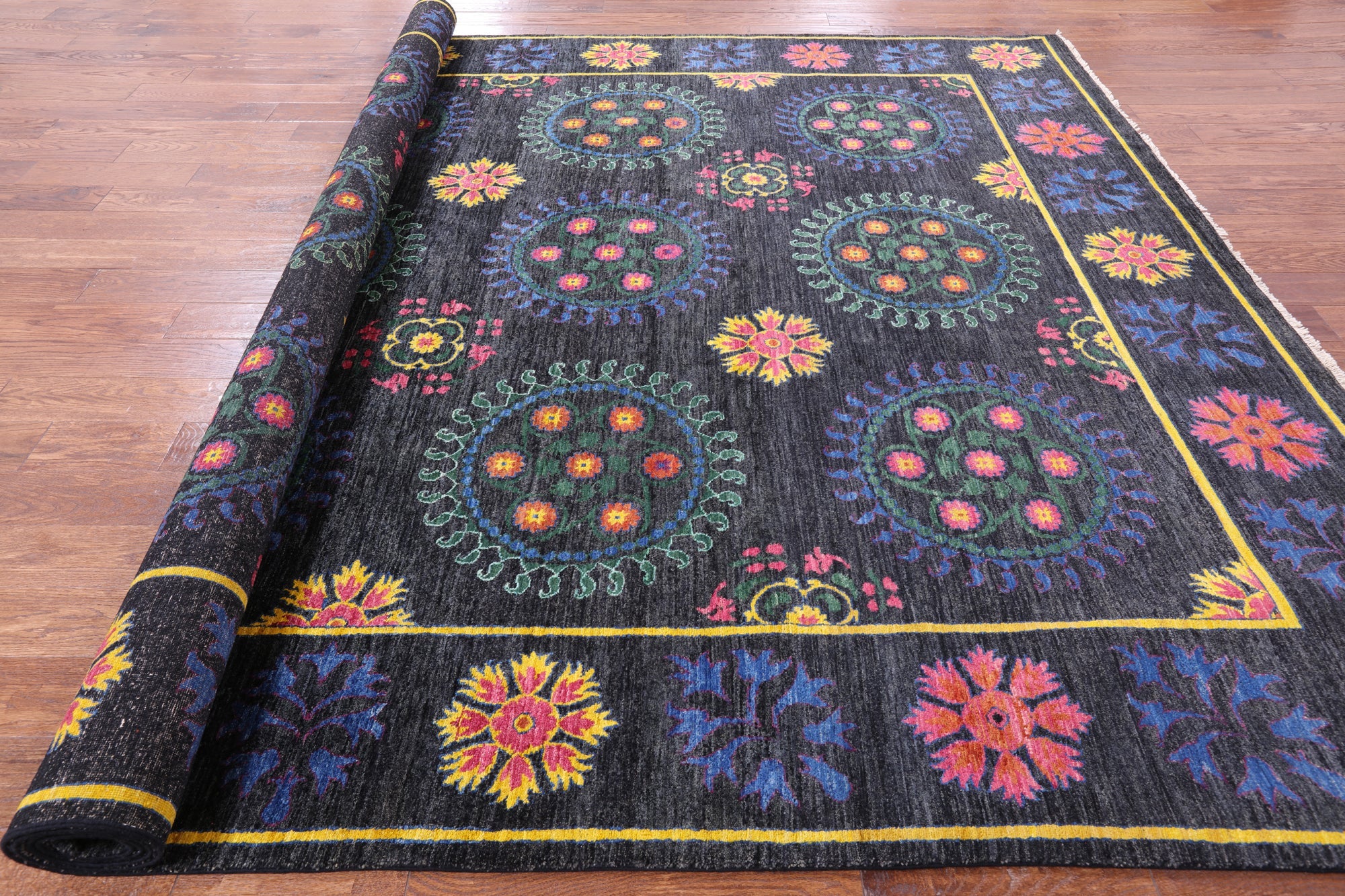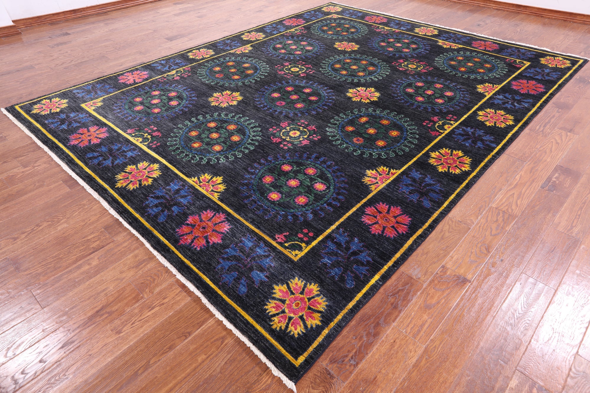 Black 9' 0" X 11' 9" William Morris Handmade Wool Rug - P6896