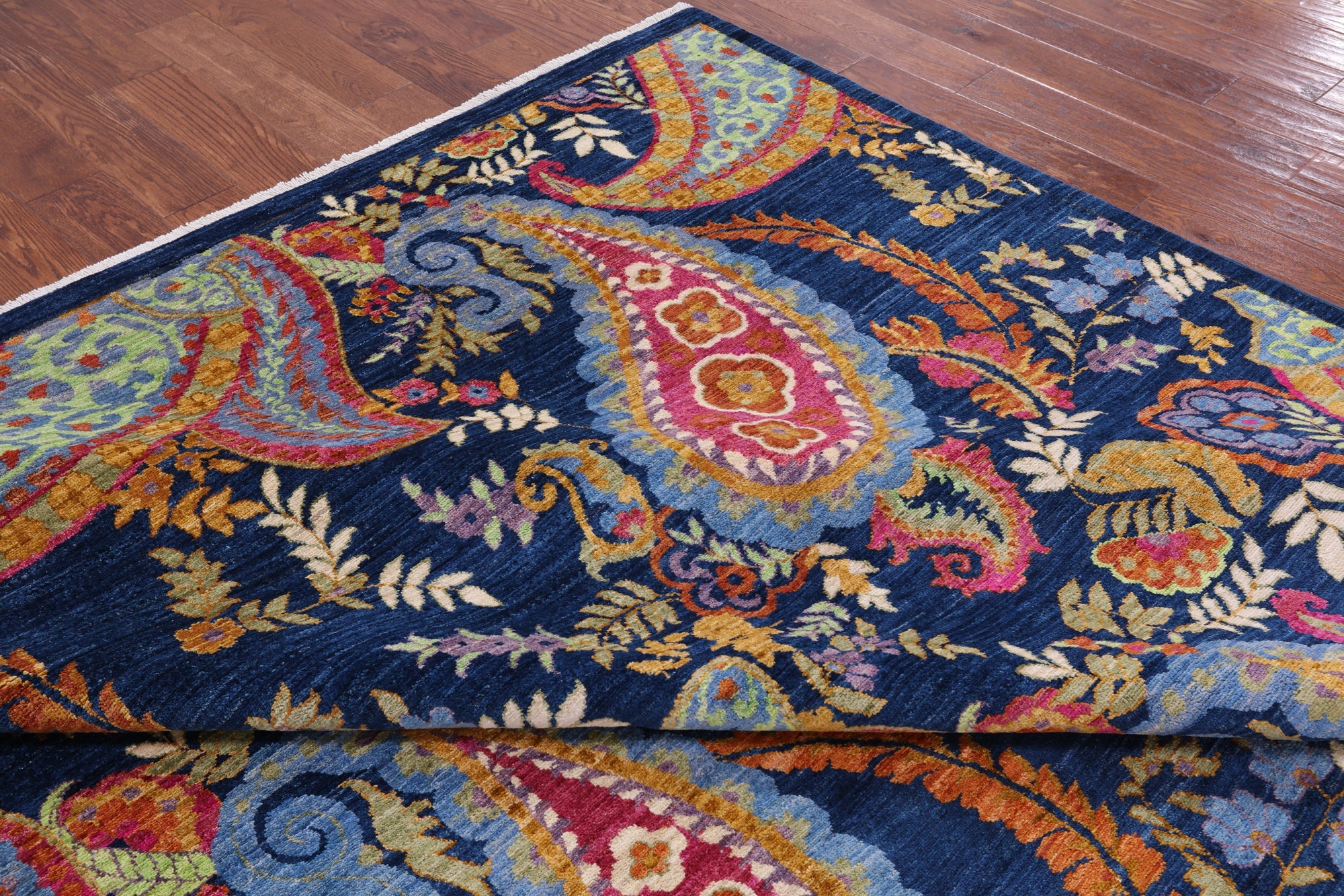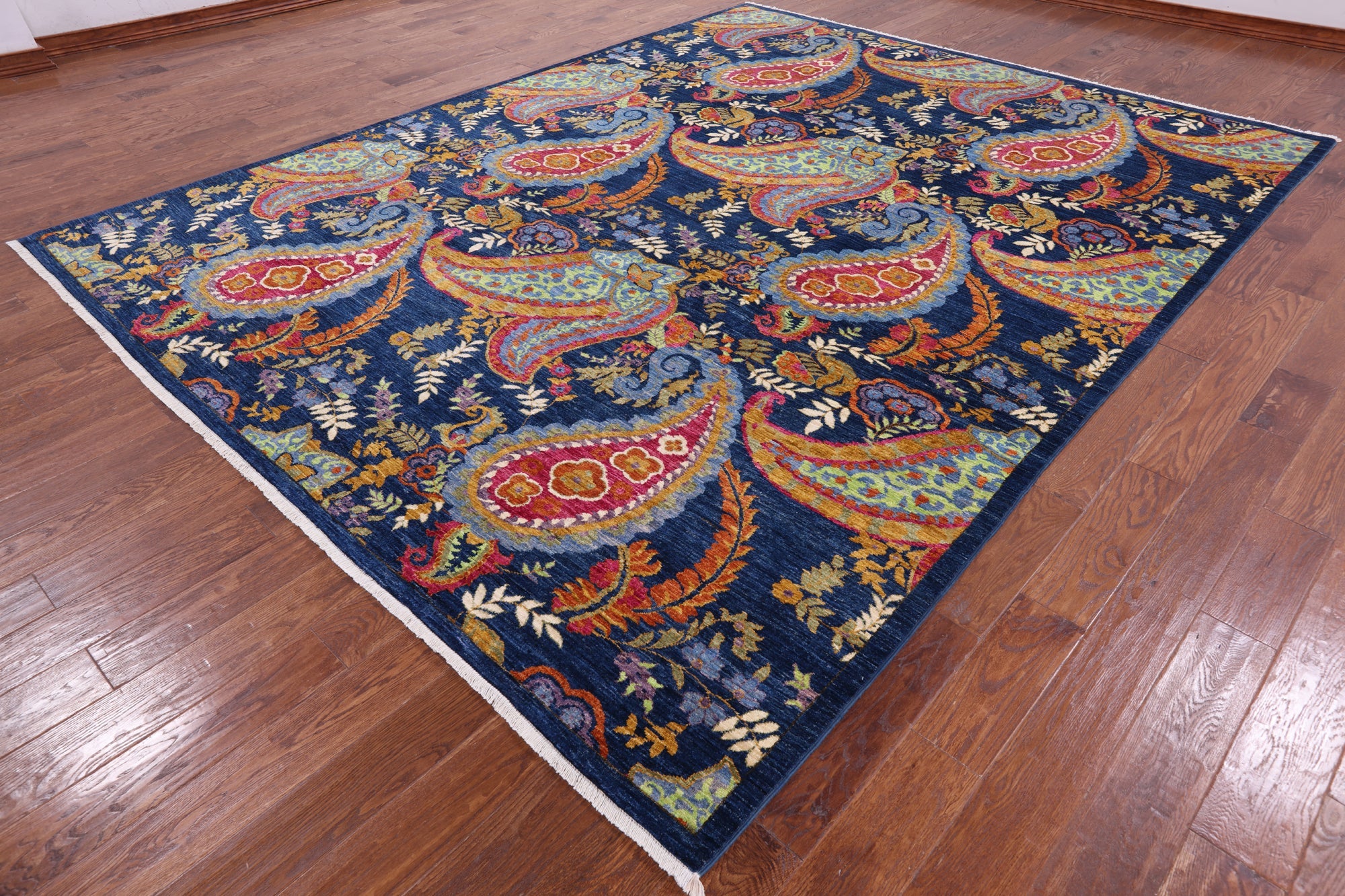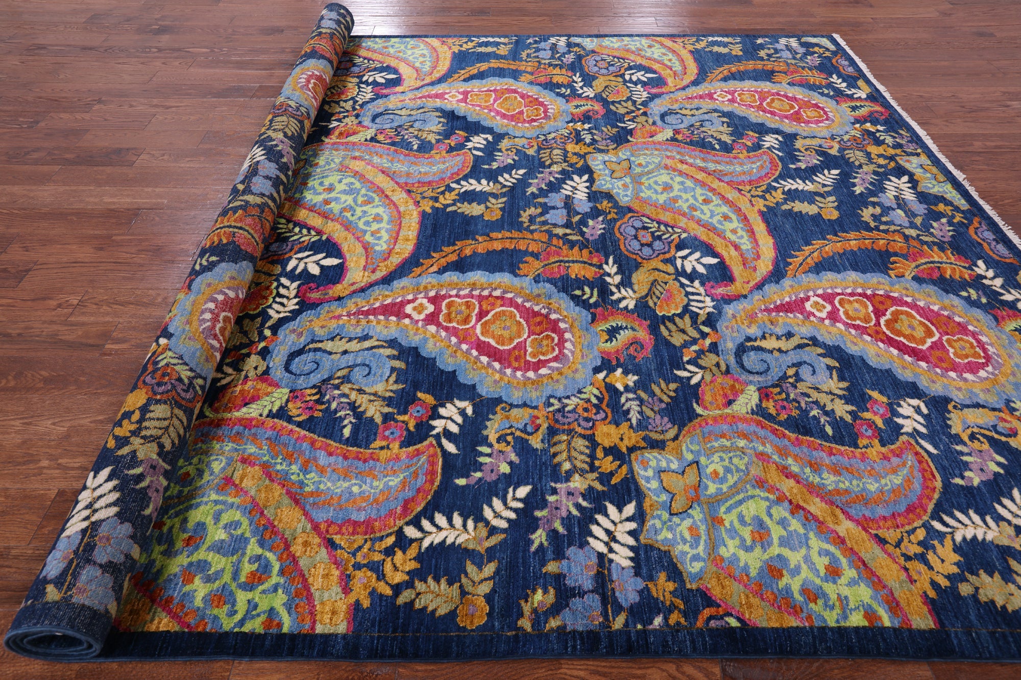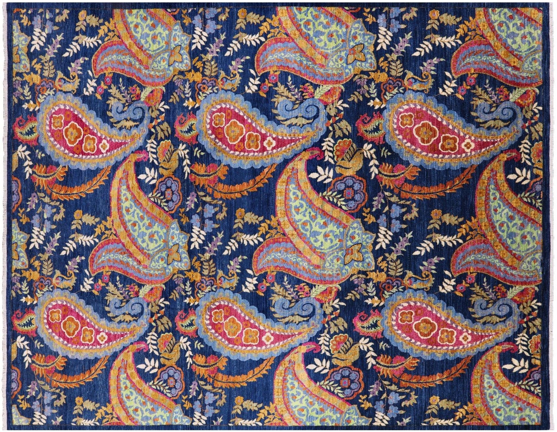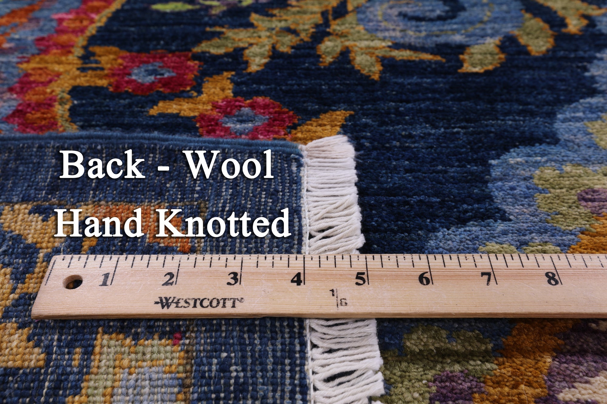Blue 9' 1" X 11' 7" Hand Knotted William Morris Rug - P6860