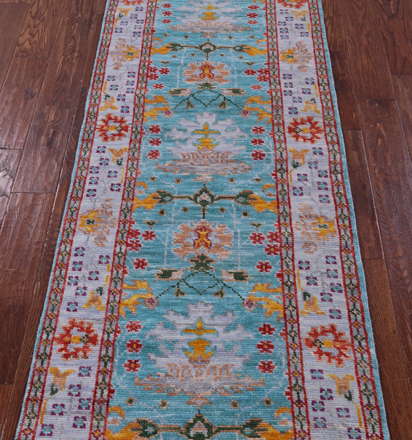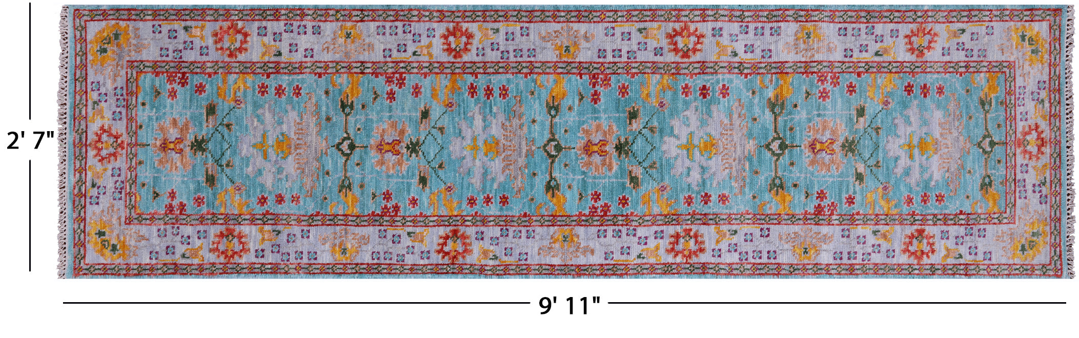 Blue Hand Knotted William Morris Wool Runner Rug 2' 7" X 9' 11" - Q20303
