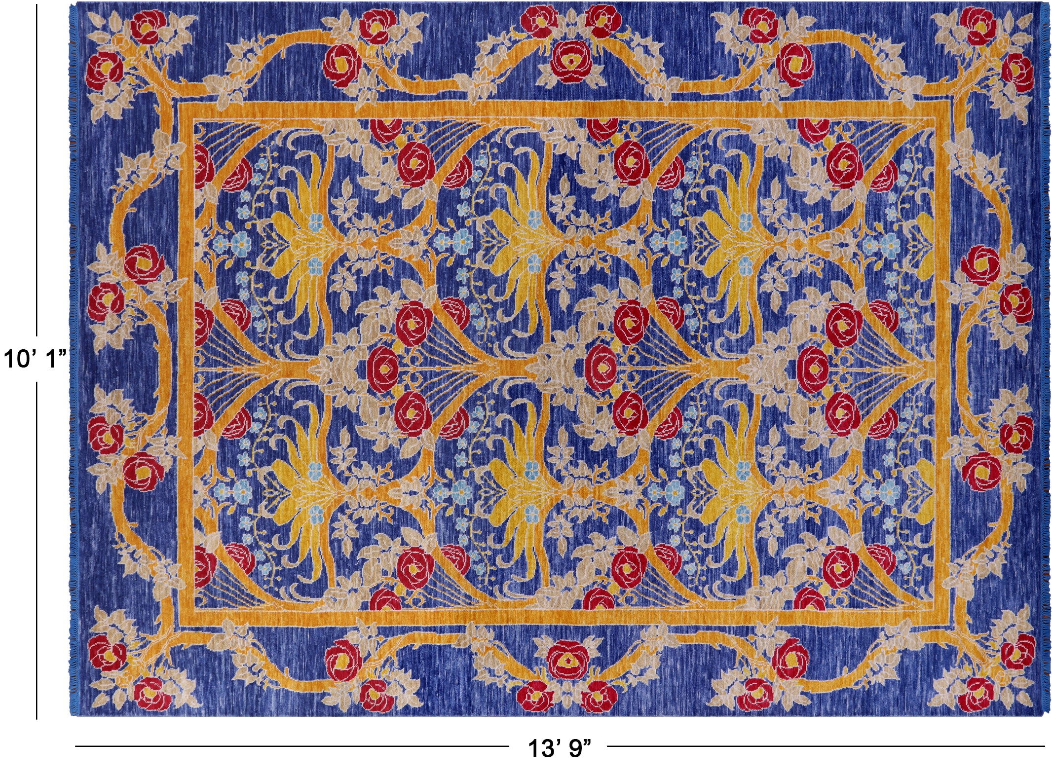 Blue Handmade William Morris Wool Rug 10' 1" X 13' 9" - Q19940 is backordered and will ship as soon as it is back in stock.