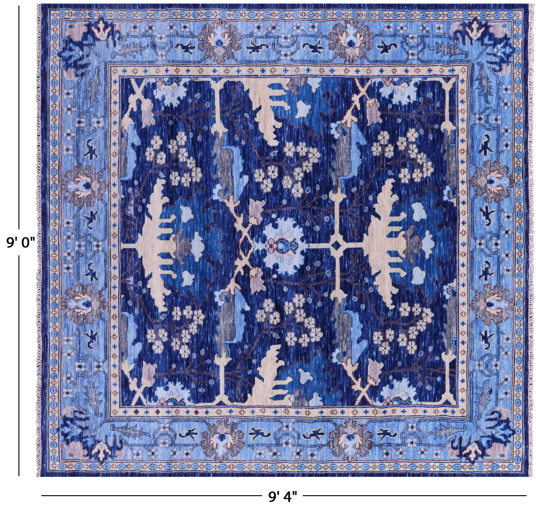 Blue 9' Square Hand Knotted William Morris Rug - Q20199