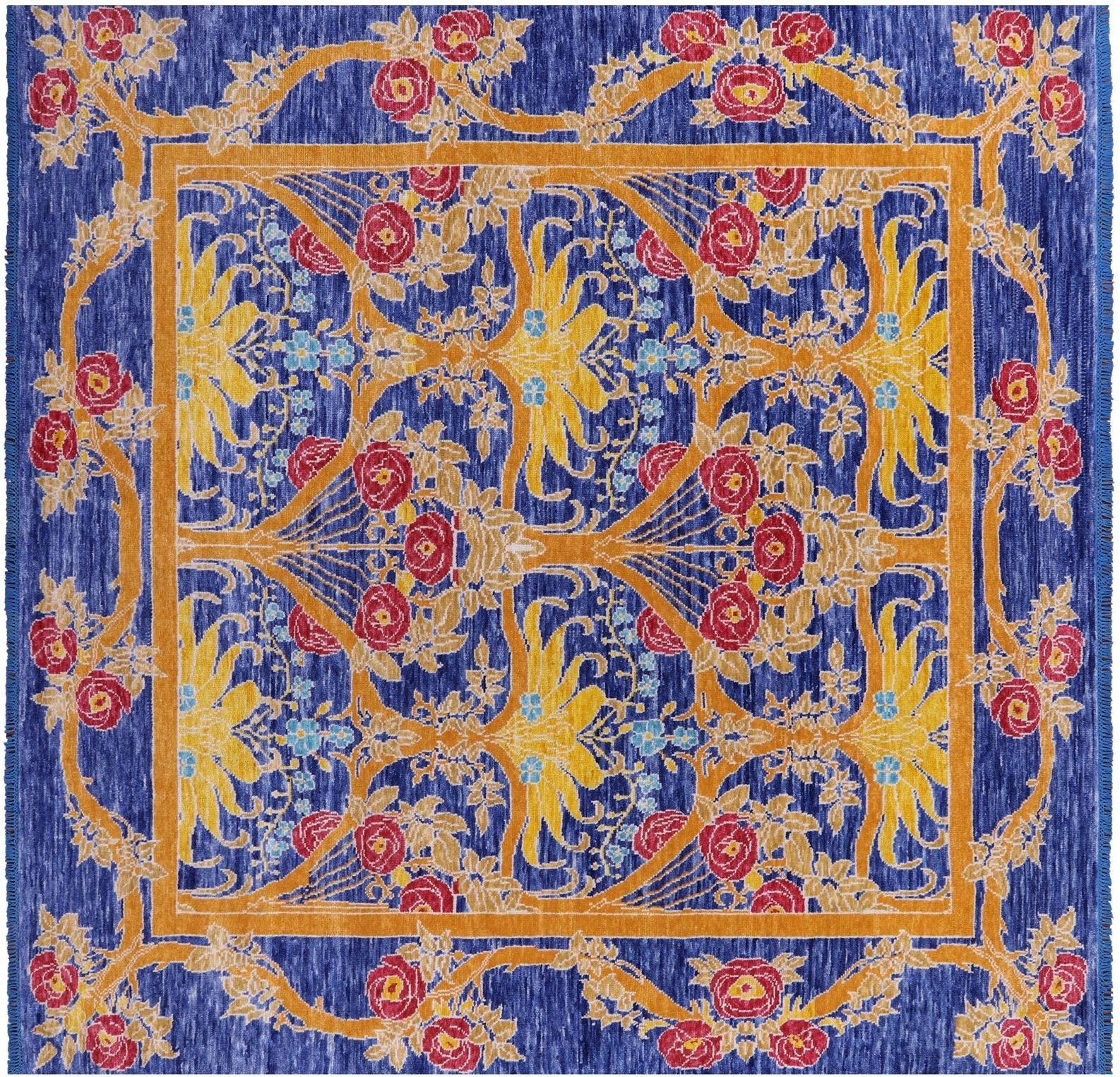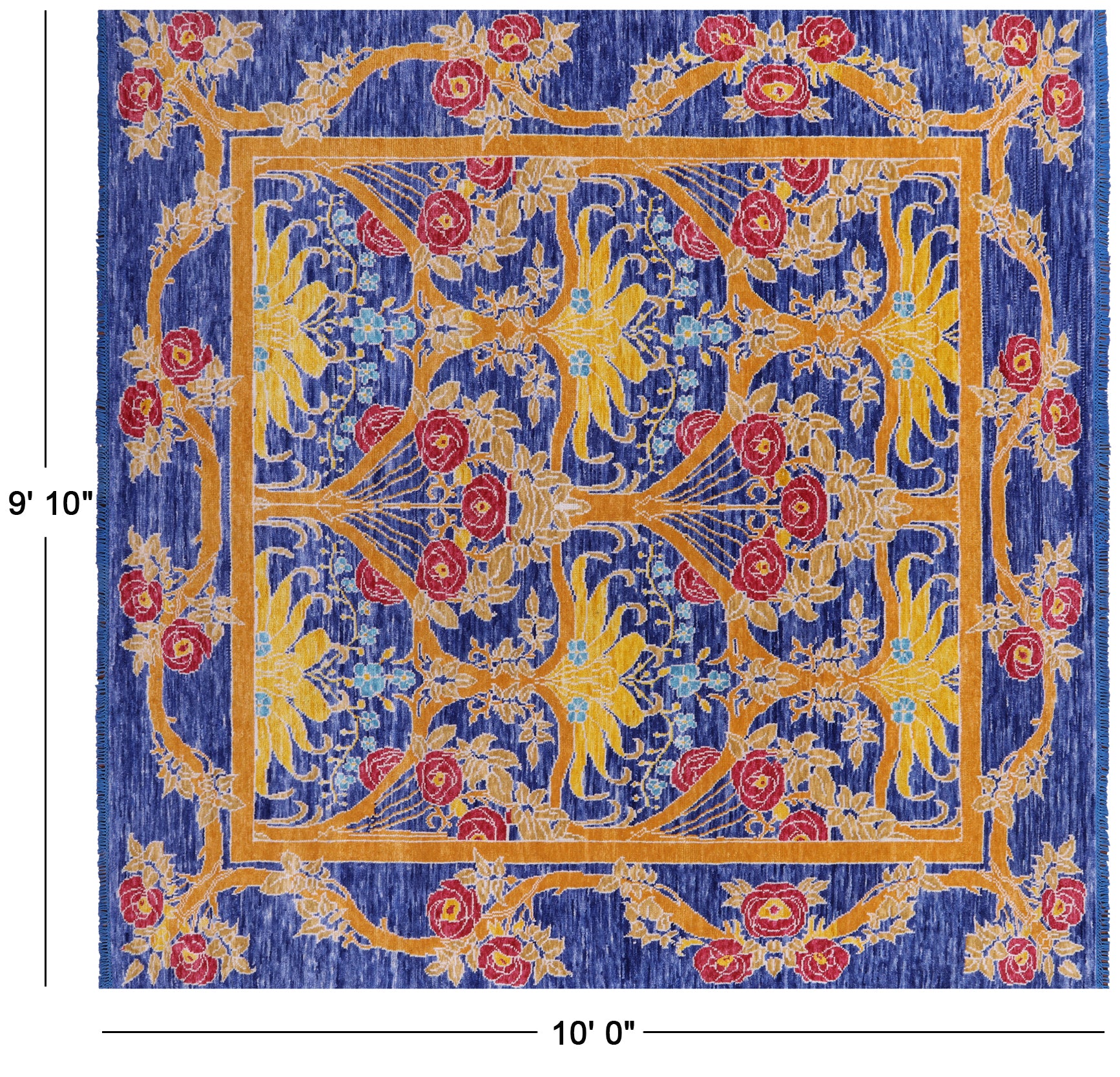 Blue 10' Square William Morris Hand-Knotted Wool Rug - Q14969