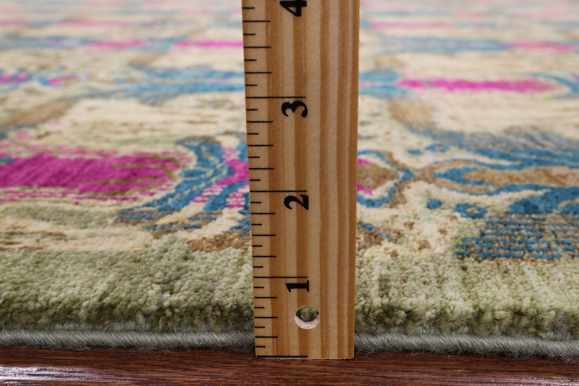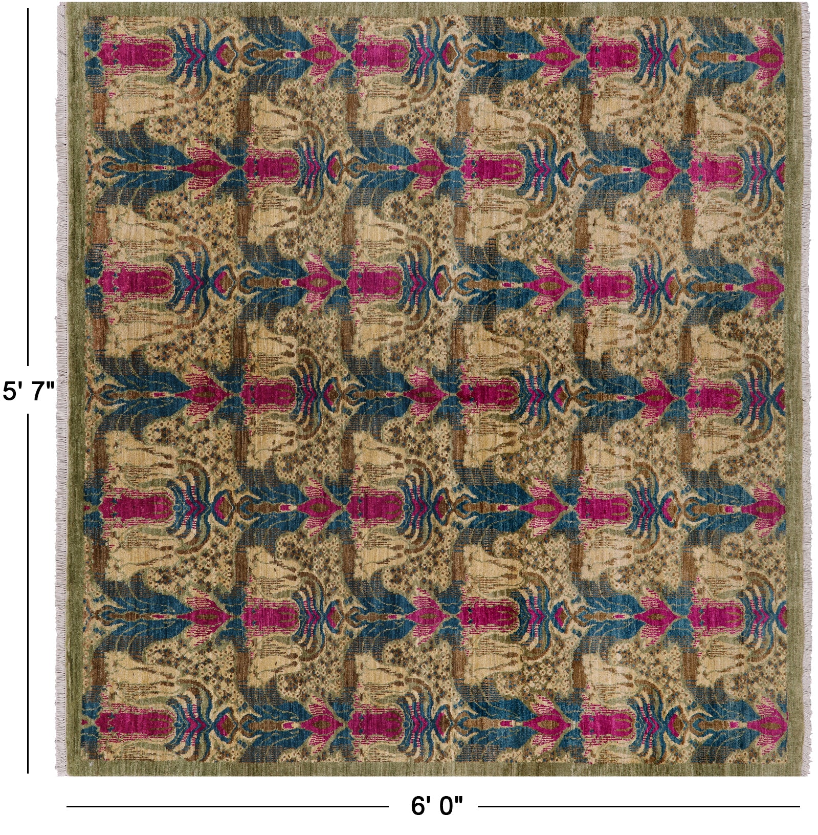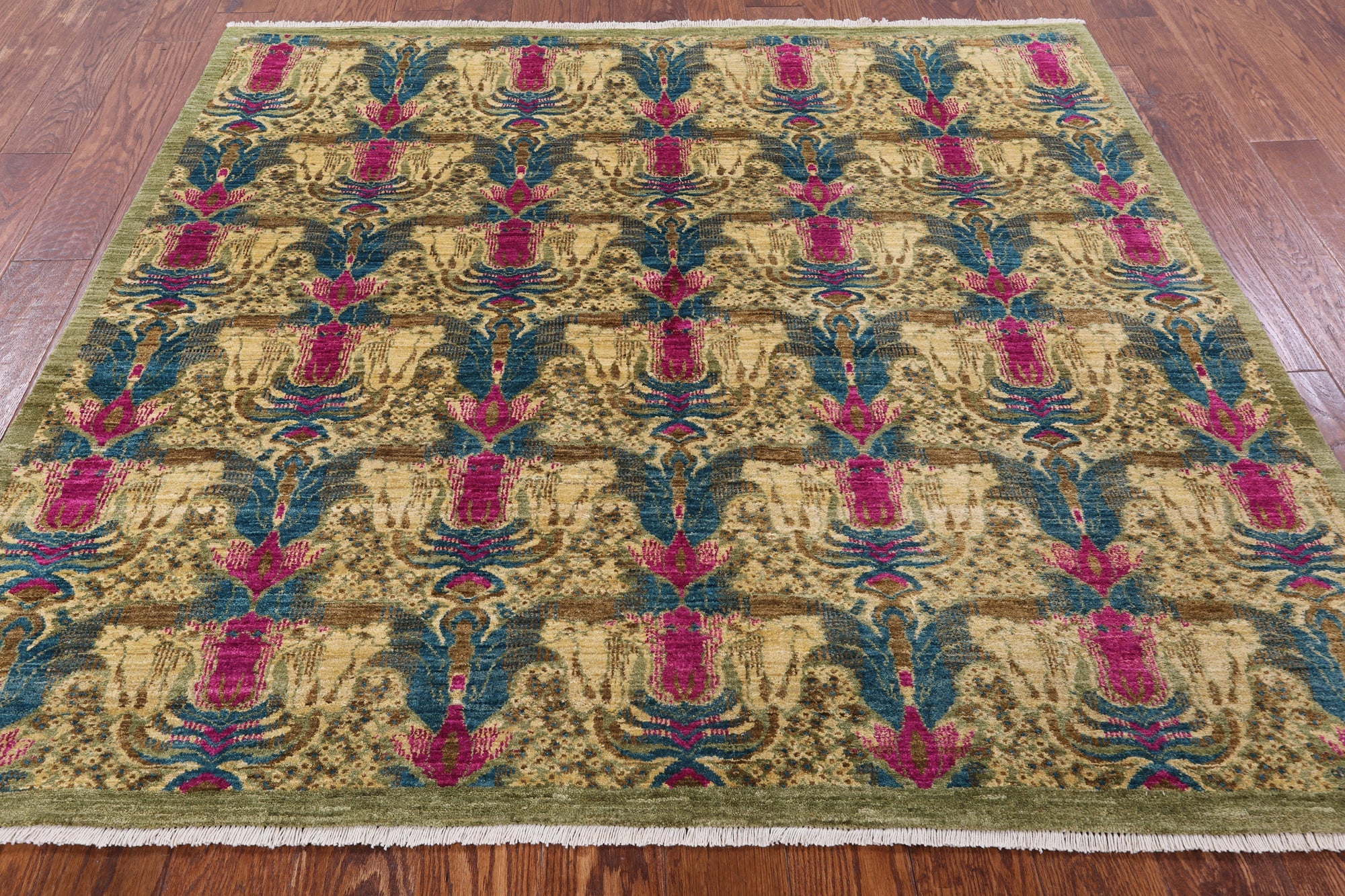 Green 6' Square Handmade William Morris Wool Rug - P7099