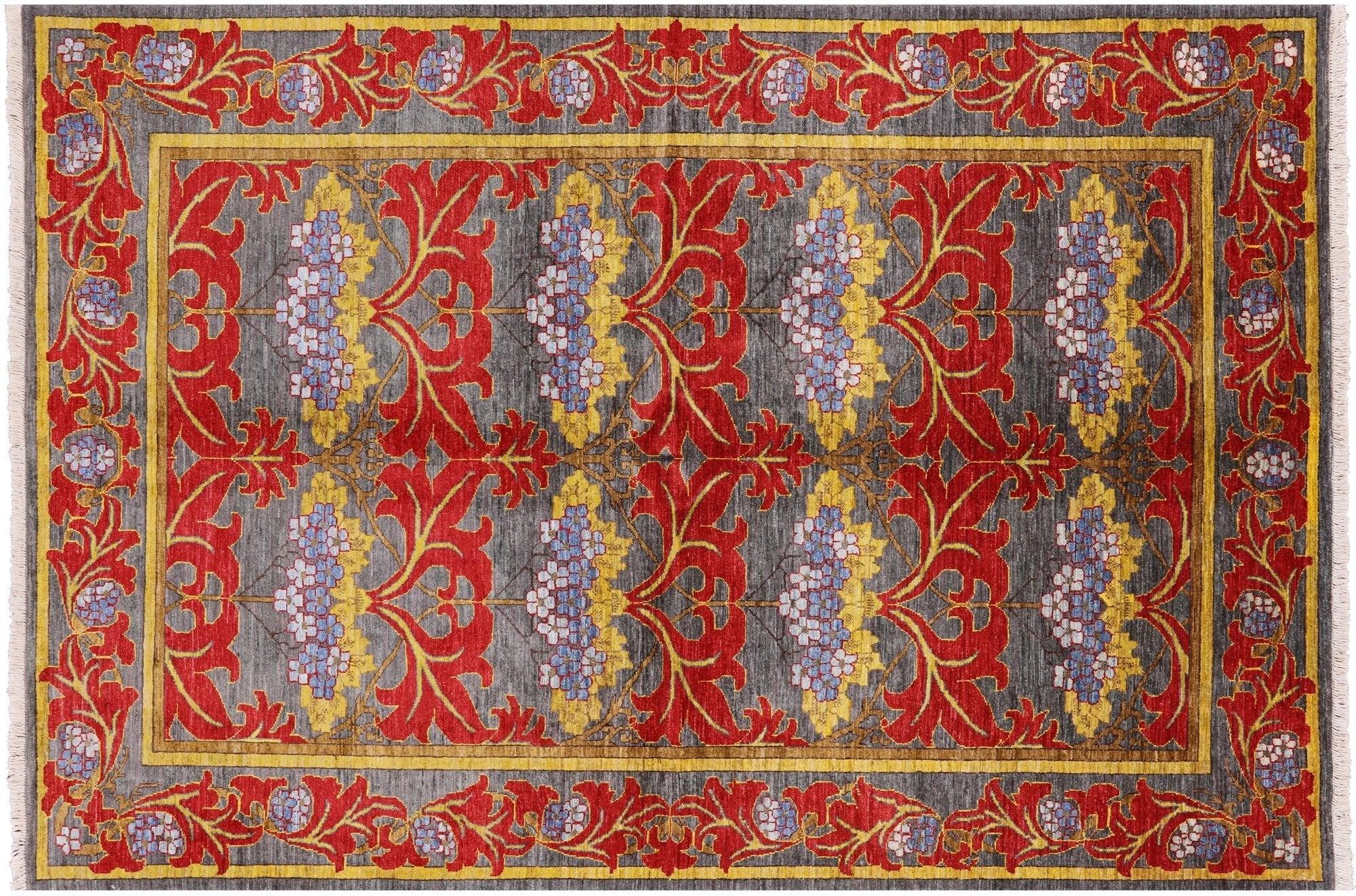 Grey 6' 0" X 8' 8" Hand-Knotted William Morris Wool Rug - P4974